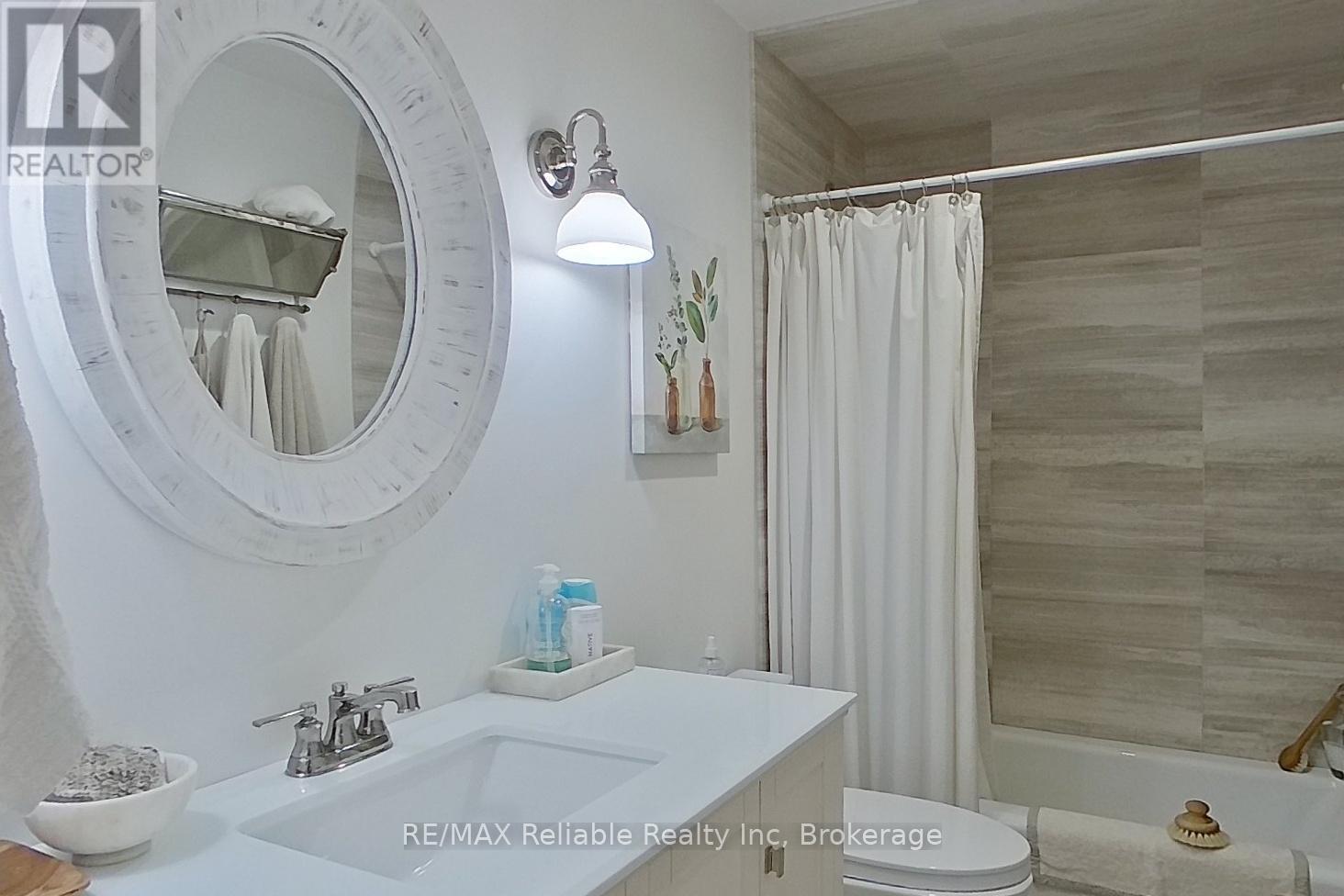 Welcome to this beautifully renovated bungalow in the charming village of Bayfield! Situated on a fully fenced, secure and private lot with a view of Lake Huron right at the end of your driveway and just a 3 minute walk away! This home offers the perfect blend of modern comfort and coastal cottage charm. Step inside to an inviting open concept foyer, living room, dining room and kitchen, all filled with natural light from the expansive picture window and newer French doors. A striking white pine shiplap feature wall anchors the space, while the cozy gas fireplace is elevated by elegant tiles that were imported from Italy. The kitchen is comes complete with granite countertops and an oversized windowsill that is ideal for growing succulents and herbs. Walk out on to the large deck, perfect for outdoor dining, entertaining or simply relaxing in your very private yard. The 4 pc bathroom features marble tile and a low cast-iron tub. The primary bedroom offers a stylish shiplap accent wall and a spacious closet. The second bedroom also features a shiplap wall and could be used as an office or hobby room. There are updates throughout, including windows, plumbing and electrical, making this property turnkey and ready for its next owner. Whether you're seeking a full-time home or a cottage getaway, this Bayfield property must be seen to be appreciated! (id:64974)