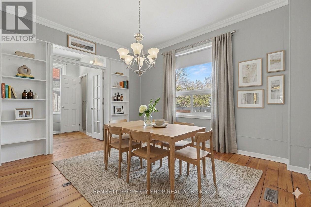 Spacious early-1900s 1 1/2-storey character home offering over 2,000 sq ft above grade on a rare 52 x 157 ft deep lot in a well-established pocket of Carleton Place. With 4 bedrooms and generously sized principal rooms, this home provides the space and layout many buyers are searching for in a mature neighbourhood close to downtown amenities. The home welcomes you through a beautiful main entrance featuring the original wood banister, while the living and dining rooms showcase original hardwood flooring that adds warmth and timeless appeal. High ceilings throughout the main level enhance the sense of space and natural light. Thoughtful period design includes both a classic front staircase and a secondary rear staircase with access to the primary bedroom, a functional and increasingly rare feature. Formal living and dining areas provide excellent flexibility for family living, entertaining, or work-from-home needs. Major system improvements completed in 2013 include roof, full electrical rewire with 100-amp service, updated plumbing, insulation improvements, kitchen cabinetry and counters, and bathroom updates, providing important peace of mind for future owners. Interior doors have been recently updated. Offering comfortable move-in living today with the opportunity for future personalization, the home combines solid underlying fundamentals with exceptional space and character. Ideally located close to schools, Riverside Park, the Mississippi River beach, canoe club, shopping, and restaurants. A great option for families or buyers seeking space, charm, and a mature setting in the heart of Carleton Place. 24 hours irrevocable on all offers. Some photos are digitally enhanced. (id:64974)