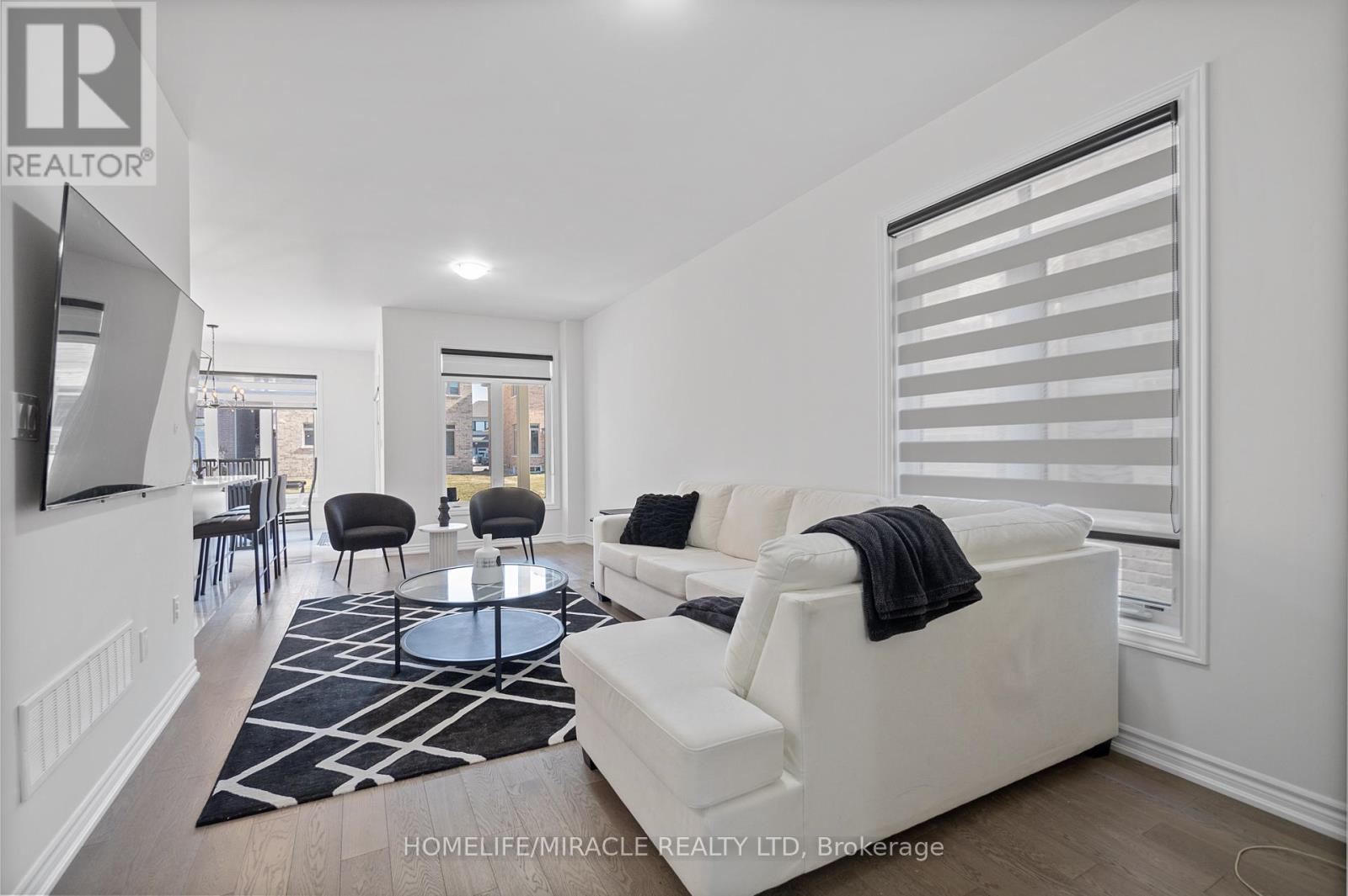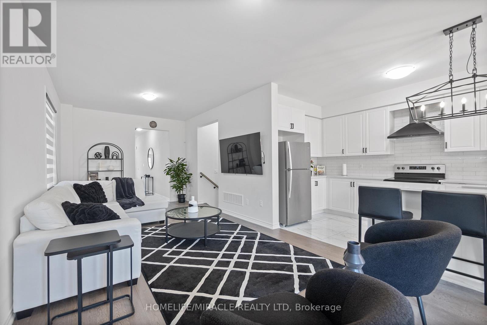 Welcome to this beautifully crafted semi-detached home nestled in a warm, family-friendly neighborhood. Offering nearly 1,800 square feet of thoughtfully designed living space with hardwood flooring throughout, this home features 3 spacious bedrooms and 3 stylish bathrooms. The exterior boasts an upgraded driveway with no sidewalk, allowing parking for 4 cars, and includes a newly installed EV charger. A grand double-door entry leads into a bright, open-concept living and dining area with smooth 9-foot ceilings on the main floor. The modern, oversized kitchen is perfect for entertaining, featuring a flush breakfast bar, sleek stainless steel appliances, a new quartz countertop, and a stylish tile backsplash. The expansive breakfast area opens onto a lovely patio and a generously sized backyard equipped with a gas line for BBQs. Upstairs, the luxurious primary bedroom offers a large walk-in closet and an upgraded 5-piece ensuite with his-and-hers sinks, a standalone tub, and a glass-enclosed shower. Two additional bedrooms share a beautifully finished bathroom with quartz countertops. For added convenience, the second floor includes a laundry room with built-in cabinetry, a laundry sink, and a quartz countertop. Ideally located close to schools, grocery stores, public transit, a community center, Bradford GO Station, and Highway 400, this home offers the perfect blend of comfort, style, and convenience. (id:64974)
