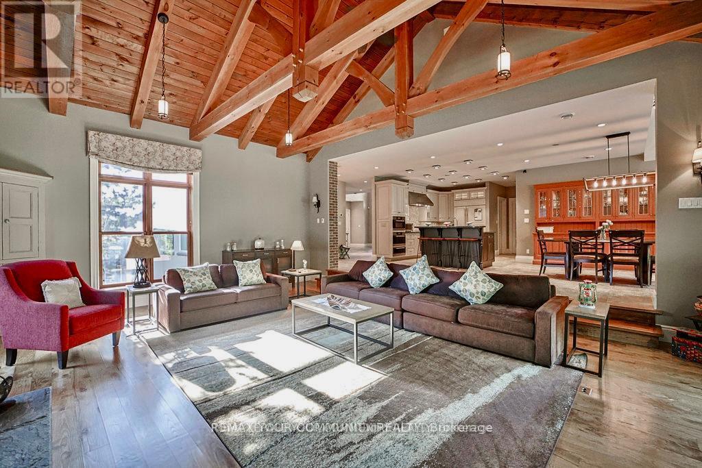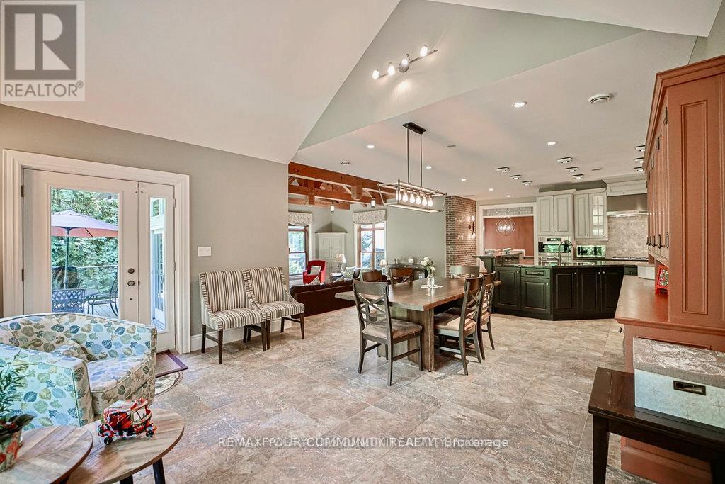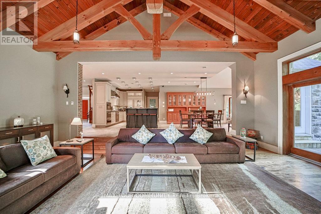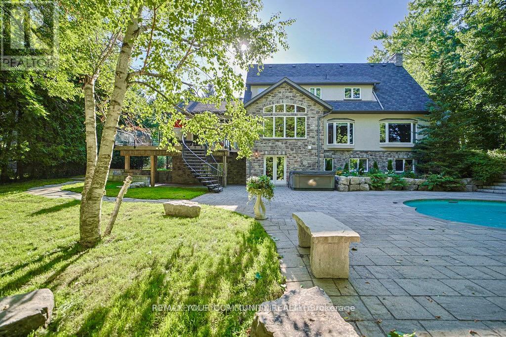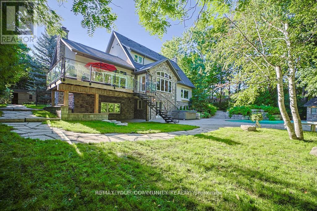 EXPERIENCE THE CHARM OF MUSKOKA LIVING RIGHT IN THE HEART OF MARKHAM. THIS BEAUTIFULLY CRAFTED HOME BLENDS RUSTIC ELEGANCE WITH MODERN COMFORT ,FEATURING NATURAL WOOD FINISHES ,EXPOSEDBEAMS , VAULTED CEILING ,AND LARGE WINDOWS THAT FLOOD THE SPACE WITH NATURAL LIGHT.THE SERENESETTING OFFERS A PRIVATE COTTAGE/RESORT-LIKE AMBIANCE WHILE BEING MINUTES FROM SHOPPING, TRANSIT IN OLD MARKHAM VILLAGE.WHETHER YOUR'E RELAXING BY THE FIRE PLACE OR ENTERTAINING ON THEEXPANSIVE DECK SURROUNDED BY MATURE,THIS UNIQUE RETREAT IS PERFECT FOR FAMILIES TO ENJOY THEBEAUTY AND TRANQUILITY OF NATURAL LIVING,A RARE OPPORTUNITY TO OWN A TIMELESS PIECE OF MUSKOKARIGHT HERE IN MARKHAM. FENG SHUI CERTIFIED BY MASTER PAUL NG-HOME ON HIGH-LIFE CYCLE FOR WEALTH. OVER 7000 SQUARE FEET OF FINISHED LIVING SPACE. OVER SIZE 3-CAR GARAG (TANDEM)WITH HEIGHT TO ACCOMMODATE CAR-LIFT. 3-FLOOR OAK-PANELED ELEVATOR. IN-FLOOR RADIANT HEATING, WITH INDIVIDUAL ROOM TEMPERATURE CONTROL. HEATED OUTDOOR FRONT-PORCH AND STEPS FOR WINTER ICE-MELT. INTERIOR WALL FULLY INSULATED FOR NOISE REDUCTION. TOP QUALITY ENGINEERED HARDWOOD, TRIM AND CASING ECO-FRIENDLY CONSTRUCTION WITH REDUCED ALLERGENS. CUSTOM INGROUND POOL WITH WATER FALL5 BEDROOM, 5 BATHROOM, RECREATION ROOMS, GYM, SAUNA OPEN CONCEPT KITCHEN AND FAMILY ROOM. CUSTOM OPEN -TREAD HARDWOOD STAIRS AND RAILLING. COFFERED CEILING IN DINING ROOM. VAULTED CEILING WITH EXPOSED SUSPENDED BEAMS IN MAIN FLOOR (id:64974)