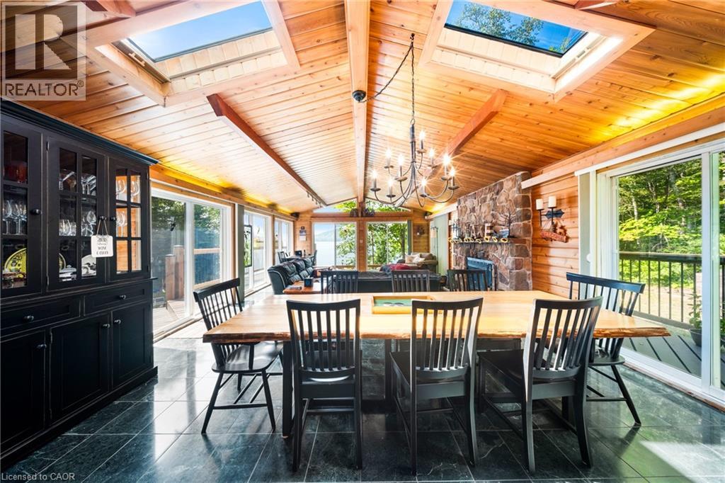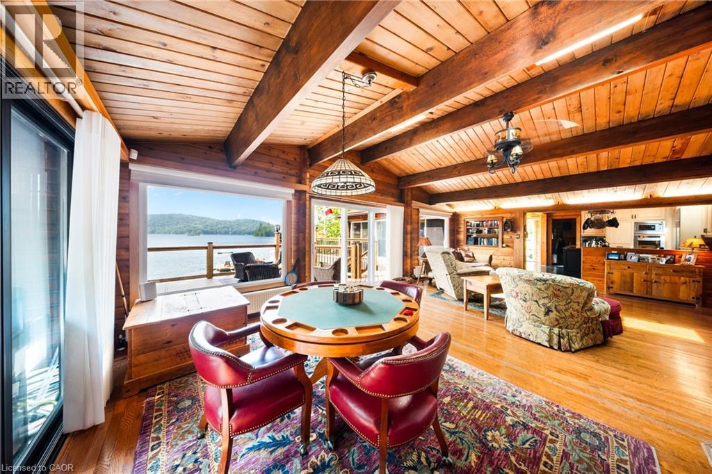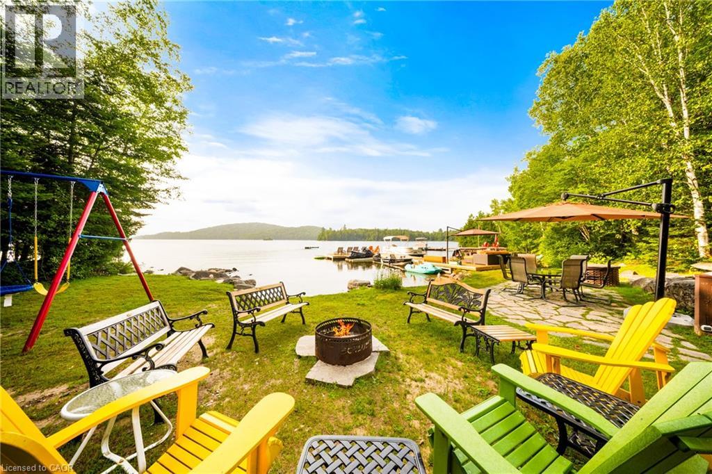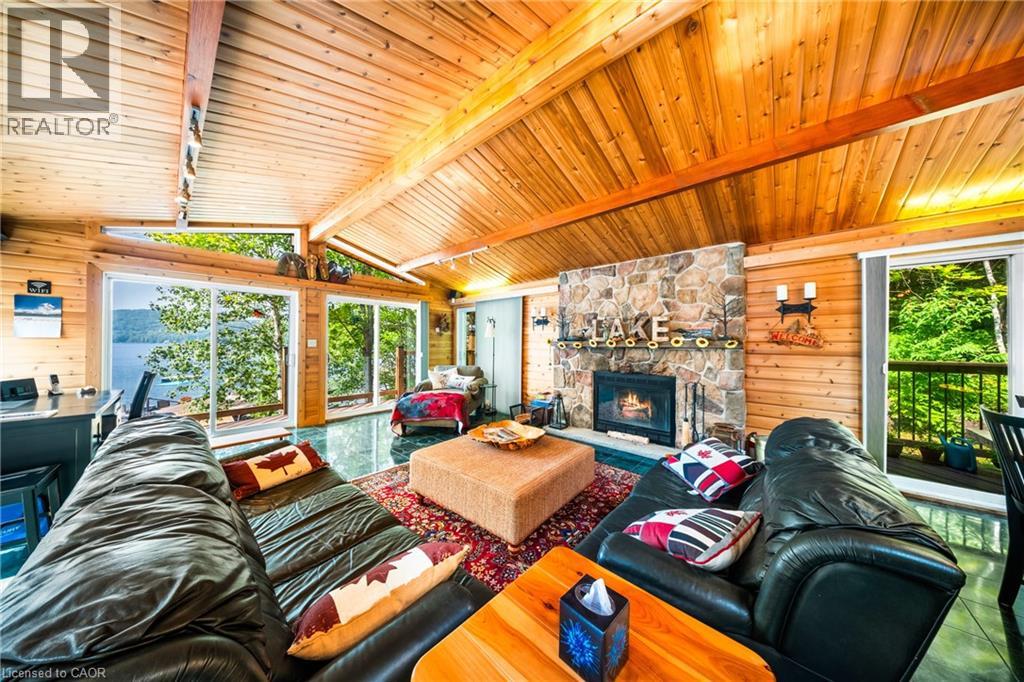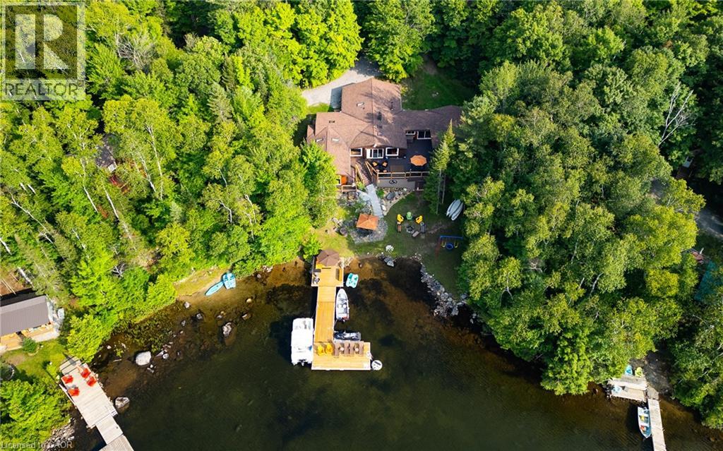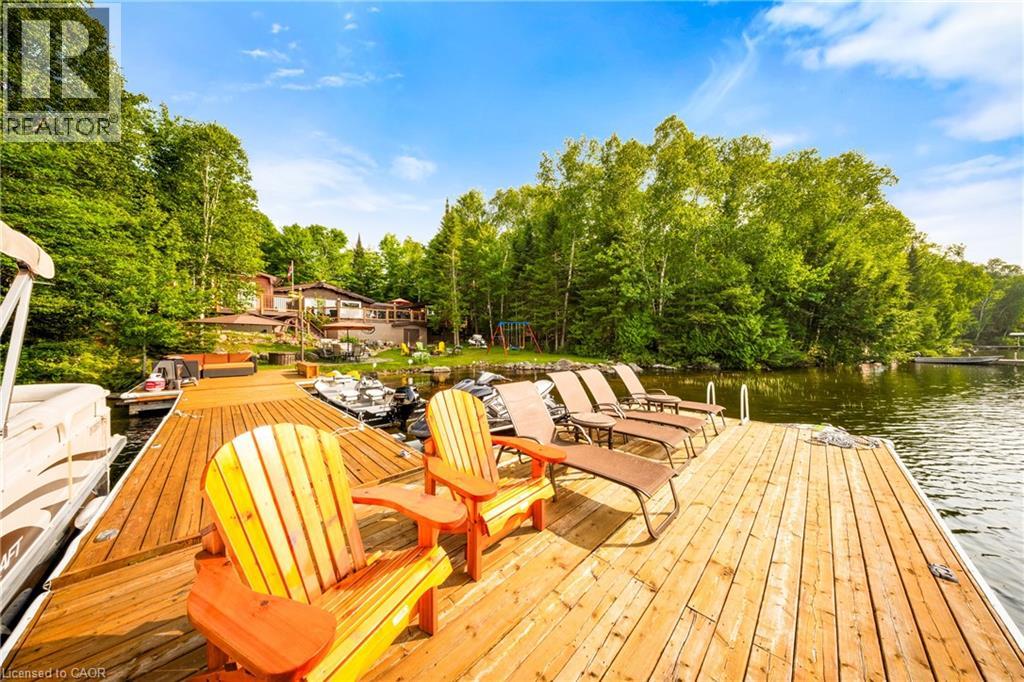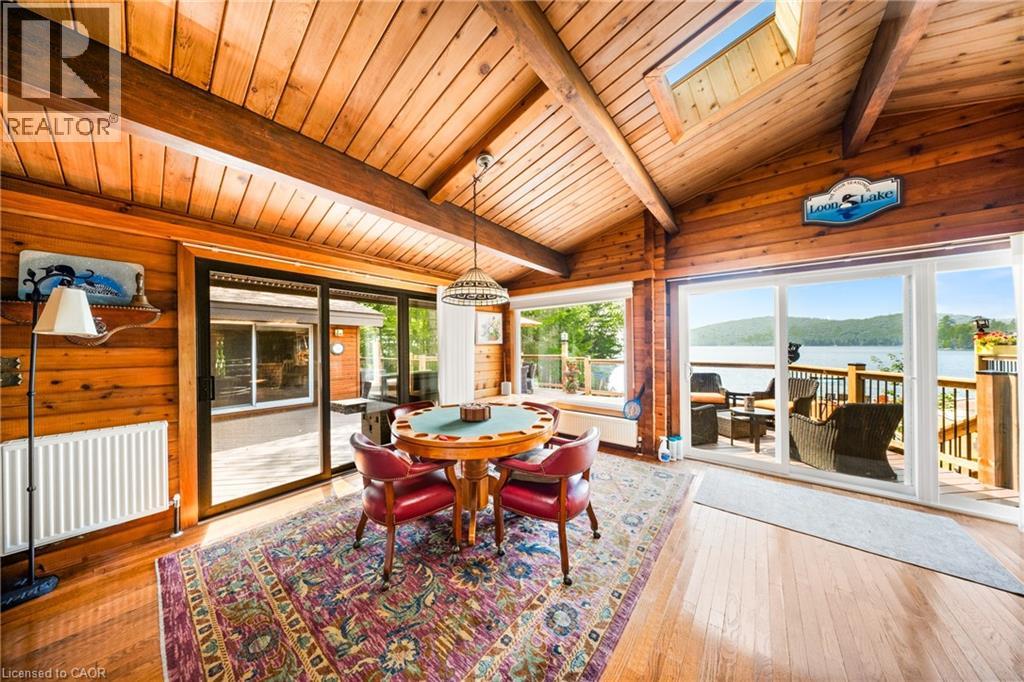 Perfectly positioned on the pristine shores of Loon Lake, this exceptional 6 bedroom 6 bathroom waterfront property offers 136 feet of sandy shoreline and direct access to both Loon and adjoining Grass Lake—spring-fed, crystal-clear waters ideal for swimming, fishing, kayaking, and boating. The thoughtfully designed interior of this year-round cottage celebrates the four seasons which is where the property gets it's name. Each of the four main bedrooms are thematically styled—Winter, Fall, Summer, and Spring. The primary “Spring” suite is a private retreat with a Jacuzzi tub, oversized walk-in shower, and oversized vanity. Summer, Fall, and Winter are all large bedrooms with generously proportioned ensuite bathrooms. From the kitchen, family room, and main living room, there are unobstructed picturesque views of the lake. On the main floor there is also a children’s bunk room with queen/single configuration and ensuite, plus a sixth bedroom on the lower level with adjacent spa-style bath offer ample accommodations. The lower level also features an electric cedar sauna, a cozy TV room which can also be accessed from the primary bedroom via a spiral staircase, and tons of storage for water toys, gear and equipment. With a sought-after northwest exposure, the cottage captures breathtaking sunsets year-round which can be enjoyed from the dock, the upper deck which features a sunk-in hot tub and spans the entire length of the home and is accessible from multiple rooms in the home, the professionally landscaped lower deck complete with stone. A gated entrance welcomes you to a beautifully maintained property featuring a three-car garage, a Generac generator (2023), and a modern three-separator septic system with dual weeping beds. The property is also situated within close proximity to tons of trails to be enjoyed in the Winter by sled or in the summer by ATV. This is more than a cottage—it’s a refined lakeside sanctuary where nature, comfort, and privacy converge. (id:64974)
