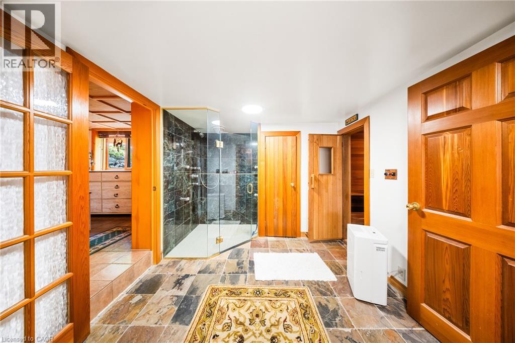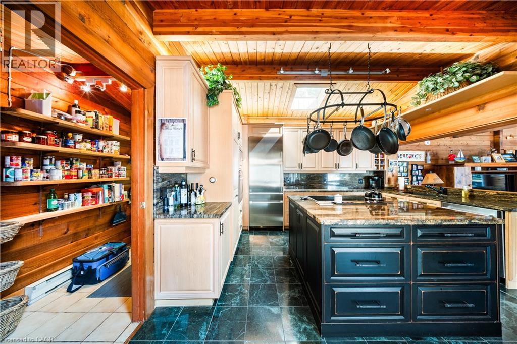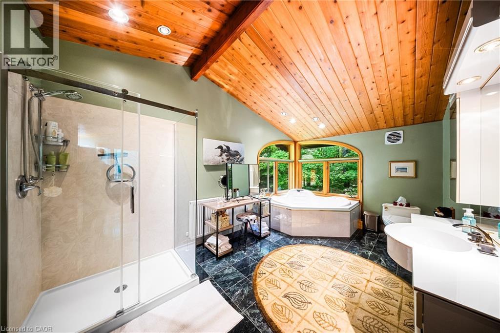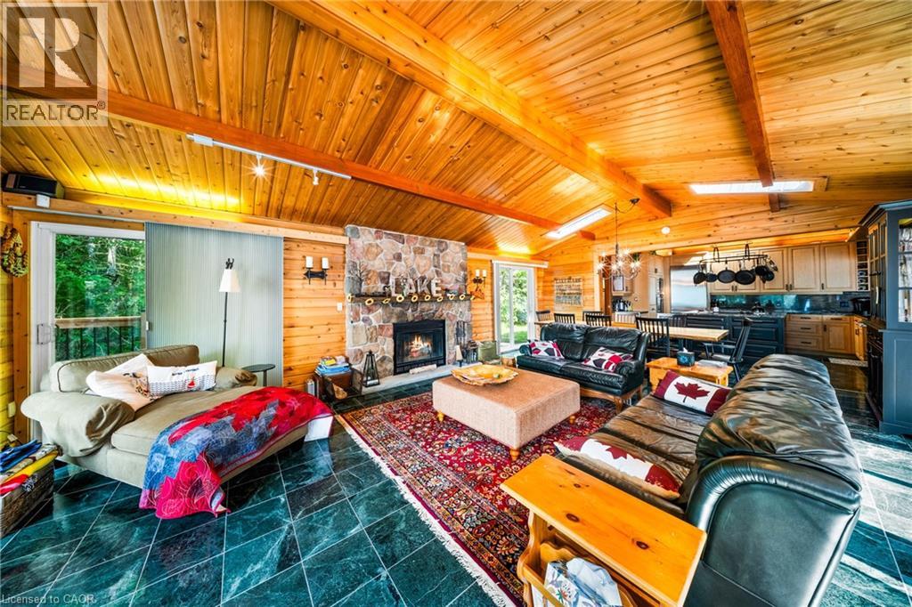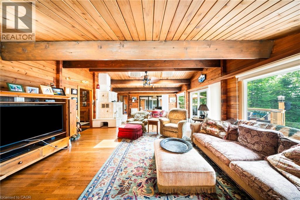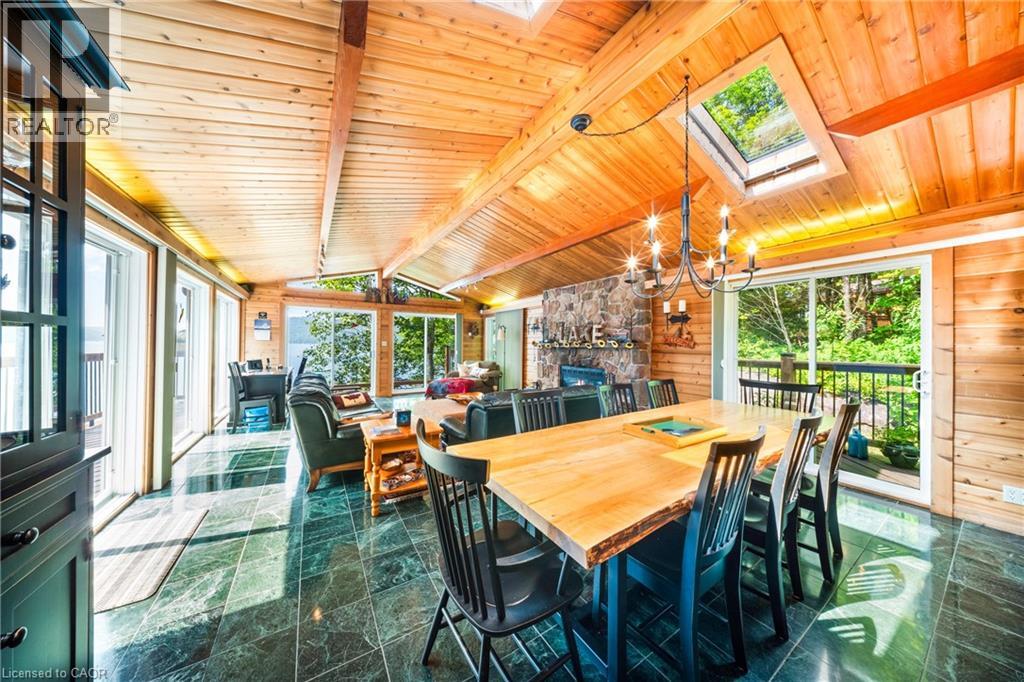 Perfectly positioned on the pristine shores of Loon Lake, this exceptional 6 bedroom 6 bathroom waterfront property offers 136 feet of sandy shoreline and direct access to both Loon and adjoining Grass Lake—spring-fed, crystal-clear waters ideal for swimming, fishing, kayaking, and boating. The thoughtfully designed interior of this year-round cottage celebrates the four seasons which is where the property gets it's name. Each of the four main bedrooms are thematically styled—Winter, Fall, Summer, and Spring. The primary “Spring” suite is a private retreat with a Jacuzzi tub, oversized walk-in shower, and oversized vanity. Summer, Fall, and Winter are all large bedrooms with generously proportioned ensuite bathrooms. From the kitchen, family room, and main living room, there are unobstructed picturesque views of the lake. On the main floor there is also a children’s bunk room with queen/single configuration and ensuite, plus a sixth bedroom on the lower level with adjacent spa-style bath offer ample accommodations. The lower level also features an electric cedar sauna, a cozy TV room which can also be accessed from the primary bedroom via a spiral staircase, and tons of storage for water toys, gear and equipment. With a sought-after northwest exposure, the cottage captures breathtaking sunsets year-round which can be enjoyed from the dock, the upper deck which features a sunk-in hot tub and spans the entire length of the home and is accessible from multiple rooms in the home, the professionally landscaped lower deck complete with stone. A gated entrance welcomes you to a beautifully maintained property featuring a three-car garage, a Generac generator (2023), and a modern three-separator septic system with dual weeping beds. The property is also situated within close proximity to tons of trails to be enjoyed in the Winter by sled or in the summer by ATV. This is more than a cottage—it’s a refined lakeside sanctuary where nature, comfort, and privacy converge. (id:64974)