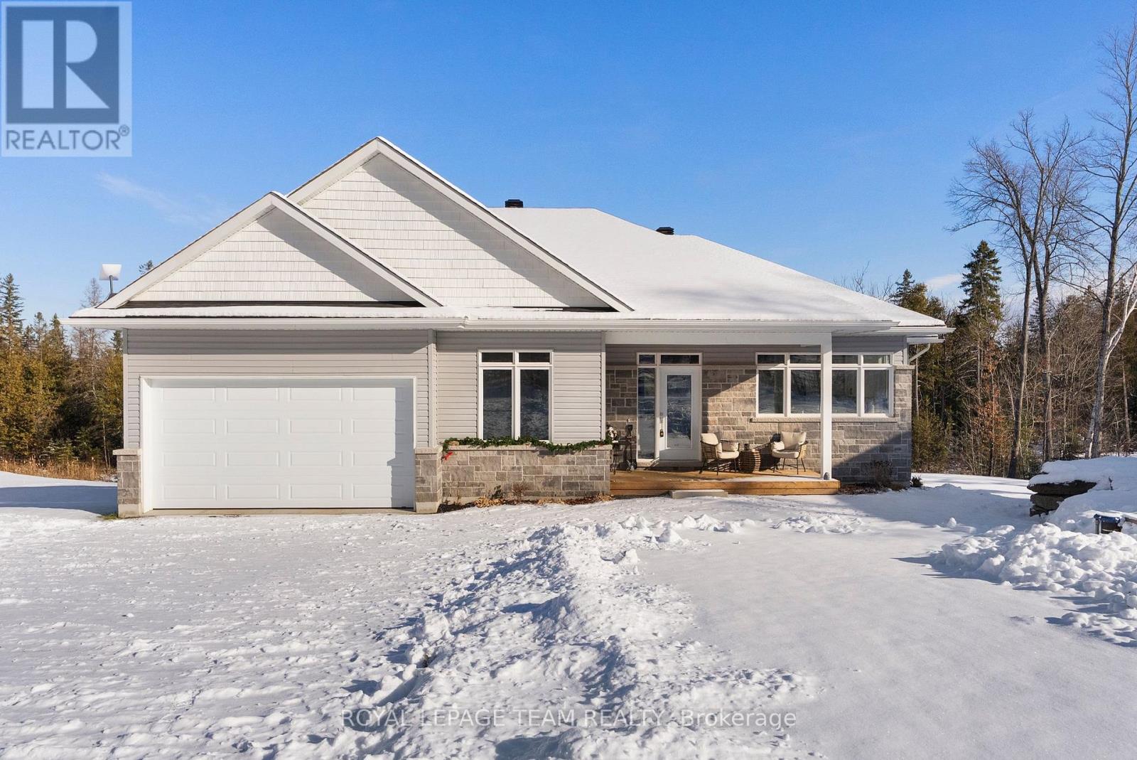 Welcome to 57 Longleaf Way in the prestigious Granite Village community, where striking architecture meets elevated Calabogie living. Built by Neilcorp Homes, this newly constructed Limestone model offers 1,508 sq ft of beautifully designed living space, set on a private and scenic lot in one of the Ottawa Valley's most sought-after destinations. This home makes an immediate statement with its stunning modern mono-slope roof design and contemporary architectural lines. Quality is evident from the start, beginning with the high-end textured fiberglass entry door with multi-point locking system and continuing throughout the home. Inside, the open-concept kitchen and great room are enhanced by sloping ceilings and dramatic tall-wall windows, flooding the space with natural light and creating an airy, upscale atmosphere perfect for both everyday living and entertaining. Refined finishes and thoughtful design details carry throughout, delivering a seamless blend of style, comfort, and function. The layout is ideal for those seeking a sophisticated retreat or a full-time residence that embraces both modern design and connection to the surrounding landscape. Located in the heart of Calabogie, you'll enjoy a true four-season lifestyle-skiing at Calabogie Peaks, boating and swimming on nearby lakes, hiking and trail networks, golf, and a vibrant village scene with charming shops, dining, and local attractions. This is a destination community known for its natural beauty, recreation, and relaxed luxury. Whether you're looking for a stylish weekend escape or a refined full-time home, 57 Longleaf Way offers a rare opportunity to own a distinctive, architecturally inspired residence in one of the region's most desirable recreational communities. *** Bonus $7500.00 appliance credit will be rebated to buyer upon closing (id:64974)
