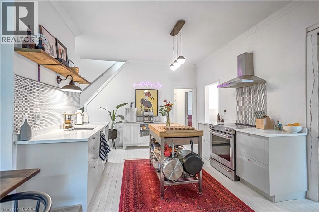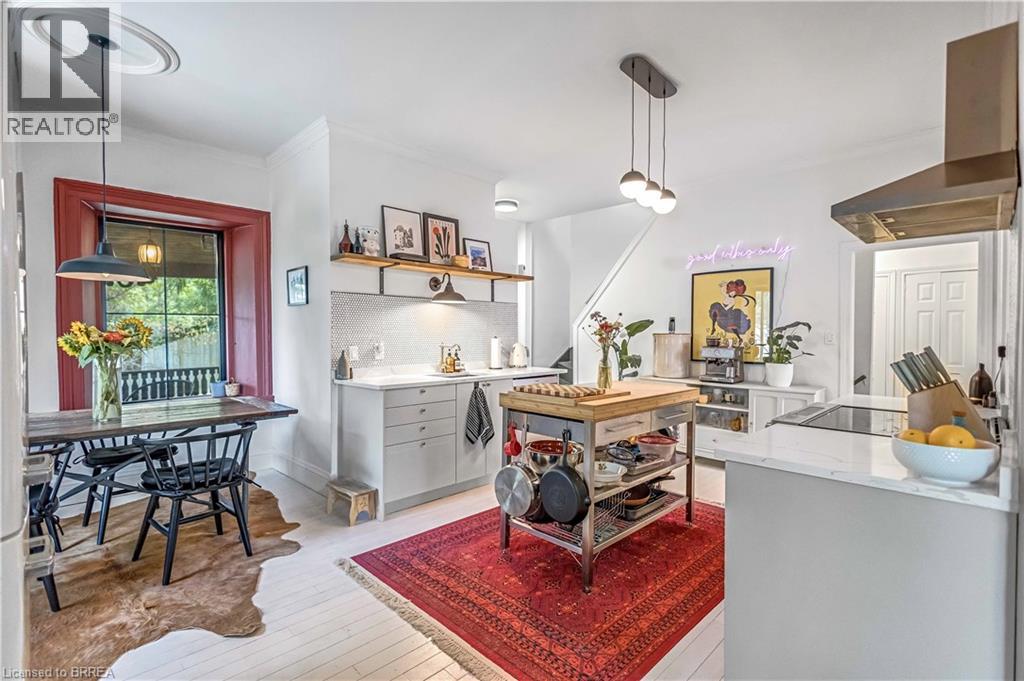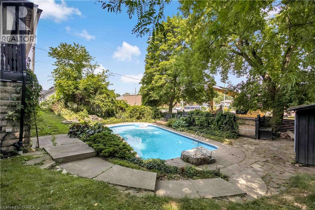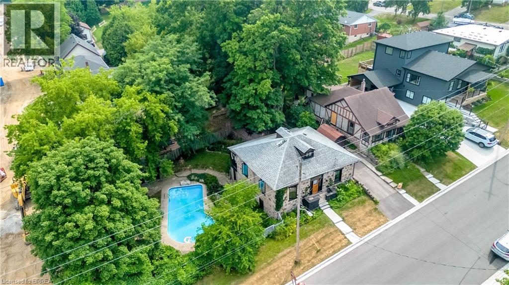 This enchanting stone residence, dating back to 1899, is tucked away in a quiet, sought-after neighbourhood in the south end of Paris— just minutes from downtown and the 403. Rich in character, the home showcases timeless curb appeal and a seamless blend of historic elegance and modern updates. Inside, you'll find an open-concept kitchen, updated windows, and refreshed fascia and eaves, all contributing to the home’s stylish functionality. The walkout basement adds valuable living space, featuring a welcoming family room, an additional bedroom or office, and direct access to the beautifully landscaped backyard with a sparkling in-ground pool. Upstairs, a cozy back porch offers a tranquil retreat to relax and enjoy the summer evenings. (id:64974)