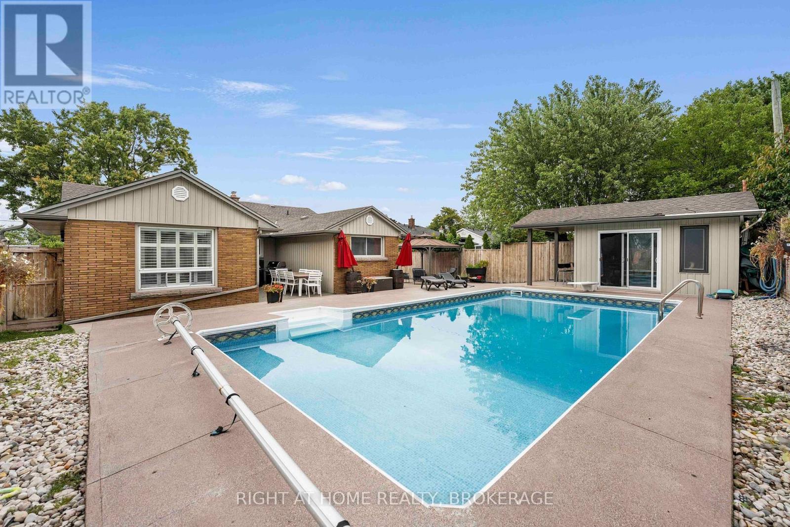 Welcome to this Stunning Oversized Bungalow with In-Law Suite & Backyard Oasis. This oversized bungalow offers over 3700 S/F total living space. 2,083 sq ft on the main floor, bsmt offers over 1700 s/f. making this the perfect home for a growing family, multi-generational family or rental opportunity. Professionally decorated and meticulously maintained, this home sits on a quiet street with a friendly mix of young families and seniors. The fully renovated main floor features 3 spacious bedrooms, 2 beautifully updated bathrooms, and a bright kitchen with a walk-in pantry that can easily be converted to a main floor laundry. Enjoy gatherings in the large great room with wet bar/kitchenette or the elegant dining room with fireplace. You'll find abundant closet space and quality finishes throughout, including real wood trim, crown moldings, and upgraded flooring. Extensive upgrades offer peace of mind and comfort: all exterior steel doors and interior doors replaced, new garage doors, upgraded electrical to 200-amp service, new sump pump, updated plumbing throughout, and a new ABS sewer line and copper water line from the city line (2018). Roof features 50-year shingles; soffits, fascia, and downspouts all replaced. Other upgrades include California shutters, all new windows, thick baseboards, and spray-foam insulated headers in the basement. The in-law suite was fully renovated 6 years ago. It has fire-rated steel doors, a separate entrance, and was previously rented for $1,350/month (2019) perfect for extended family or extra income. The beautifully landscaped yard boasts concrete work around the house and a backyard oasis featuring a inground pool, plus a 5-year-old pool house/man cave/shed with its own 40-amp panel. Pool supply/return lines redone. Enjoy the pool this summer. Close to Brock University, shopping, schools, and highway access. This home is waiting for its new owners. Immediate possession available. Great investment opportunity. Don't miss out. (id:64974)