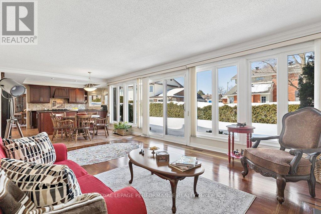 Nestled in one of Ottawa's most exclusive neighborhoods, this luxurious estate home built by Campeau is the desirable Bennington model and offers the perfect blend of elegance, privacy, and convenience. The Bennington model is very sought after for it's main floor bedroom and full bathroom, this is a very rare feature in a 2 storey home. Located in a prestigious community of expansive properties, this home is ideally situated near shopping, dining, public transit, the airport, Mooney's Bay for outdoor activities, and the Hunt Club golf course. Every detail of this home has been thoughtfully designed, featuring soaring ceilings, exquisite Brazilian cherry hardwood floors, and a custom chef's kitchen. This extraordinary home is built for everyday living and entertaining, with oversized principal rooms, granite countertops throughout, and a flexible main-floor office or bedroom, perfect for multigenerational living or a nanny suite. The property also boasts three full bathrooms, a 3-car garage, a fully finished oversized basement, and high-end finishes that exude sophistication. Step outside to your private oasis, complete with a stunning in-ground pool and beautifully landscaped grounds. Every aspect of this home speaks to luxury and functionality. Some photos have been virtually staged. Homes of this caliber are a rare find-schedule a showing today before it's gone! (id:64974)