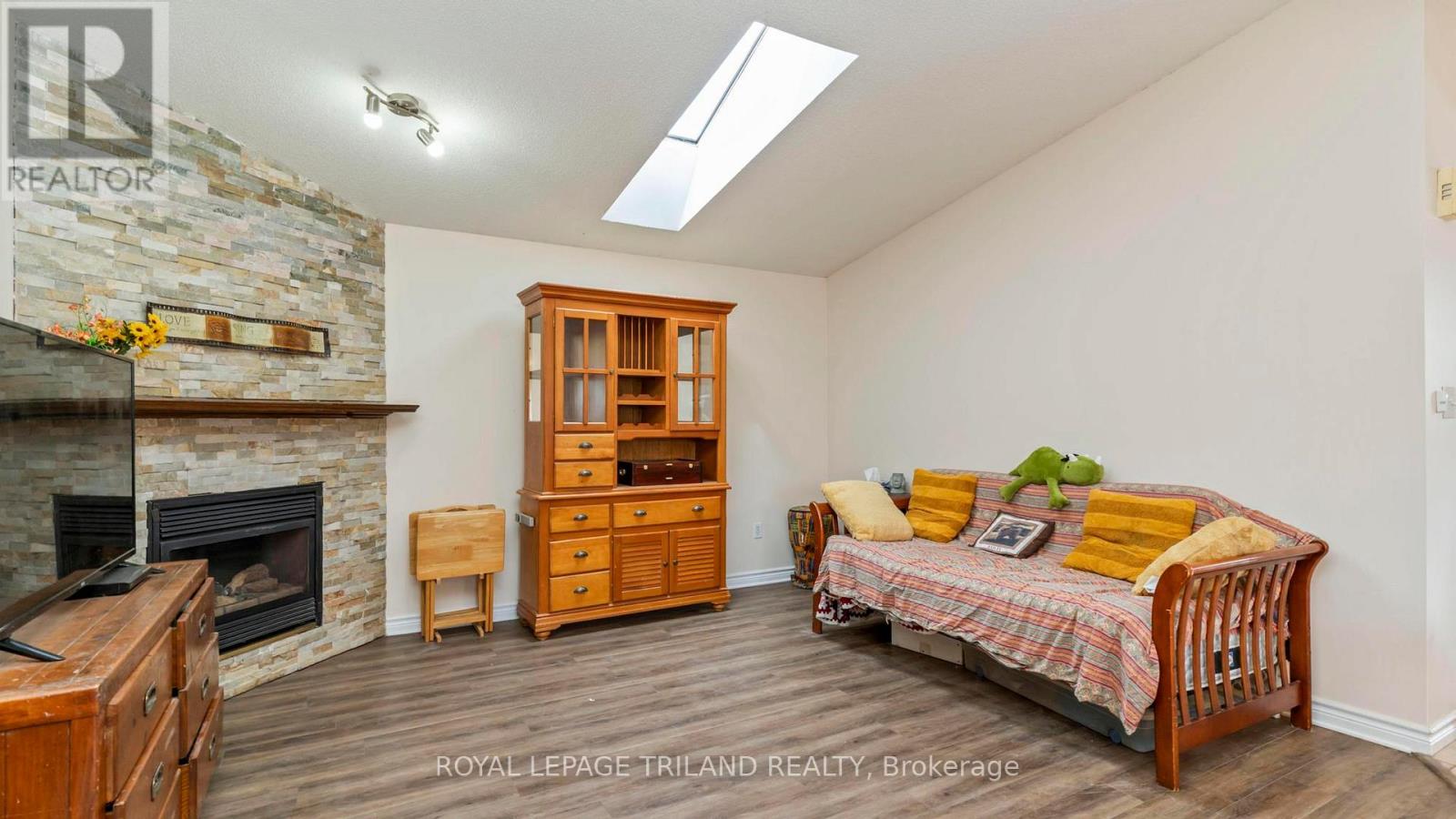 This spacious raised bungalow in desirable Pond Mills offers the ideal blend of family function, comfort, and flexibility, all tucked away on a quiet cul-de-sac in South London. Filled with natural light from the large front windows, patio doors, and skylight, the main living area feels bright, open, and welcoming. The open-concept kitchen, dining, and living space is perfect for both entertaining and everyday life, featuring a large island, generous counter space, and a cozy gas fireplace. The main floor includes 3 bedrooms and a full bathroom, along with thoughtful accessibility features such as a walk-in tub and a lift for the first section of stairs. The fully finished lower level adds impressive bonus space with a large rec room, kitchenette, additional bathroom, and a bedroom, ideal for guests, teens, extended family, or multi-purpose living. Outside, the home offers a concrete driveway, attached 1-car garage, fenced yard, and storage shed positioned to preserve as much grassy outdoor space as possible. Set in a convenient location near Southeast Optimist Park, Pond Mills trails, hospitals, shopping, and easy highway access, this property is a smart choice for families, downsizers, or buyers looking for flexible living space in a well-connected neighbourhood. (id:64974)