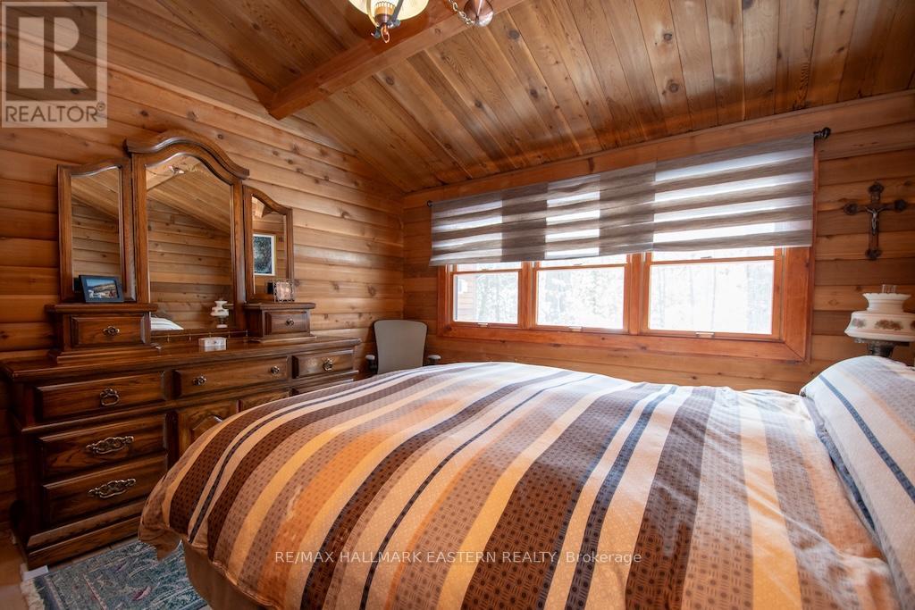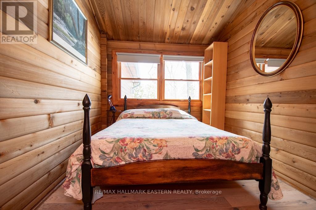 Highly sought after level point lot with 235' of waterfront with armour stone shoreline on gorgeous Buckhorn Lake. This unique log home is in the Kawartha Hideaway community and offers 3+1 bedrooms (1-bedroom bunkie for guests). Take in stunning lake views in all directions in this year-round home or cottage on the large wrap-around deck or dock. Enjoy the spaciousness of this log home with soaring vaulted ceilings. The home has 2 gas fireplaces, one of which is a floor to ceiling stone fireplace. Matching log bunkie and shed, oversized 2 car garage, and beautiful mature trees. The home is turn-key ready, including indoor and outdoor furniture. (id:64974)