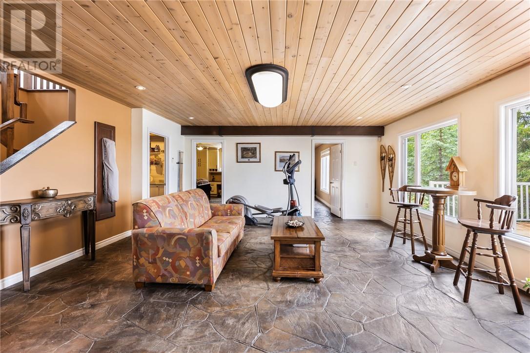 Welcome to your private lakeside paradise on beautiful Lake Wanapitei. This custom built, one owner home sits right at the water’s edge on an ultra private lot, offering a rare combination of serenity, craftsmanship, and year round comfort. With 3 bedrooms and 2 bathrooms, this lake level walkout home features an open concept design and high end finishes throughout. The kitchen boasts exceptional, top tier cabinetry, while built in custom cabinetry adds both charm and functionality across the home. The entertainment area is anchored by a stunning reclaimed BC fir beam, sourced from a 150 year old building, and includes the pool table as part of the sale. Step outside onto the massive deck, where you'll feel like you're floating on the lake itself. A covered boat structure, dock, and included boat lift ensure your watercraft is well protected. The boat is also available for purchase. Just steps from the shoreline, you'll find a convenient outdoor electric sauna, perfect for relaxing after a day on the water. There is also an existing wood fireplace structure if you wish to convert it back for that cozy, rustic feel. The massive garage is 22 x 40 and is fully insulated and heated. This is more than a home, it’s a lifestyle. Don’t miss this rare opportunity to own a piece of Lake Wanapitei’s waterfront. Go to this link for a 3D tour of the house: https://my.matterport.com/show/?m=1WeEGatfKgg& (id:64974)
