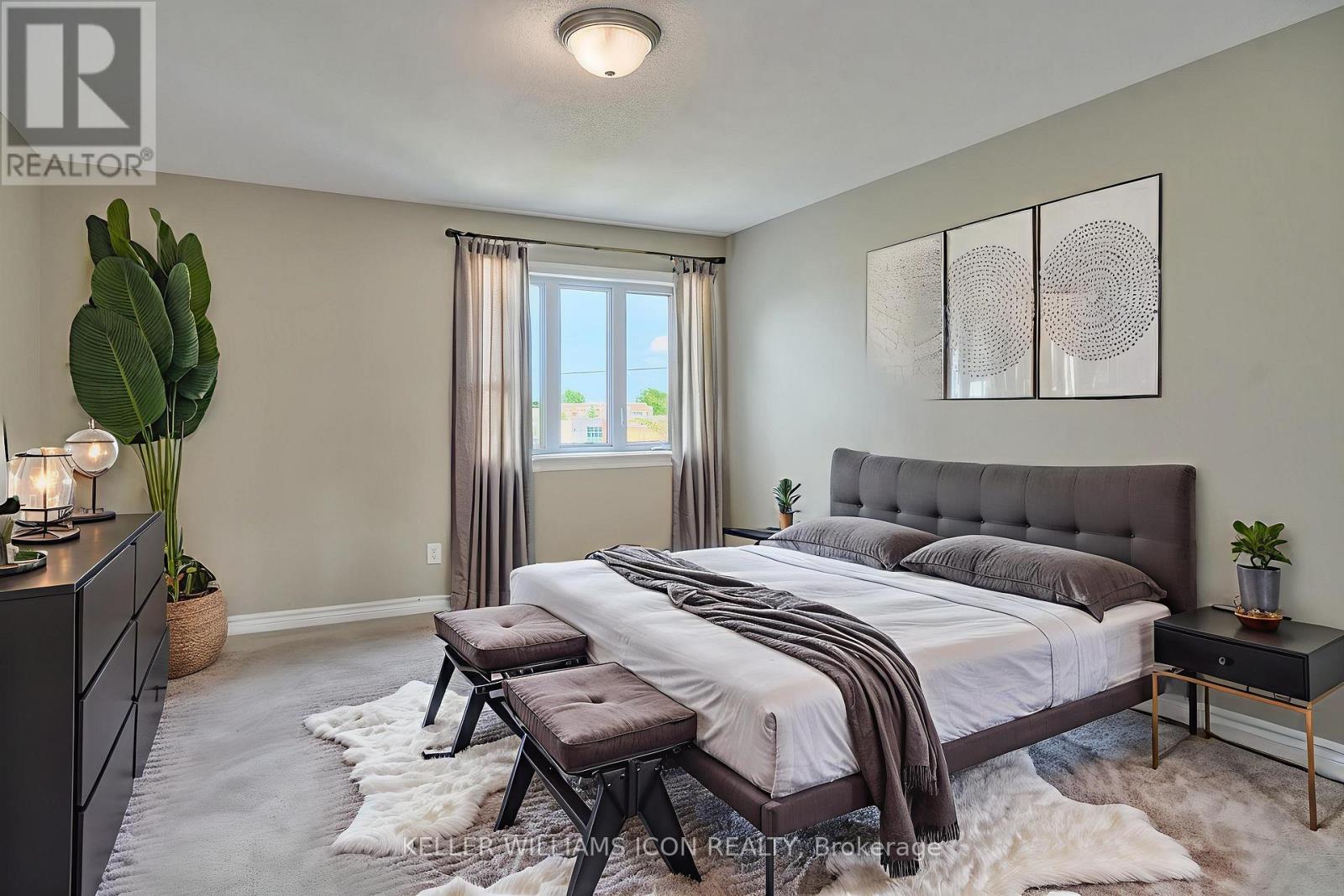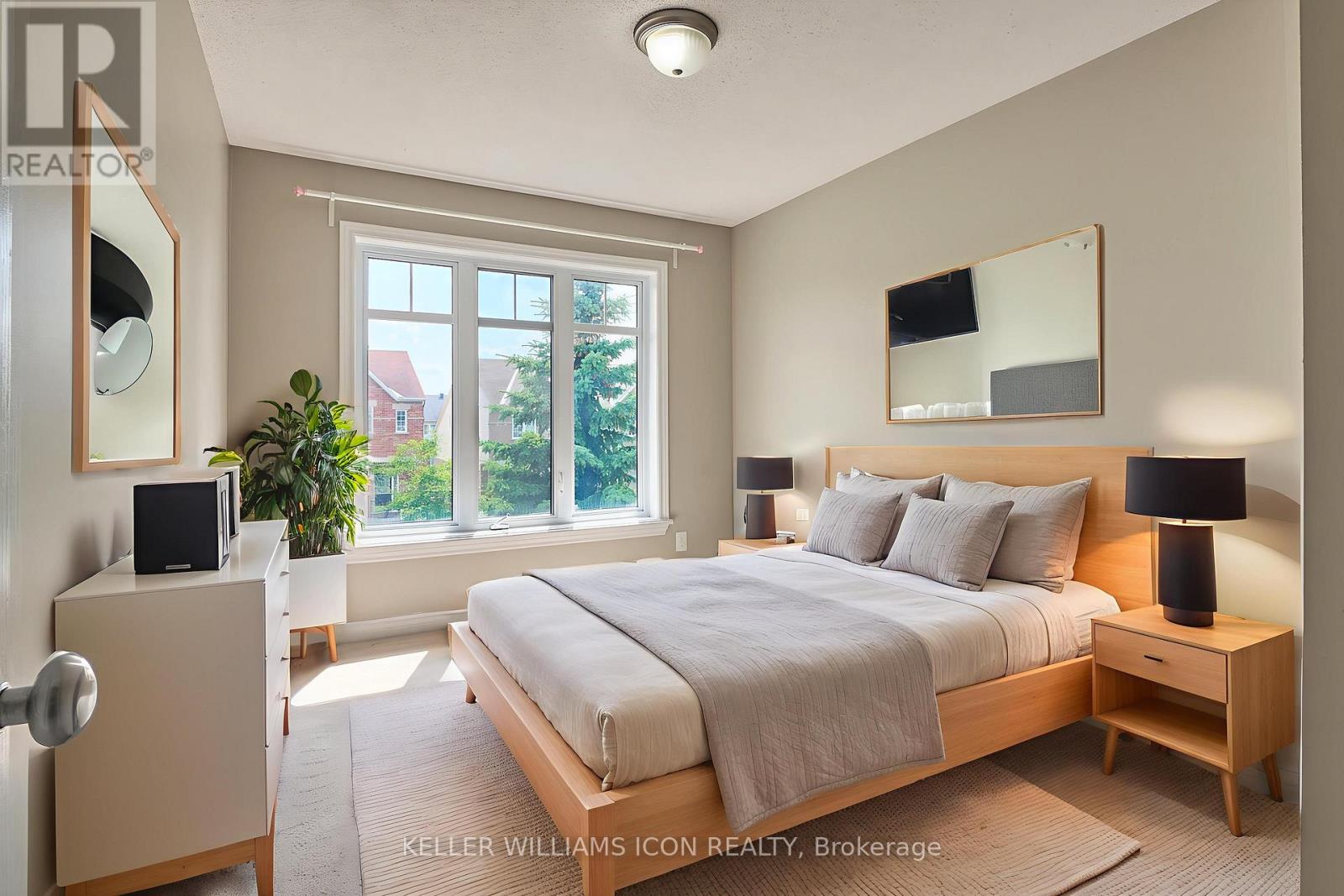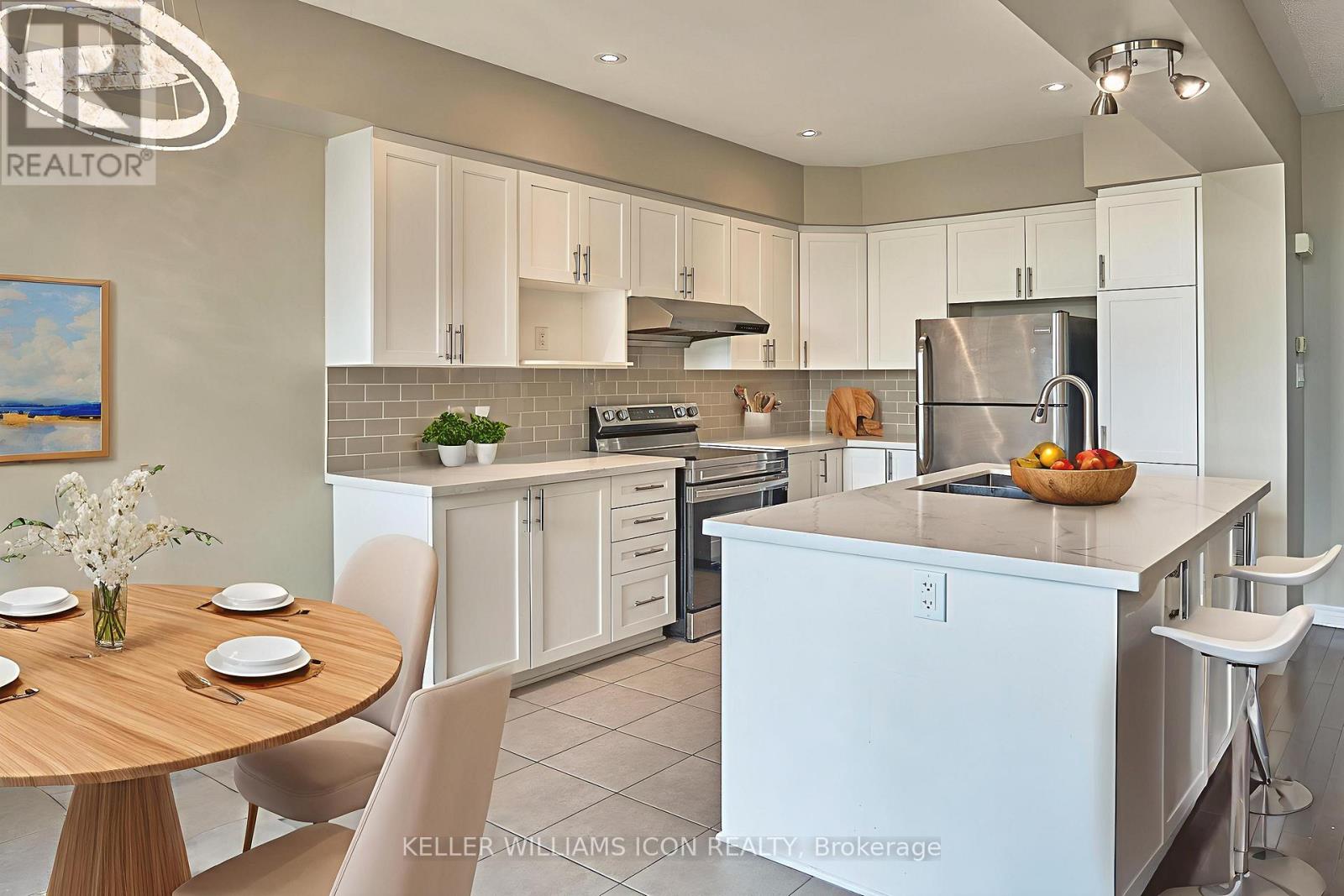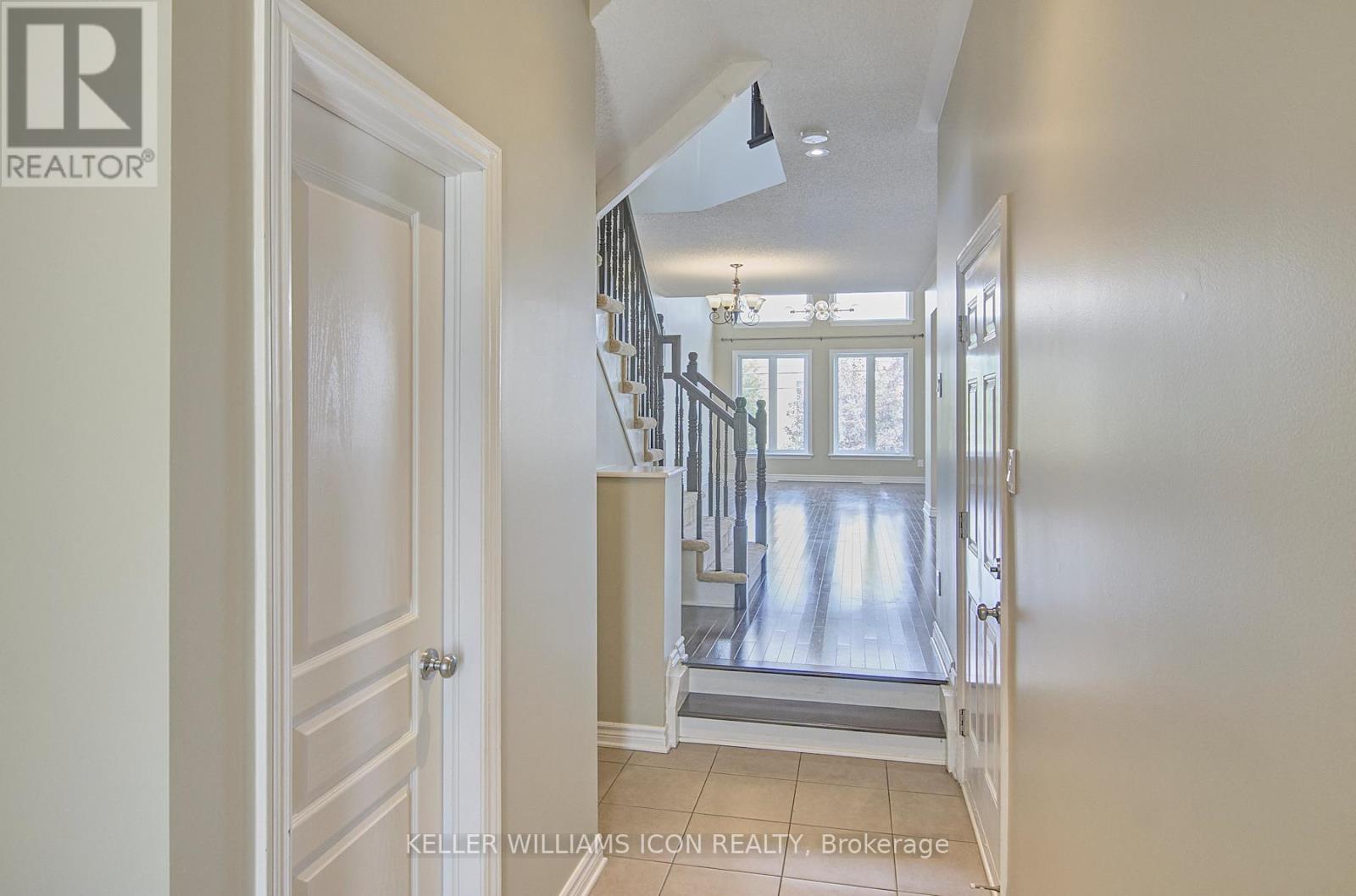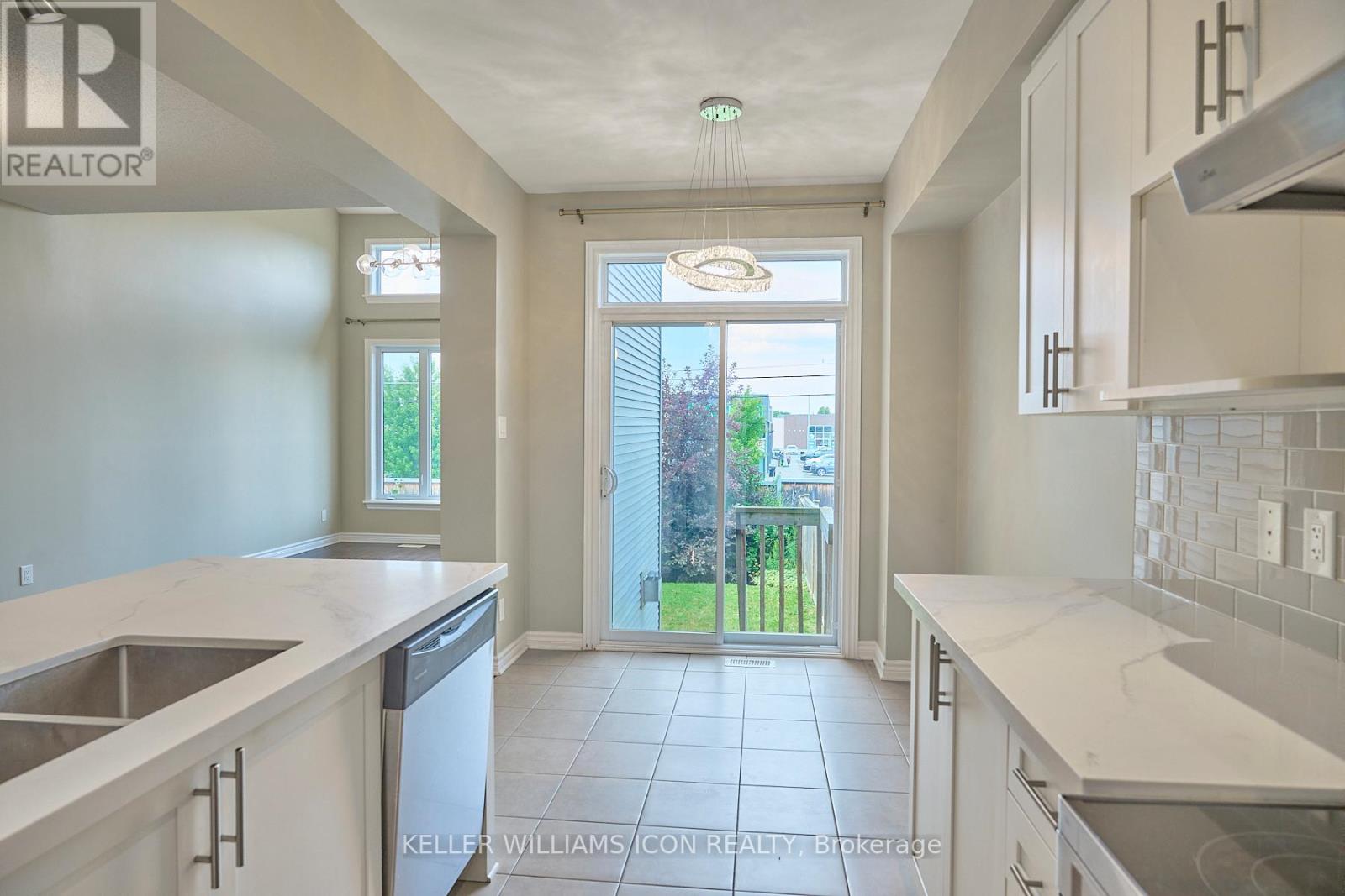 "END UNIT with NO REAR NEIGHBOURS! Welcome to this stylish townhome built by Richcraft, ideally located in highly sought-after Kanata Lakes. This impeccable home is loaded with upgrades, featuring sleek quartz countertops in the modern kitchen and luxury vinyl flooring in the finished basement. The large front porch leads to a sun-drenched main floor boasting 9-foot ceilings, gleaming hardwood, and a contemporary kitchen with stainless steel appliances and a central island. The open-concept living and dining area is brightened further by a dramatic vaulted ceiling. The spacious primary bedroom offers a walk-in closet and an elegant ensuite bath, accompanied by two good-sized secondary bedrooms and a shared full bath upstairs. The fully finished basement provides exceptional bonus space, complete with a cozy gas fireplace, laundry room, 3-piece rough-in, and abundant storage. As an end unit with no rear neighbours, the fully fenced, private backyard sits on a premium, longer lot, offering generous space and exceptional privacy for summer entertaining and family activities. Some photos are staged. Located within boundaries for top schools (including WEJ, Stephen Leacock Earl of March, and All Saints), you are steps from parks, restaurants, and grocery stores, offering ultimate convenience and luxury living. Book your private showings today!" (id:64974)