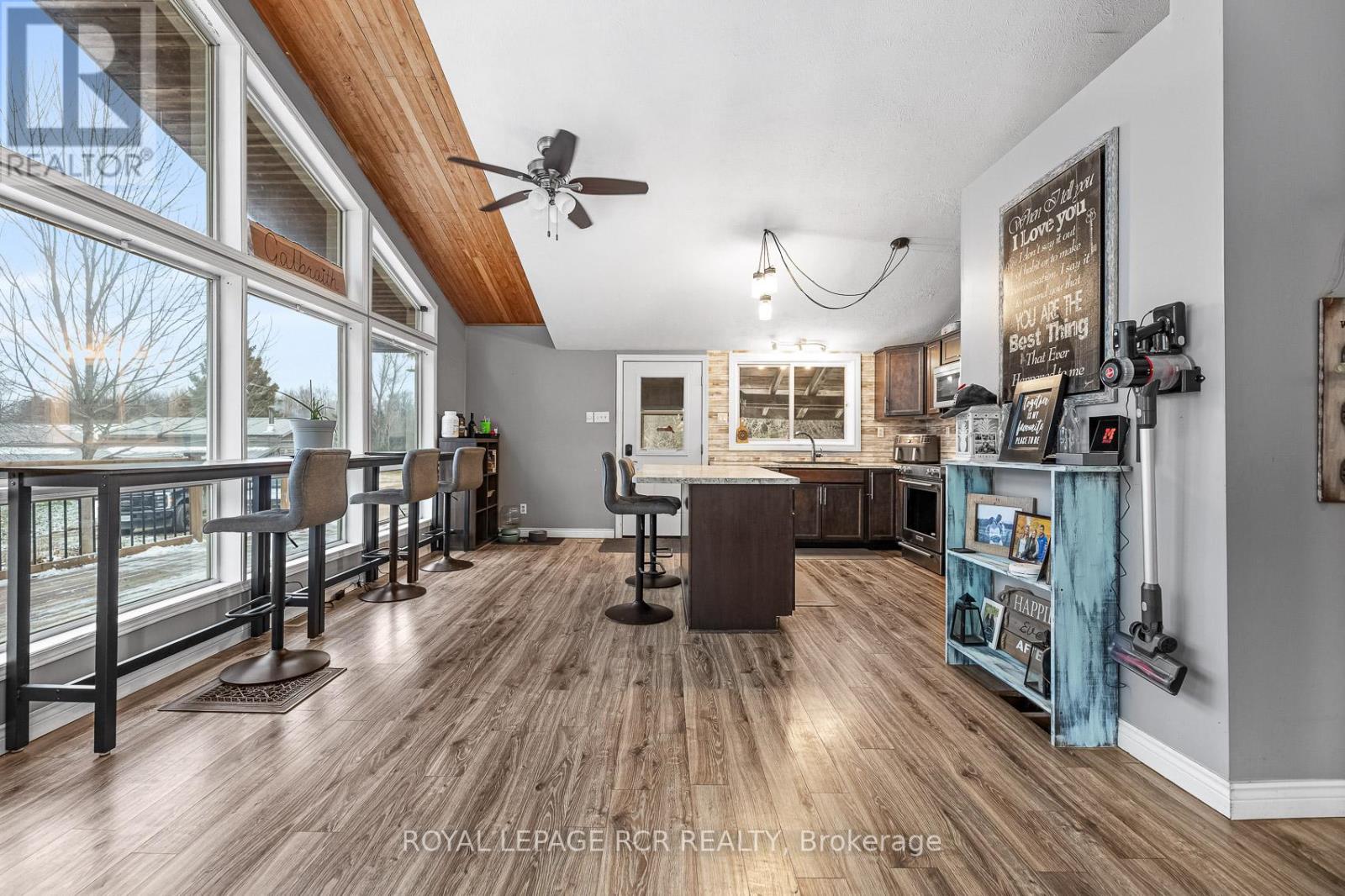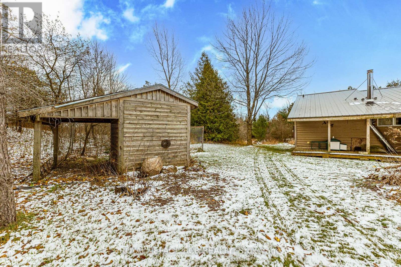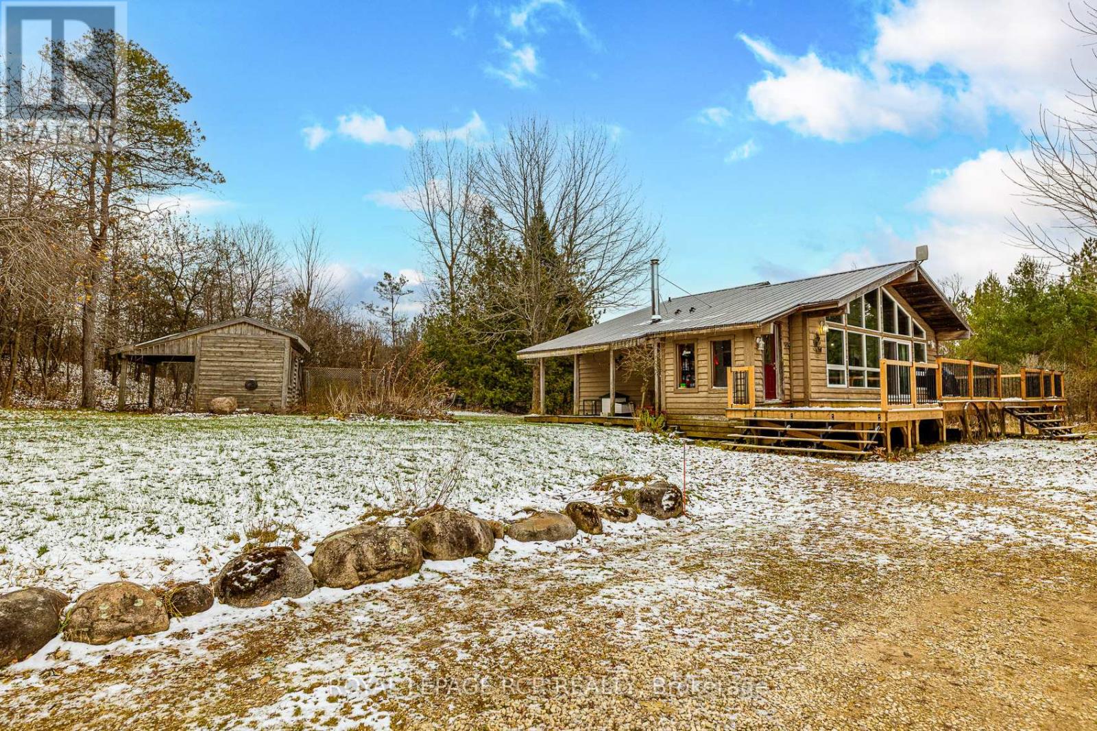 It doesn't get anymore perfect than this. Beautiful country retreat featuring 7.75 private acres, a bright 2 bedroom bungalow with wrap around porch, 20 x 30 detached workshop with hydro and heat and 20 x 30 cold storage at the back of the shop for all your toys. Step inside the mudroom entrance and into the updated open concept main level living space that features a vaulted ceiling and grand floor to ceiling windows for spectacular country views. The kitchen features stainless steel appliances and centre island, the family room with tons of light has a walkout to the wrap around deck. The primary bedroom also has a walkout to the deck and his and her closets. The lower level is partially finished with framing for 3 rooms and a wood stove that is the perfect way to supplement your heat in the winter months. Outside is perfect for all nature lovers and hobby farmers. There is a chicken coop and old paddock in need of a little TLC. Roof on the home was completed in 2022 and new roof on the shop in 2018. (id:64974)