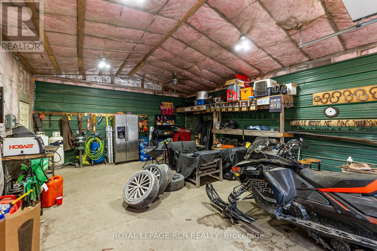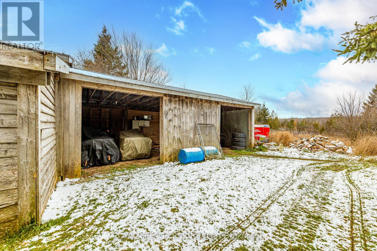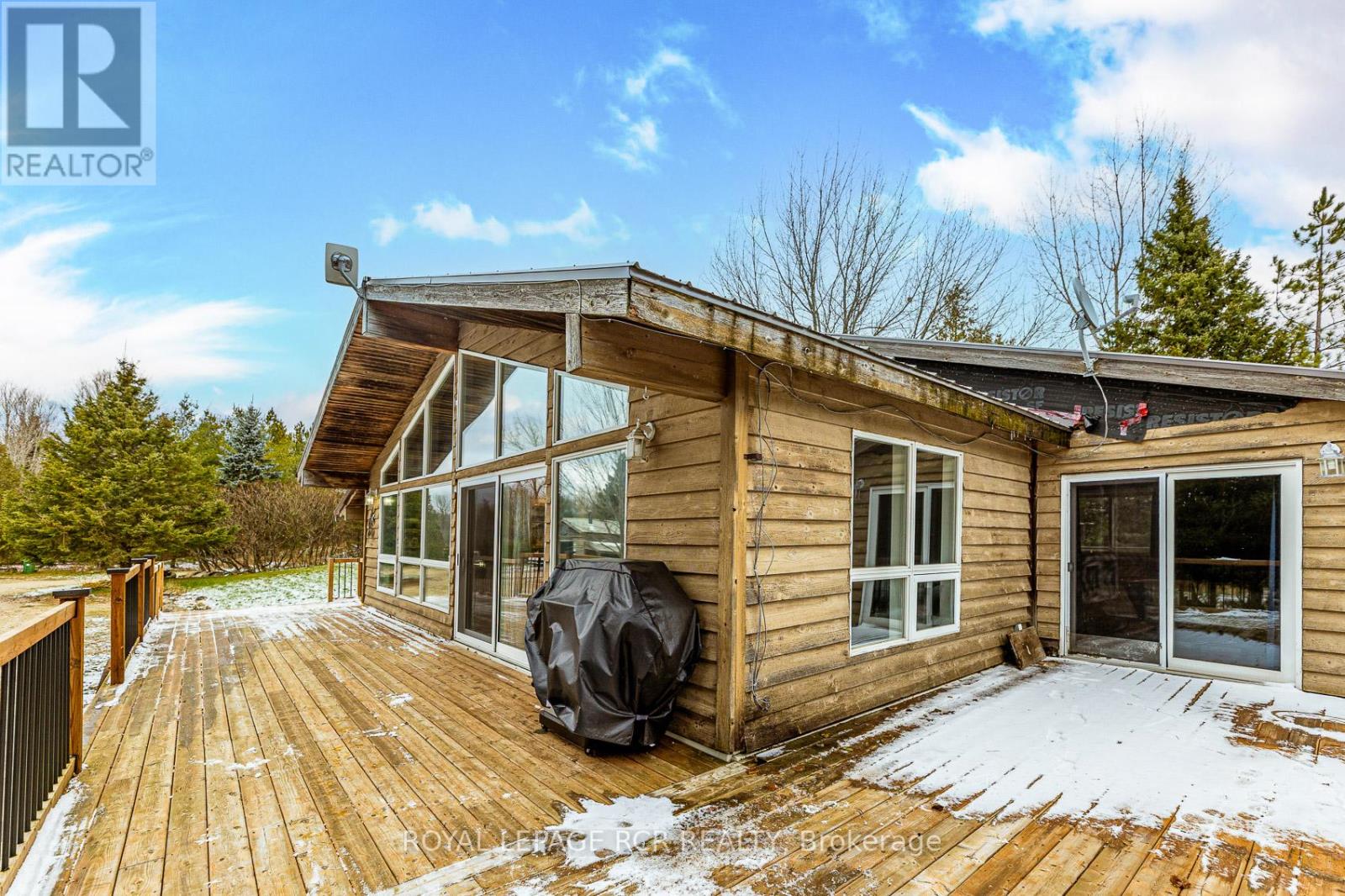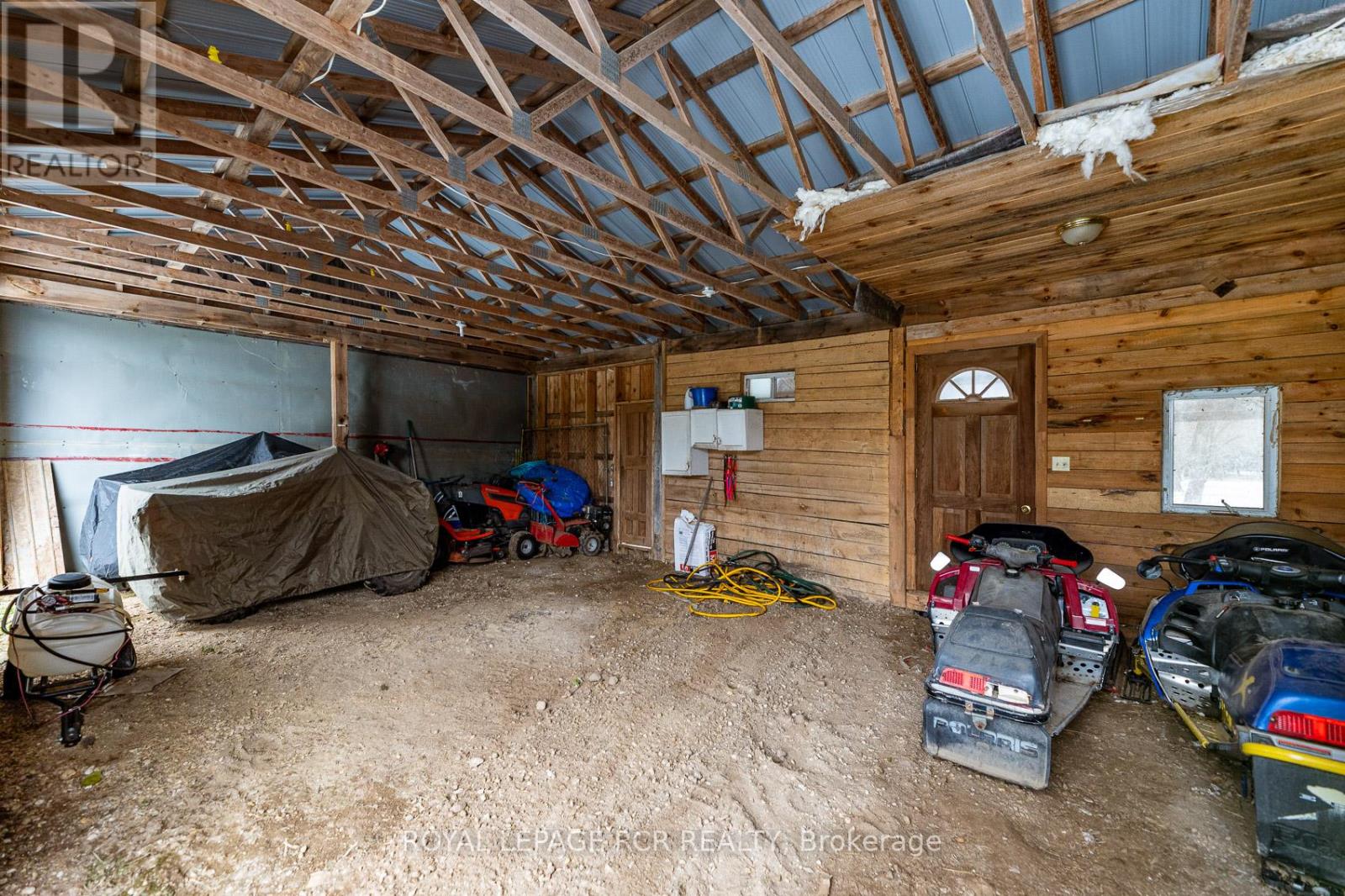 It doesn't get anymore perfect than this. Beautiful country retreat featuring 7.75 private acres, a bright 2 bedroom bungalow with wrap around porch, 20 x 30 detached workshop with hydro and heat and 20 x 30 cold storage at the back of the shop for all your toys. Step inside the mudroom entrance and into the updated open concept main level living space that features a vaulted ceiling and grand floor to ceiling windows for spectacular country views. The kitchen features stainless steel appliances and centre island, the family room with tons of light has a walkout to the wrap around deck. The primary bedroom also has a walkout to the deck and his and her closets. The lower level is partially finished with framing for 3 rooms and a wood stove that is the perfect way to supplement your heat in the winter months. Outside is perfect for all nature lovers and hobby farmers. There is a chicken coop and old paddock in need of a little TLC. Roof on the home was completed in 2022 and new roof on the shop in 2018. (id:64974)