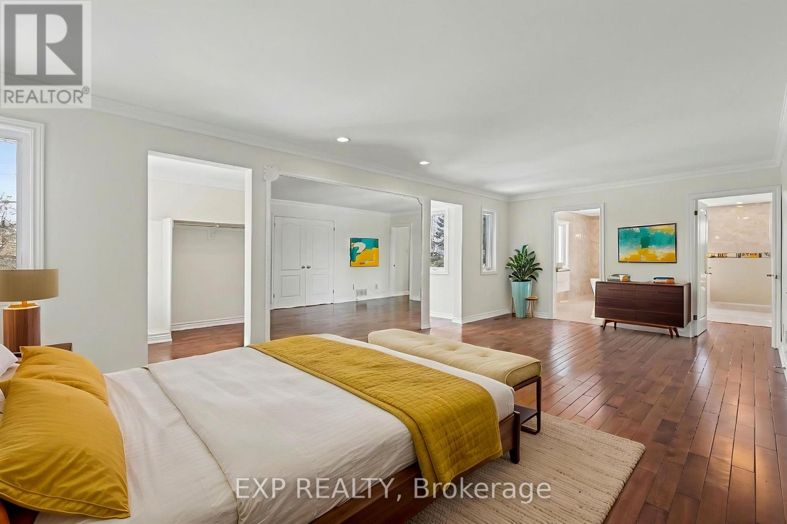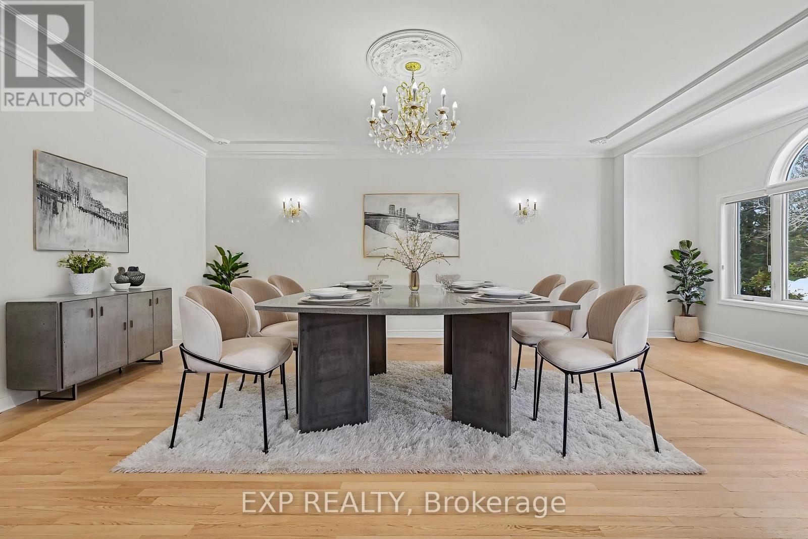 Welcome to your private estate in the heart of Rideau Forest, set on approximately 2 acres surrounded by mature trees and manicured grounds. Offering over 5,500 sq ft above grade, this impressive all brick two story home features 5 bedrooms and 7 bathrooms, with every bedroom complete with its own ensuite. A grand vaulted foyer sets the tone, leading into expansive principal rooms designed for both everyday living and large scale entertaining. The formal dining room comfortably accommodates twenty guests, while the kitchen and breakfast area overlook the rear gardens and inground Gunite pool, creating a seamless indoor outdoor connection. The main level includes multiple living spaces, a den or optional bedroom, and elegant finishes throughout including hardwood flooring and crown moulding. Upstairs, the primary suite is a retreat of its own, featuring a marble appointed 5 piece ensuite, generous walk in closet, and a private sitting area framed by oversized windows. The fully finished lower level adds exceptional versatility with a sprawling recreation room, media space, full bath, additional bedroom, and direct access from the garage, ideal for extended family or guests. Car enthusiasts and collectors will appreciate the rare dual triple car garages with inside entry, offering parking for six vehicles. Major updates include roof, windows and exterior doors replaced in 2018, along with two high efficiency furnaces, two A/C units, and two hot water tanks. Outdoors, enjoy a 36' x 17' inground pool enclosed by elegant wrought iron fencing, expansive interlock, and lush lawns that offer both privacy and presence. A distinguished residence in one of the city's most sought after estate communities. (id:64974)
