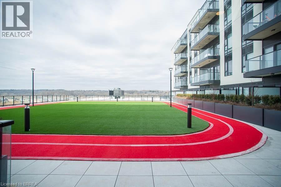 Welcome to The Ambrose Condos - an exceptional residence that seamlessly blends luxury, modern design, and effortless living. Ideal for first-time buyers, professionals, and those seeking to downsize without compromise, each thoughtfully designed suite supports a low-maintenance lifestyle tailored to today’s busy schedules. Showcasing striking architecture, this is the first design of its kind in the West Brant community, delivering both sophistication and convenience. The meticulously designed foyer sets the tone, offering a refined and contemporary welcome that leaves a lasting impression on residents and guests alike from its porcelain tile floors, modern lighting and comfortable but sophisticated conversation areas. Residents enjoy an outstanding selection of amenities that set a new standard for condominium living in Brantford. A fully equipped fitness centre, outdoor track, and dedicated yoga studio provide convenient wellness options, while the elegant party room with beautiful views is perfectly suited for hosting larger gatherings. Each suite is appointed with premium finishes, including luxury vinyl plank flooring, quartz countertops in both kitchens and bathrooms, private outdoor terraces for seasonal enjoyment, and the convenience of in-suite laundry. Additional features such as covered parking and secure storage lockers further enhance everyday ease and functionality. The Ambrose Condos offer a superior blend of quality craftsmanship, elevated style, and lifestyle-focused amenities. This is a truly exceptional living experience. (id:64974)