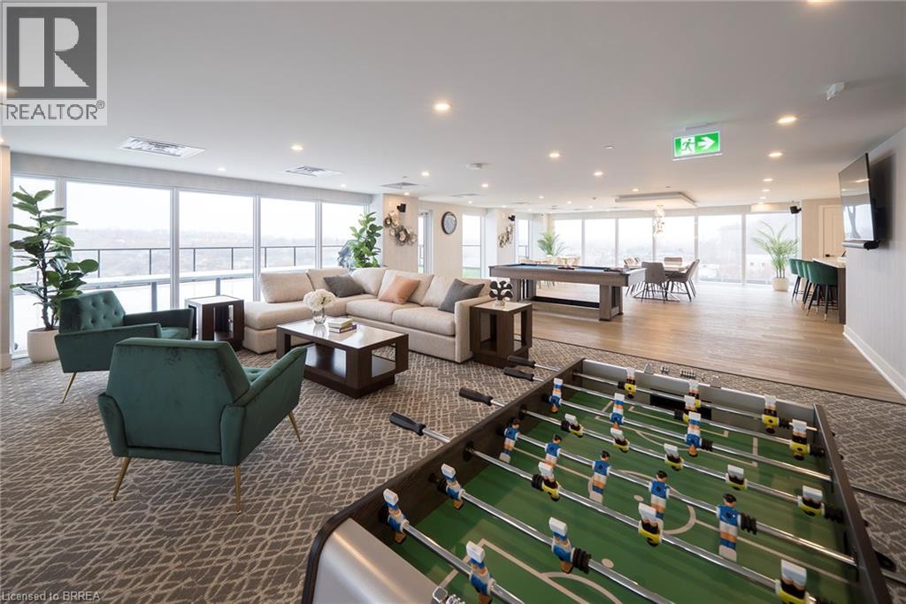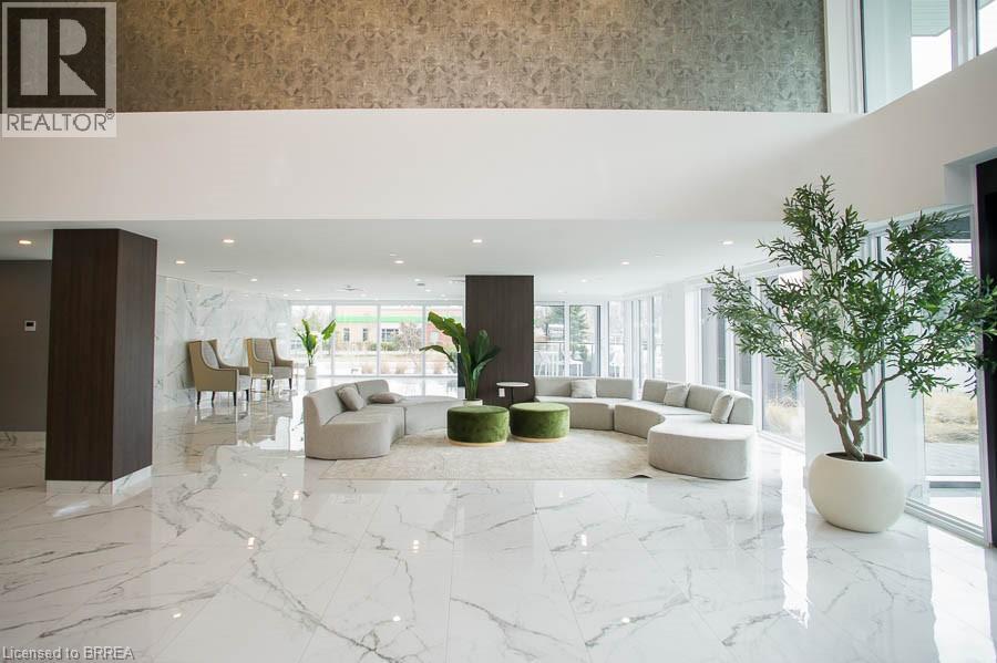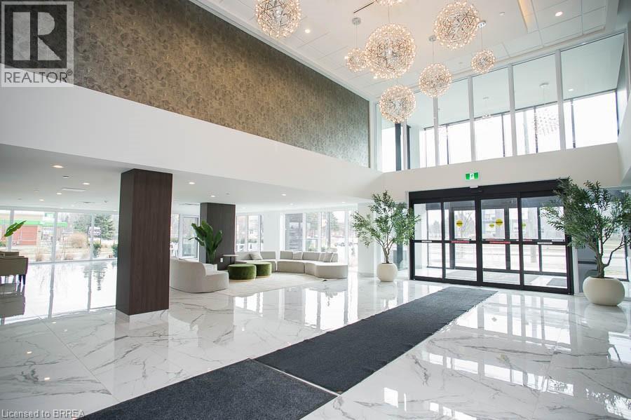 Welcome to The Ambrose Condos - an exceptional residence that seamlessly blends luxury, modern design, and effortless living. Ideal for first-time buyers, professionals, and those seeking to downsize without compromise, each thoughtfully designed suite supports a low-maintenance lifestyle tailored to today’s busy schedules. Showcasing striking architecture, this is the first design of its kind in the West Brant community, delivering both sophistication and convenience. The meticulously designed foyer sets the tone, offering a refined and contemporary welcome that leaves a lasting impression on residents and guests alike from its porcelain tile floors, modern lighting and comfortable but sophisticated conversation areas. Residents enjoy an outstanding selection of amenities that set a new standard for condominium living in Brantford. A fully equipped fitness centre, outdoor track, and dedicated yoga studio provide convenient wellness options, while the elegant party room with beautiful views is perfectly suited for hosting larger gatherings. Each suite is appointed with premium finishes, including luxury vinyl plank flooring, quartz countertops in both kitchens and bathrooms, private outdoor terraces for seasonal enjoyment, and the convenience of in-suite laundry. Additional features such as covered parking and secure storage lockers further enhance everyday ease and functionality. The Ambrose Condos offer a superior blend of quality craftsmanship, elevated style, and lifestyle-focused amenities. This is a truly exceptional living experience. (id:64974)