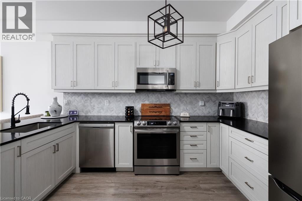 Welcome to 39-575 Woodward Avenue, Hamilton - an exceptional townhome in the sought-after WATERWORX community by award-winning Losani Homes.This spacious 3-bedroom, 3-bathroom residence offers over 1,600 sqft and is one of the four largest units in the complex. Designed for modern living, the open-concept main living level features a bright and airy living room, a contemporary kitchen with stainless steel appliances, a generous dinette area with sliding doors to a private balcony, plus a convenient powder room and laundry.The upper level showcases three well-appointed bedrooms, including a spacious primary retreat with ensuite, along with a full second bathroom. The ground level offers a welcoming foyer, versatile flex space ideal for a home office or gym, and inside access to the single-car garage.Complete with a private driveway and ample visitor parking, this home is ideally positioned just minutes to the QEW, Red Hill Valley Parkway, Confederation Park, and the Lake - offering both convenience and lifestyle. (id:64974)