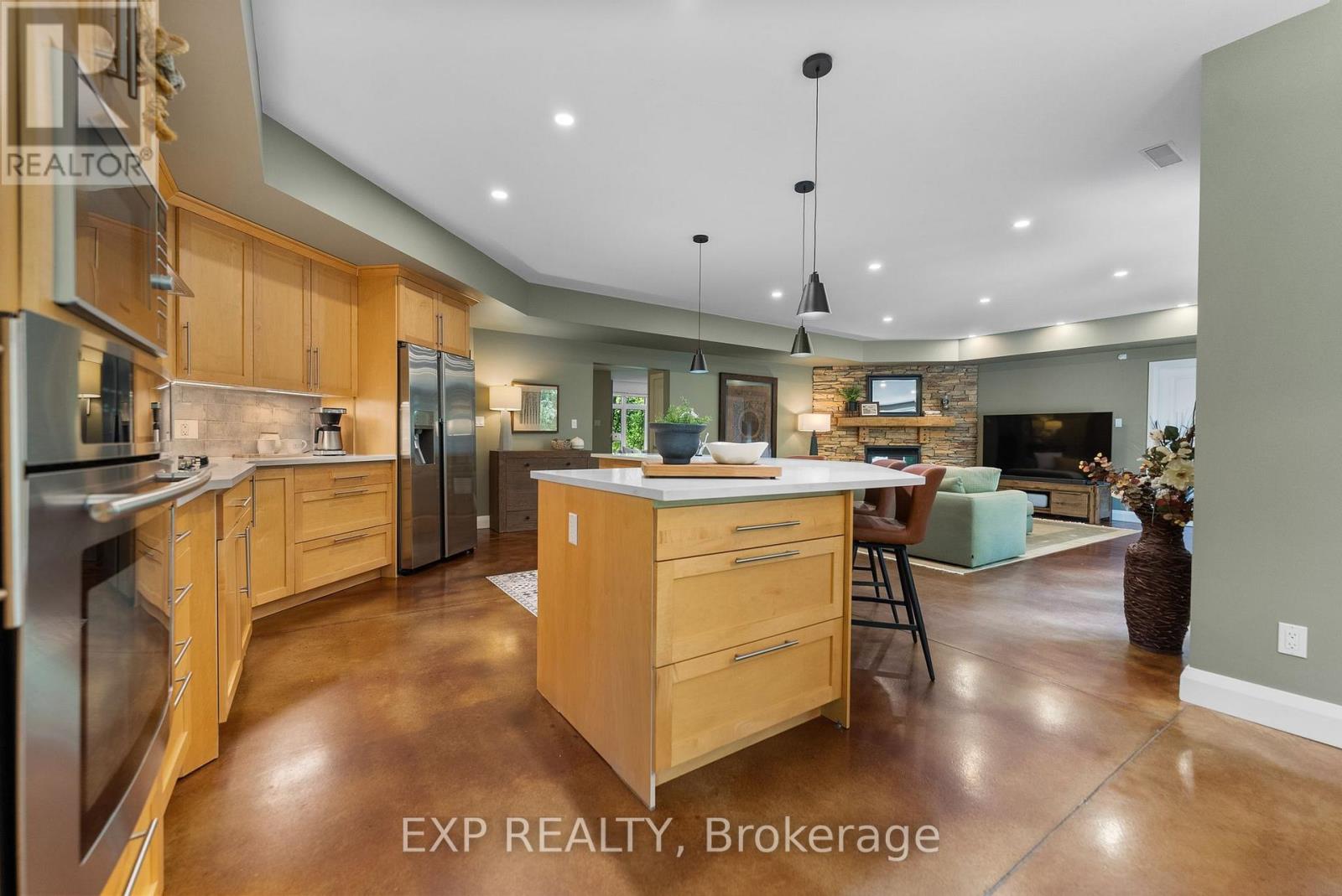 Prestige. Privacy. Perfection. Welcome to 5759 Queenscourt Crescent in the exclusive enclave of Rideau Forest, where timeless Prairie-style architecture meets modern luxury on a stunning 4.4-acre treed estate. This custom-built 2006 residence offers over 4,600 sq. ft. of beautifully finished living space, featuring 5 bedrooms, 4 bathrooms, and a 3-car attached garage.Built with energy-efficient ICF construction and heated polished concrete floors, the home delivers exceptional year-round comfort and efficiency. At the heart of the home, the expansive open-concept kitchen impresses with custom cabinetry, an oversized island, and elegant quartz countertops, flowing seamlessly into the sun-filled great room-perfect for both everyday living and entertaining.A rare and highly desirable main-level in-law suite offers its own private entrance, living area, bedroom, and bathroom-ideal for multi-generational living, extended guests, or a private home office while still maintaining a sense of connection under one roof.Floor-to-ceiling windows throughout flood the home with natural light and showcase peaceful forest views from nearly every room. Upstairs, the luxurious primary suite is a true retreat, complete with a cozy sitting area, natural gas fireplace, spa-inspired ensuite, and a generous walk-in closet. A spacious office, an additional bedroom, and a full bath complete the upper level.Set in one of Ottawa's most sought-after communities, this exceptional property offers the perfect balance of privacy and convenience-just minutes to Manotick Village, golf courses, the Rideau River, and an easy commute to downtown. (id:64974)