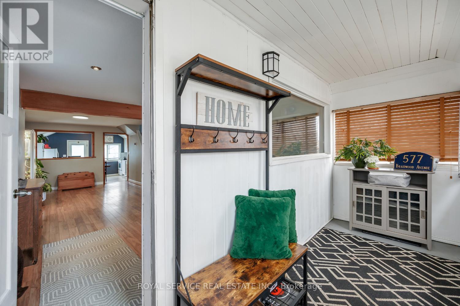 Fantastic opportunity for first-time home buyers, investors, or those looking to downsize. 577 Braidwood is ideally located within walking distance to schools, parks, and everyday amenities, with public transit just steps away, all in a welcoming, family-friendly neighborhood. The property is easy to maintain and features two comfortable bedrooms and a tastefully renovated four-piece bathroom. The spacious eat-in kitchen offers direct access to the back deck, making it perfect for both everyday living and entertaining. The home also includes a large and inviting living and dining areas that provide plenty of space to relax and gather. A three-season sunroom or mudroom adds valuable additional space, ideal for storage or enjoying the changing seasons. Outside, the fully fenced yard includes a garden shed, which is perfect for storing lawn and gardening equipment. The thoughtfully landscaped perennial gardens bring vibrant color throughout the seasons and create a peaceful outdoor setting. This move-in ready home offers exceptional value, with nothing left to do but unpack and start enjoying your new space. (id:64974)