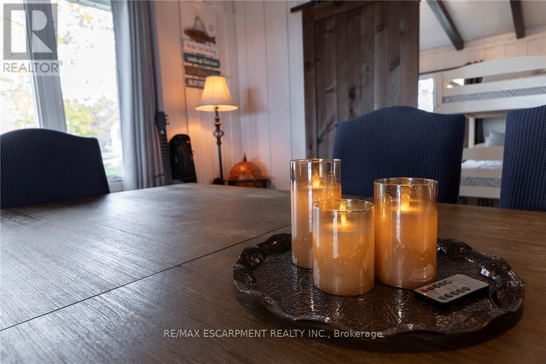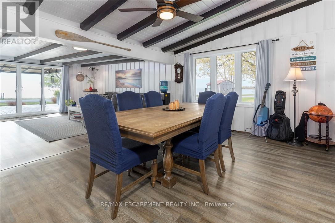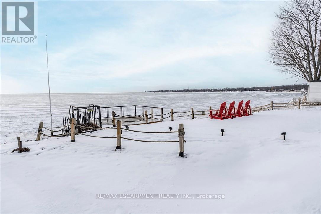 BREATHTAKING Waterfront views at your year round LAKESIDE OASIS. Check out this spacious 4 Bed, 2 Bath Bungalow with Detached Garage! You will be wowed by this one offering privacy, tranquility and peaceful living and inside offers high ceilings, large windows for plenty of natural light and amazing views. The open concept is perfect for entertaining family and friends. The spacious liv rm with FP offers a perfect space for family movie and game nights. The Kitchen is a showstopper with S/S appliances, modern backsplash, stone counters and a lg island w/extra seating and storage. The master bedroom is a real retreat with your own patio door to the large deck with stunning water views. There are also 3 more spacious bedrooms for your family and friends. Saving the best for last is the outside of this spectacular home with the expansive deck-perfect for enjoying your morning coffee or evening wine, family dinners or just watching the waves crash in. The large backyard also offers a spacious fire pit area, horseshoe area and plenty of room for games. The bonus is your own private beach access & deck, perfect for those that love the peace & tranquility of the water all year long. You are also close to trails, golfing and all the conveniences of Dunnville are just moments away. Don't miss this fantastic property that offers EVERYTHING you need, beautifully renovated, spacious floor plan, large yard and lakeside retreat. (id:64974)
