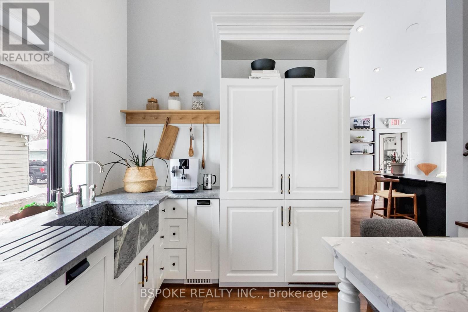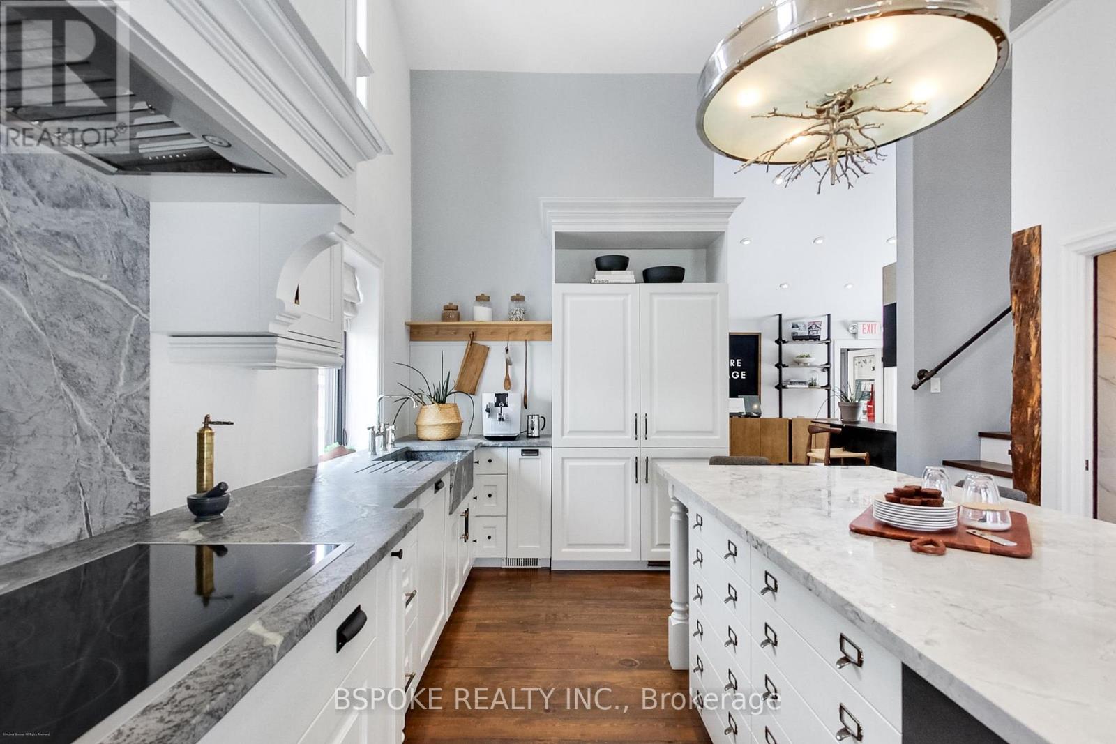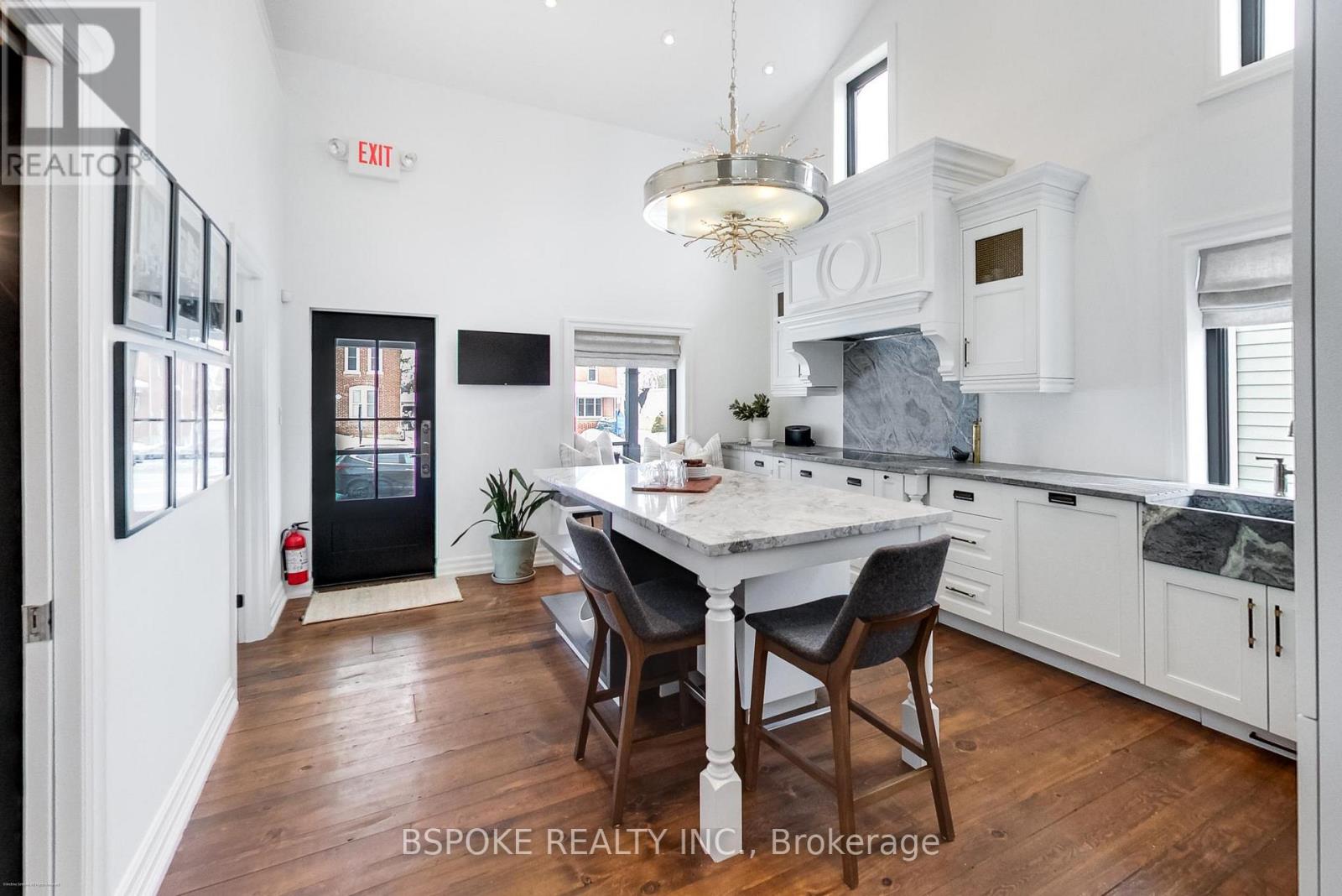 578 Kingston Rd is a fully modernized VC3-zoned commercial property offering the rare combination of structural authenticity and updated infrastructure on a 66 x 150 ft lot in Central West Ajax. The VC3 zoning provides flexible mixed-use potential, permitting a range of commercial uses with the opportunity for residential accommodation above, subject to applicable municipal regulations. Originally constructed as a barn, the building retains continuous barn boards running floor to roof and exposed structural elements, while the interior has been opened to create cathedral ceilings, a loft aligned with the roofline, and consistent natural light throughout.Major capital components have been updated, including roof (2019), windows and exterior doors (2021), insulation, plumbing, electrical panel, HVAC (zoned), and drainage improvements, with renovations completed under permits and a finalized site plan available. Exterior improvements include organized hardscaping, professional landscaping, a wraparound front porch, rear deck, accessible ramp, and approved illuminated signage on both front and side elevations.At the rear, the property offers nine surface parking spaces including an accessible space, delivery access suitable for large trucks, and a detached two-car garage/workshop with spray foam insulation, separate breaker panel, and underground rough-in gas line. Inside, designer-led renovations feature custom cabinetry, integrated appliances, stone countertops, reclaimed barn board flooring, built-in millwork, LED lighting, and thoughtful storage throughout.Walking distance to historic Pickering Village with convenient highway and transit access, this is a turnkey commercial asset suited to an established operator seeking visibility, flexibility, and long-term durability without immediate capital reinvestment. (id:64974)