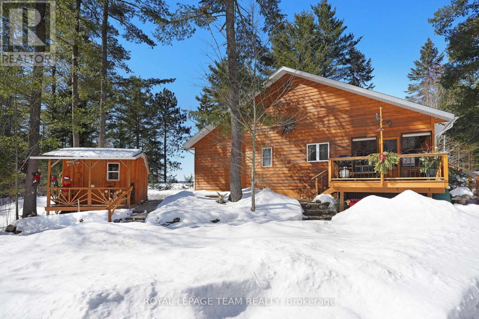 Welcome to your private retreat on the shores of Black Donald Lake - where comfort, craftsmanship, and classic Calabogie living come together. Built in 2010, this beautifully maintained 3-bedroom bungalow is tucked away in an exceptionally private setting, offering peace and tranquillity with stunning views across the lake. Floor-to-ceiling windows flood the open-concept living space with natural light and perfectly frame the sparkling water and breathtaking sunsets you'll enjoy every evening. Designed for both relaxation and entertaining, the home features a spacious three-season porch that extends your living space and opens onto generous decking surrounded by thoughtfully landscaped gardens. Whether hosting friends or enjoying a quiet morning coffee, the setting is nothing short of spectacular. Outdoors, you'll appreciate the detached oversized heated garage-ideal for vehicles, recreational toys, or workshop space - along with a separate sauna for the ultimate apres-lake or apres-ski experience. Located just minutes from the slopes at Calabogie Peaks and the heart of Calabogie, you're perfectly positioned to enjoy everything the area has to offer: restaurants, grocery and hardware store, services, golf, hiking trails, and the excitement of Calabogie Motorsports Park. This is more than a home-it's a lifestyle. Waterfront serenity paired with four-season adventure in one of Eastern Ontario's most sought after recreational communities. (id:64974)