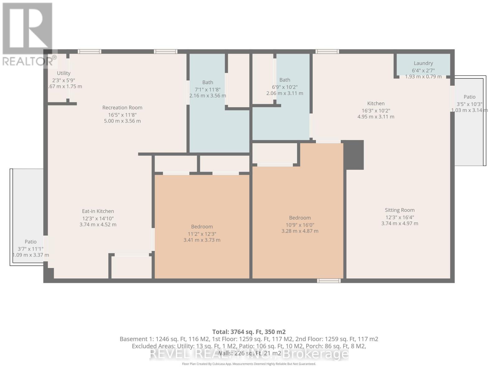 - Exterior: Brick, Stucco