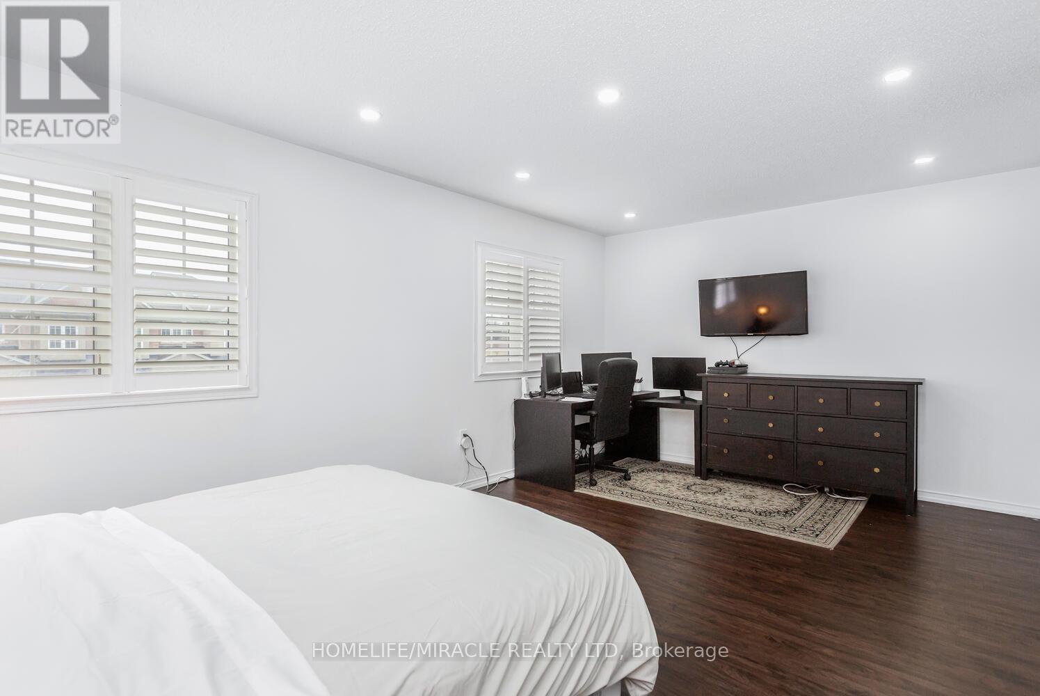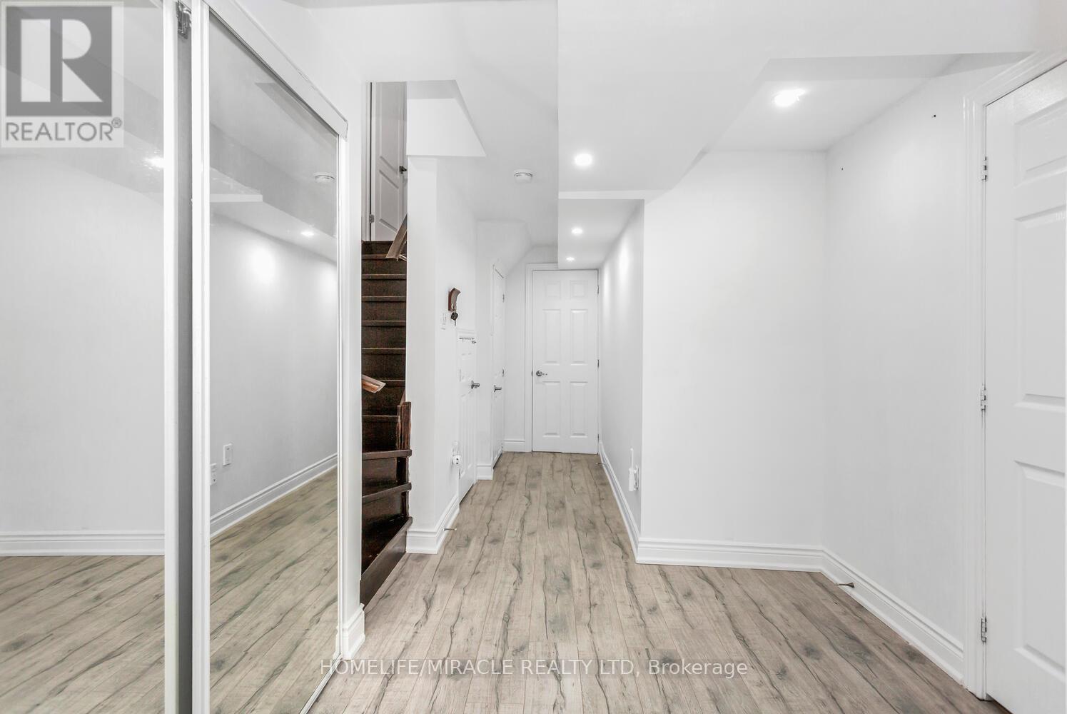 Welcome to this beautiful townhome in the highly sought-after Willmott neighbourhood, offering approximately 1,600 sq ft of thoughtfully designed living space. Perfectly suited for families, this home is located near several highly rated schools, including Anne J. MacArthur Public School, Irma Coulson Public School, and St. Benedict Catholic Secondary School, making it an ideal choice for growing households. This well-maintained property provides parking for two vehicles plus convenient visitor parking and features an inviting open-concept layout with stylish upgrades throughout. The kitchen showcases rich cabinetry, a modern backsplash, stainless steel appliances, stone countertops, and quality finishes that elevate the space. The bright living and dining areas feature hardwood flooring, upgraded lighting, and a soft, neutral colour palette that creates a warm and welcoming atmosphere. Upstairs, the spacious primary suite offers a beautifully appointed ensuite complete with a glass-enclosed shower, relaxing soaker tub, and vanity. Two additional bedrooms share a convenient main bathroom, providing comfort and practicality for the entire family. The finished basement, featuring a fully functional kitchen, washroom, family room, and above-grade windows, offers excellent in- law suite potential or additional living space. With a main-floor powder room and modern finishes throughout, this townhome delivers the perfect blend of comfort, style, functionality, and an unbeatable family-friendly location. (id:64974)
