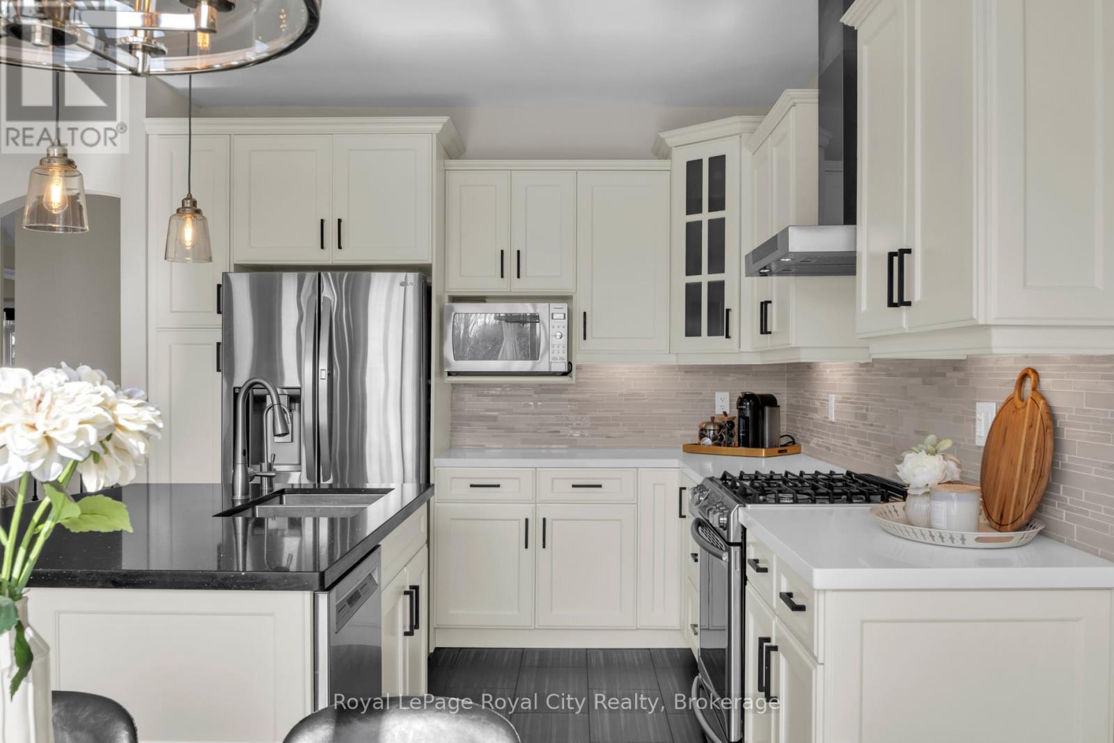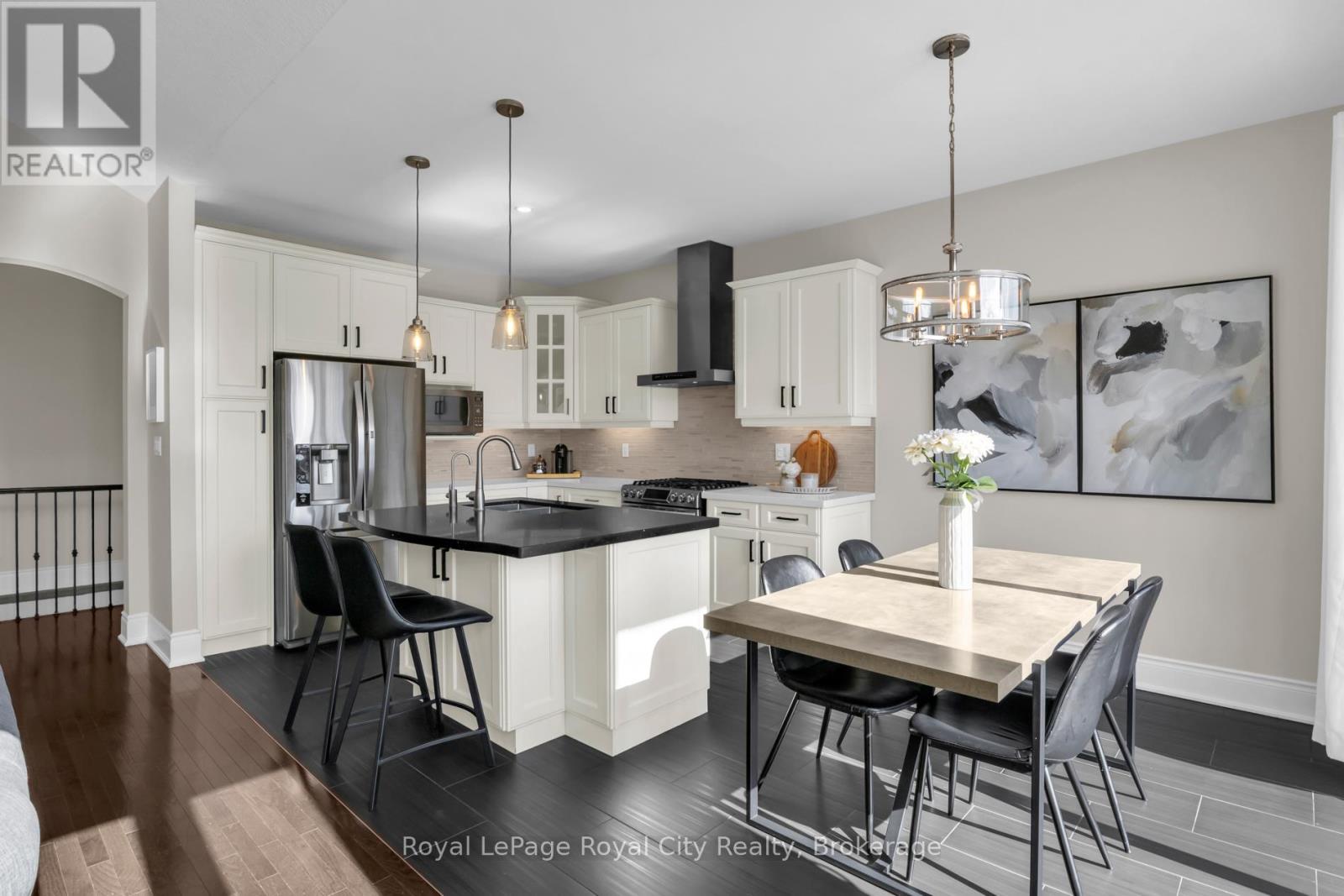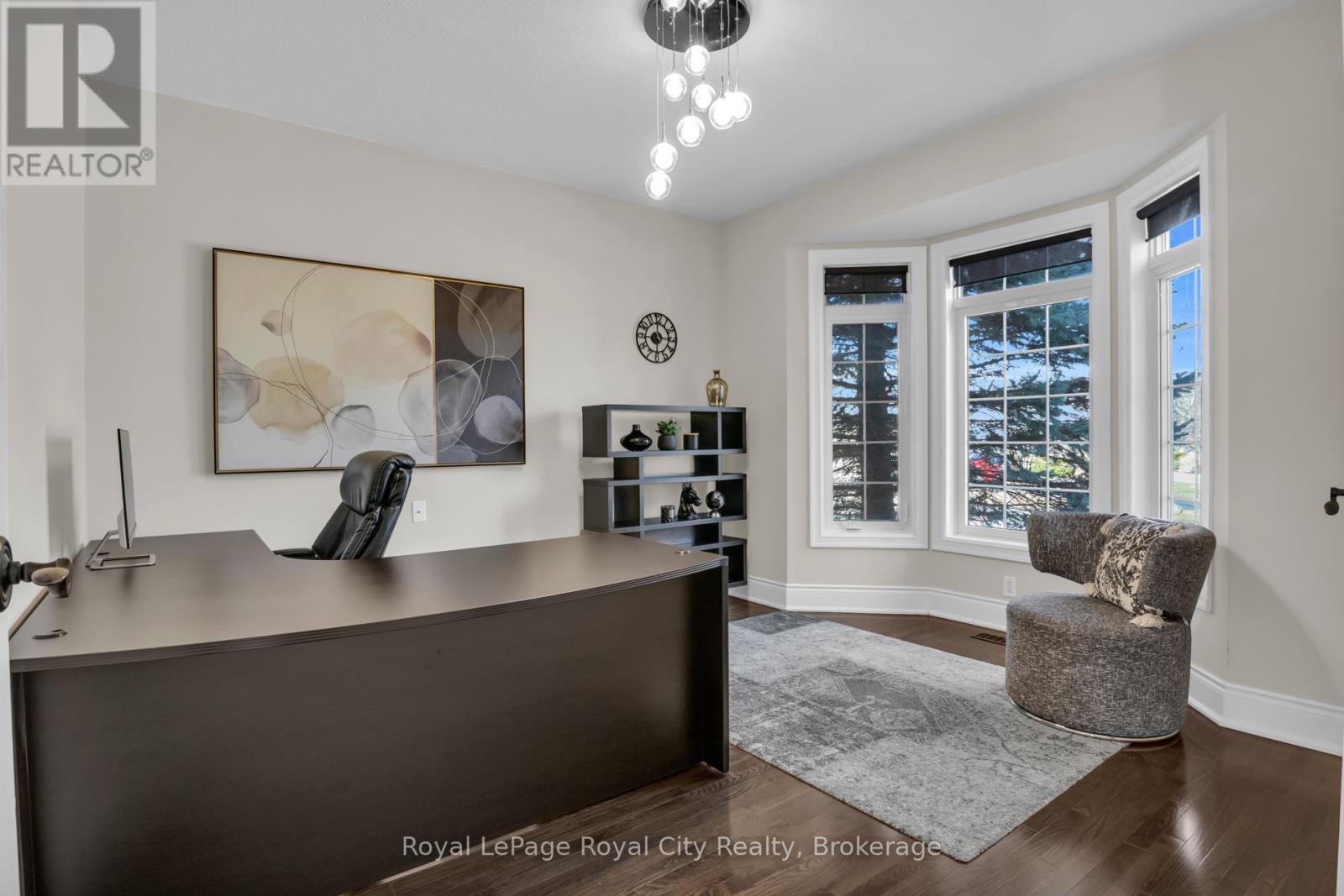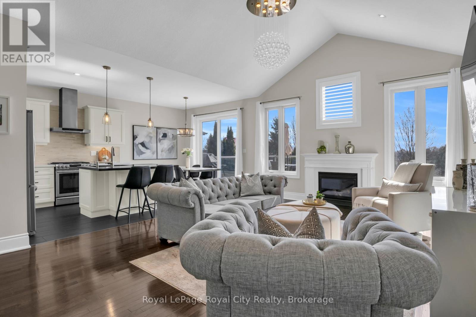 OPEN HOUSE APR 18 SATURDAY 2-4 PM. This rare, west-facing corner lot, with no rear or side neighbours, offers a lifestyle defined by light and landscape. Positioned within an exclusive enclave of only 55 homes, you will enjoy the quiet and friendly community atmosphere. While you are just a short, ten minute drive from the vibrant amenities of the south end of Guelph, your backyard serves as a personal conservation area and is a gateway to over 20 acres of shared private paradise. Residents enjoy exclusive access to winding nature trails, lush forests, tranquil private ponds, and a community putting green. The heart of this family-sized bungalow is designed to maximize the abundant natural light that pours in from every angle. The chef-inspired kitchen is a showpiece of modern design featuring premium quartz countertops and a sleek central island, all overlooking the great room that offers seamless flow for entertaining. Design elements feature exquisite light fixtures, vaulted ceilings, hardwood flooring, and California shutters. The primary suite serves as a true sanctuary, complete with a spacious walk-in closet with built-in cabinetry and a private ensuite bath. The second main floor bedroom, serving as an office if so desired, has a dreamy bay window for morning sun. The walk out basement is a stunning extension of the home, offering three generous bedrooms and a large family room that overlook mature maple trees and backyard gardens. These flexible spaces are perfect for a growing or multi-generational family, home office, or a creative studio. After a long day, retreat to the spa-inspired, newly renovated washroom, to soak in the deep Roman tub or refresh under the rainfall shower. Located within a highly sought after school district, this home perfectly balances rural tranquility with urban convenience. Experience the quiet luxury of nature without ever leaving the comfort of your own backyard. (id:64974)