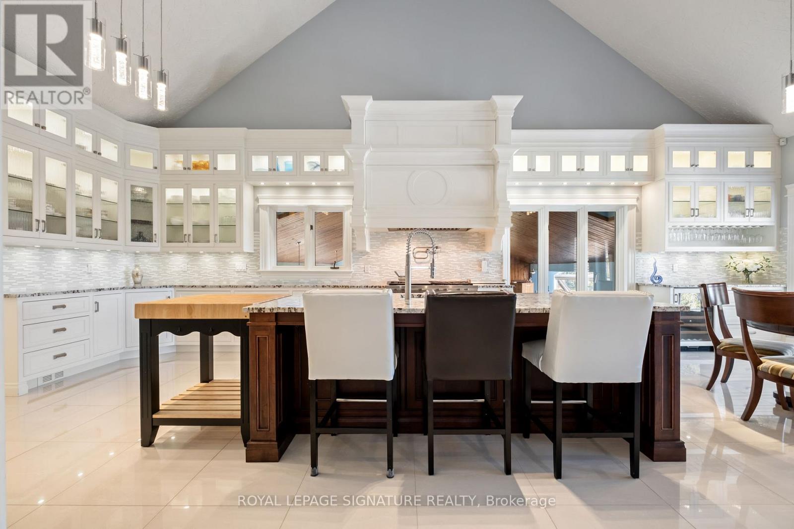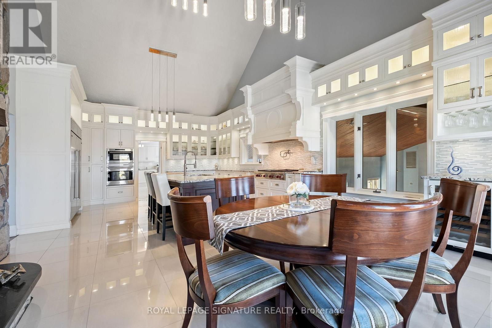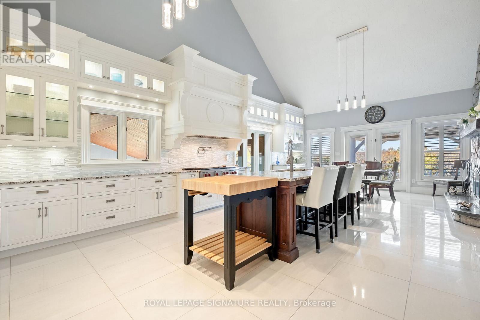 Set on nearly 2.5 acres of beautifully landscaped waterfront grounds, this fully renovated lakeside estate offers over 9,200 sq. ft. of luxurious living space. Thoughtfully designed for both entertaining and everyday living, the home features 6 bedrooms and 6 bathrooms, including a private guest, nanny, or in-law suite. The stunning 19' x 32' chef-inspired kitchen opens to expansive living and dining areas, all capturing breathtaking lake views. A resort-style indoor pool wing provides year-round enjoyment with a 16' x 32' concrete saltwater pool, Dectron Dry-O-Tron dehumidification system, cedar ceiling, textured concrete walls, custom lighting, hot tub, and sauna. Exceptional craftsmanship is evident throughout, with 18'-21' vaulted ceilings on the main level, 10'-11' ceilings on the lower walkout, custom plaster crown mouldings, architrave-trimmed millwork, a Mediterranean-style metal roof, and two waterproof decks overlooking the lake. The property offers a 3-car attached garage plus an oversized 2-car detached garage, ideal for vehicles, boats, or recreational equipment. Energy efficiency and reliability are delivered through two ground-source heat pumps with 14 drilled wells, a 35 kW whole-home standby generator, propane backup pool heater, multi-zone forced-air heating and cooling, and in-floor radiant heating. Enjoy four-season waterfront living with boating, fishing, waterskiing, snowmobiling, and nature trails at your doorstep. Ideally located minutes to Fergus, Elora, and Guelph, this is a rare offering combining refined luxury with serene lakeside living. See attached feature sheet for full details. (id:64974)