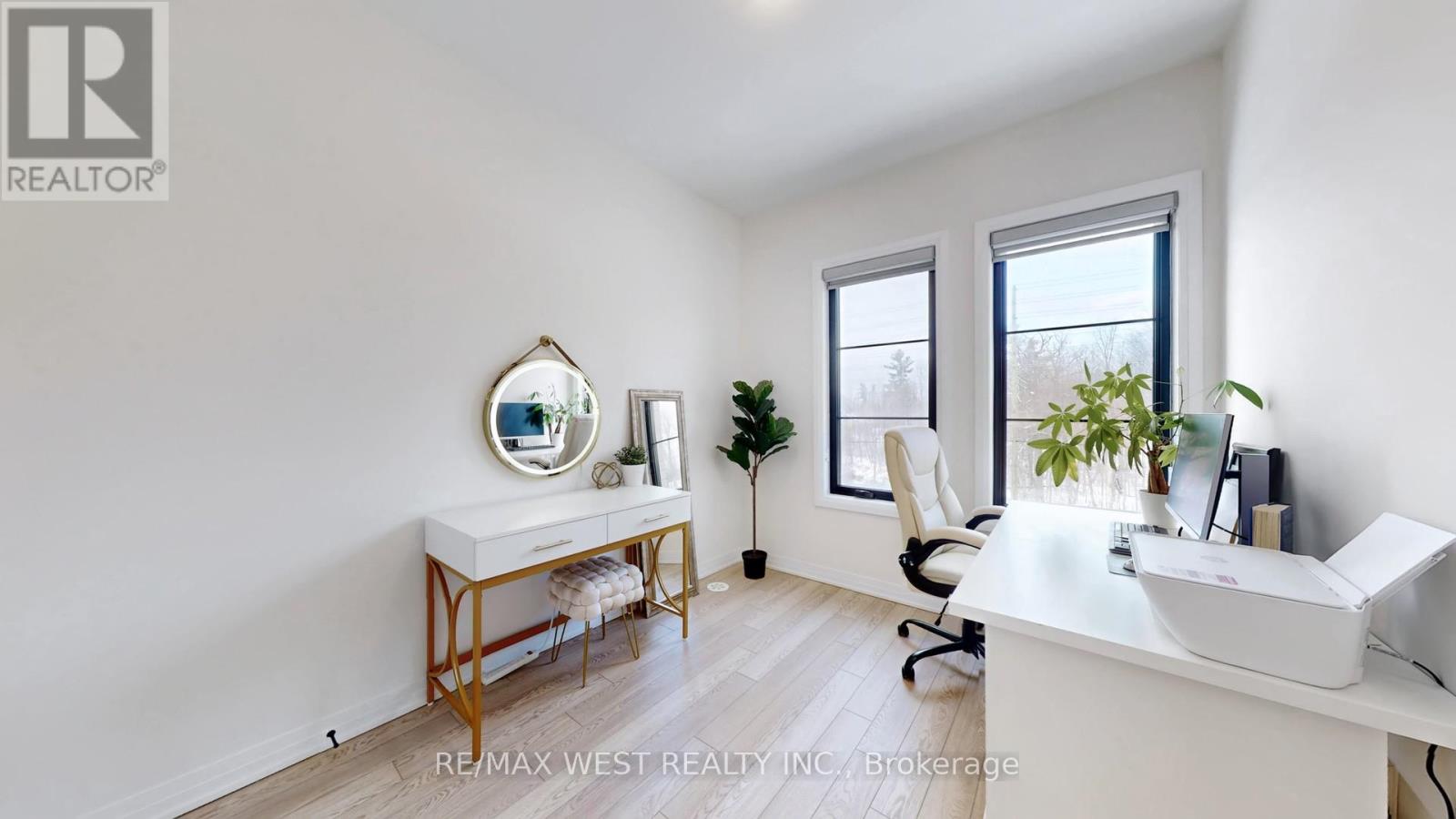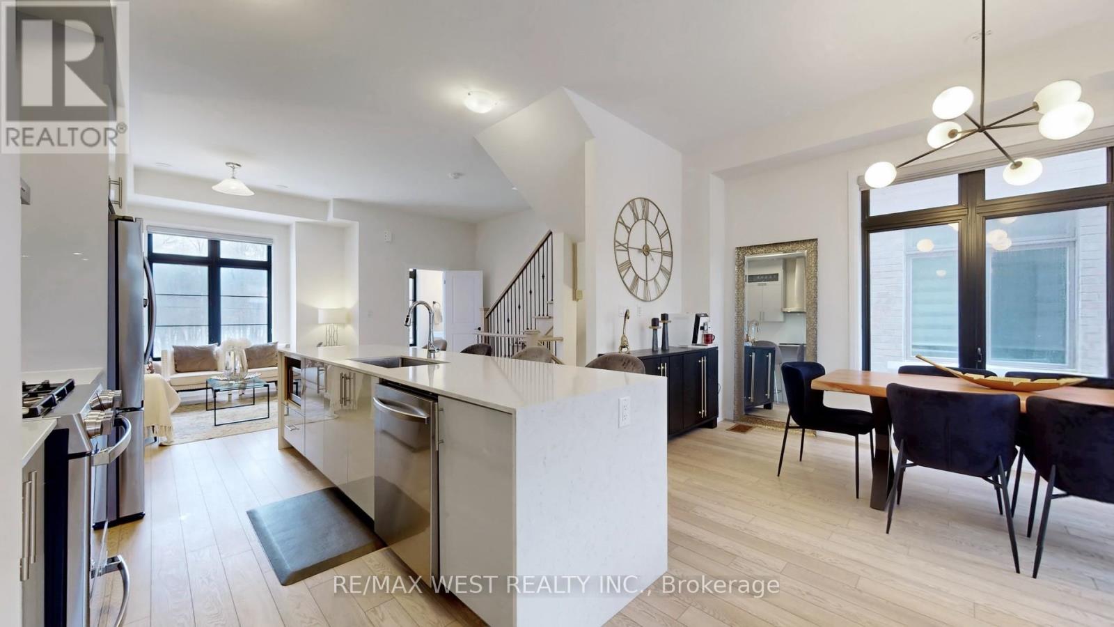 Welcome to this stunning executive end-unit townhouse in the highly sought-after Vellore Village community of Vaughan-where style, space, and convenience come together seamlessly. Boasting 4 spacious bedrooms and 3.5 bathrooms, this modern residence offers a thoughtfully designed layout perfect for growing families and professionals alike. The heart of the home is the chef-inspired kitchen, complete with sleek stainless steel appliances, a generous centre island, and ample cabinetry-ideal for entertaining or everyday living. The ground floor features a private bedroom and 3-piece bath, making it perfect for guests, in-laws, or a dedicated home office. You'll also enjoy direct access to the attached two-car garage and basement for added functionality and storage. Upstairs, the primary suite is a true retreat, showcasing its own private balcony, a walk-in closet, and a beautifully appointed ensuite bath. Bright, open-concept living spaces and the added privacy of an end-unit location enhance the home's appeal. Situated in a well-connected, family-friendly neighborhood close to parks, scenic trails, top-rated schools, transit, shopping, and convenient access to Highways 400, 27, and 427, this home offers exceptional lifestyle convenience. A rare opportunity in one of Vaughan's most desirable communities-this is one you won't want to miss. (id:64974)
