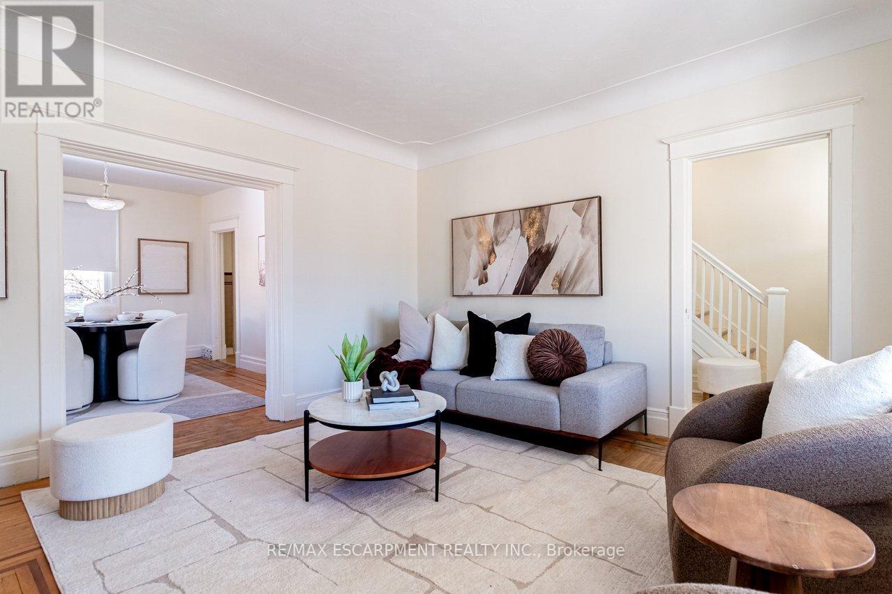 Perfect East End Starter Home! This charming 3-bedroom, 1-bath single-family home is located in a highly sought-after, family-friendly East End neighbourhood. Ideal opportunity for first-time buyers, handyman or investors looking to. add their personal touch. The main floor has hardwood flooring throughout with a spacious & sun-filled living room, a formal dining area perfect for hosting, & a functionally spacious eat-in kitchen. Upstairs, you'll find three bedrooms & a 4 pc bath. From the back deck is a large yard with a 16' x 10' single car garage that has room to be extended. Location is everything! You are just minutes from: Gage park, walking trails & green spaces. Public transit for an easy commute. Shopping centers & all amenities. Ottawa street textile centre, cafes, restaurants, boutiques, antique shops. With a solid layout & fantastic bones, this 1 1/2 storey home is ready for your creative vision. Updated windows. Carrier furnace & A/C in 2010. Don't miss your chance to purchase such an affordable home in this exceptional neighbourhood! (id:64974)