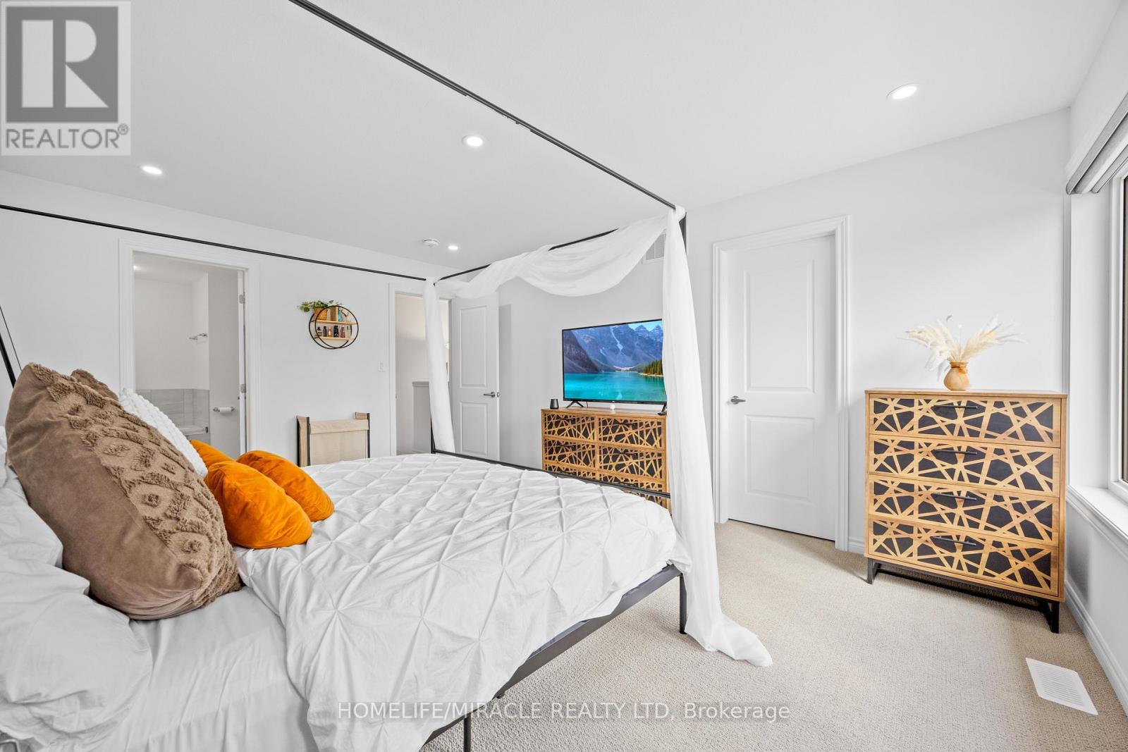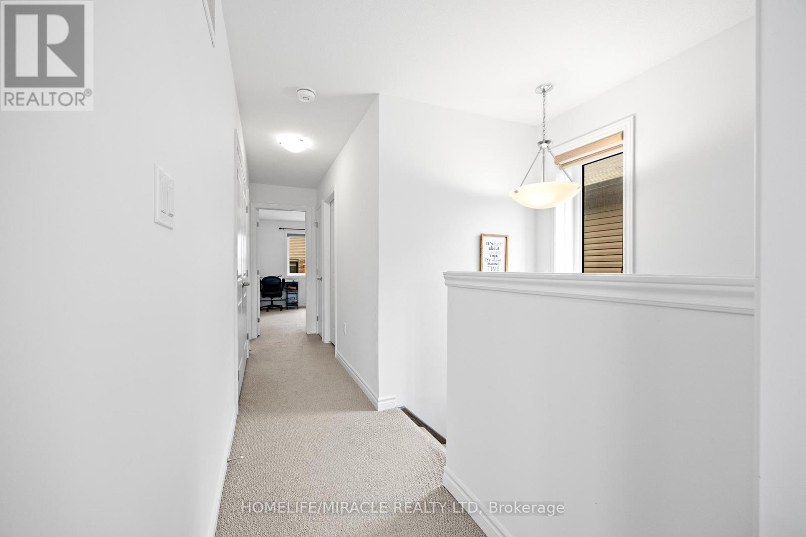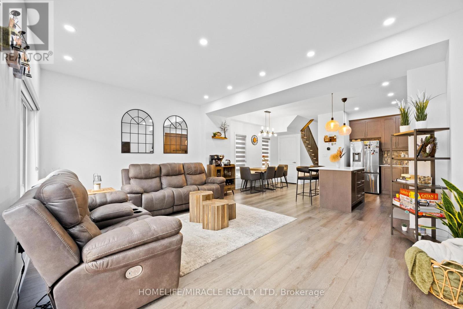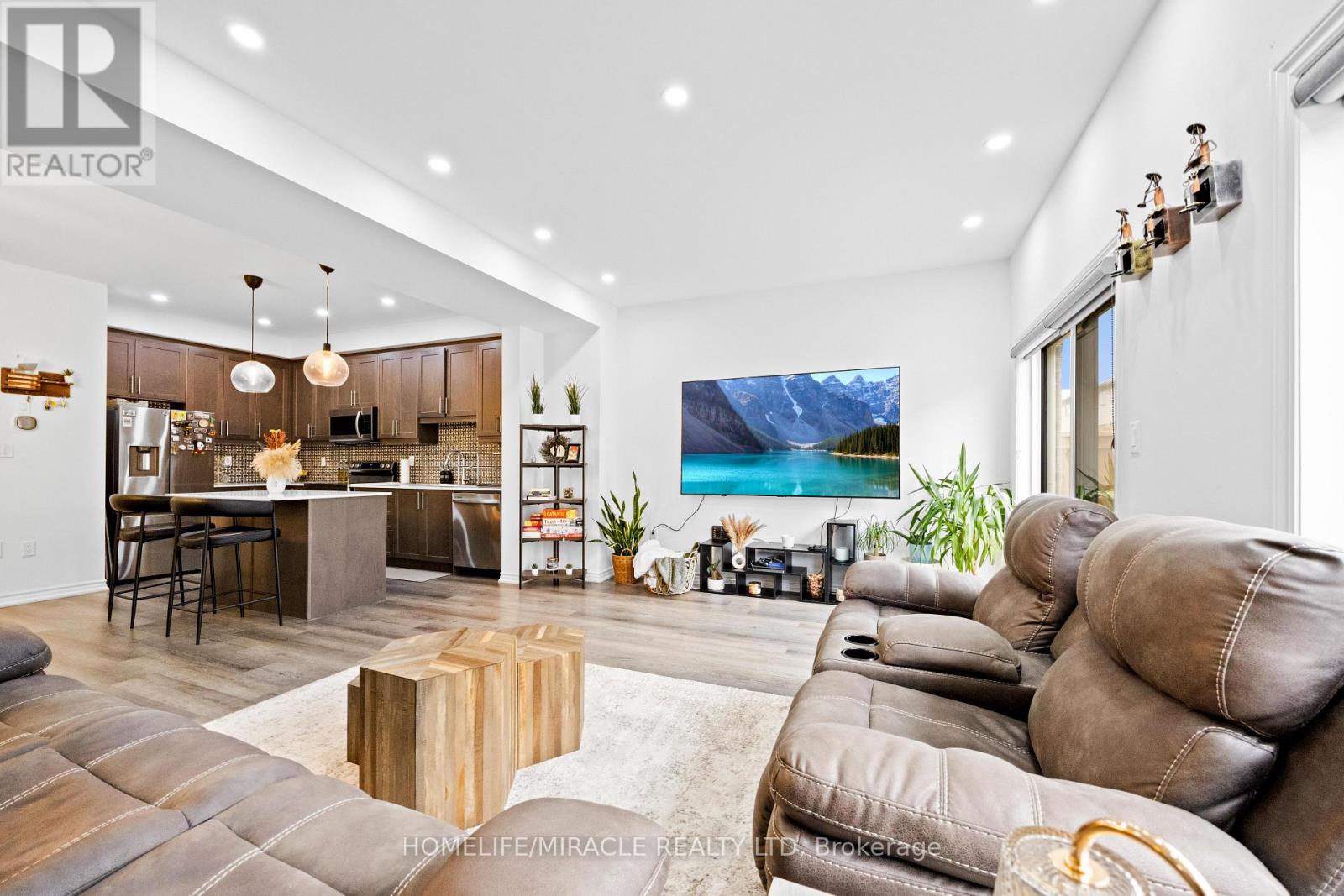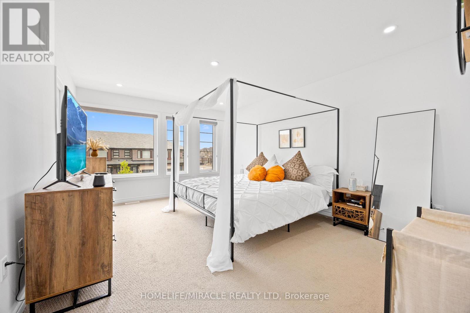 -Main Awesome End-unit Freehold Townhouse (feels like semi detached), Move In Ready! Corner Enhanced End Unit 1709 Sq Feet 2 Storey Freehold Townhouse Just Like Semi, In Sought Area Of brant West! 3 Bedrooms, 2.5Baths.Bright/Spacious Have Larger Windows For Natural Light Floor 9Ft Ceiling, Gorgeous Kitchen With Bigger Living & Dining Area, Quartz Counter, Deep Sinks. Must-See, 3 Years Old, Located in West Brantford community features a modern open-concept design with 9-foot smooth ceilings and laminate flooring throughout the main floor. The upgraded kitchen boasts quartz countertops, a stylish undermount sink, extended-height upper cabinets, a kitchen island, and a microwave space saver provision, along with brand-new stainless steel appliances, including a fridge, stove, and dishwasher. Beautiful entry leads to a large foyer, opening into a bright living room with a walkout to the backyard, filled with natural light from oversized windows, making it perfect for family gatherings or entertaining friends. The main floor also includes pot lights to enhance the space with warm, modern lighting. Upstairs, the primary bedroom offers a walk-in closet and a luxurious ensuite full washroom, while the second bedroom also includes a walk-in closet. A convenient second-floor laundry room comes equipped with a brand-new white front-loading washer and dryer. Located in a family-friendly neighborhood, this home is just minutes from top-rated schools, a community center, shopping, scenic trails, and major highways, with visitor parking and a kids' park conveniently situated in front of the house. Don't miss this incredible opportunity schedule a showing today! Furnace, A/C and Tankless hot water owned. (id:64974)