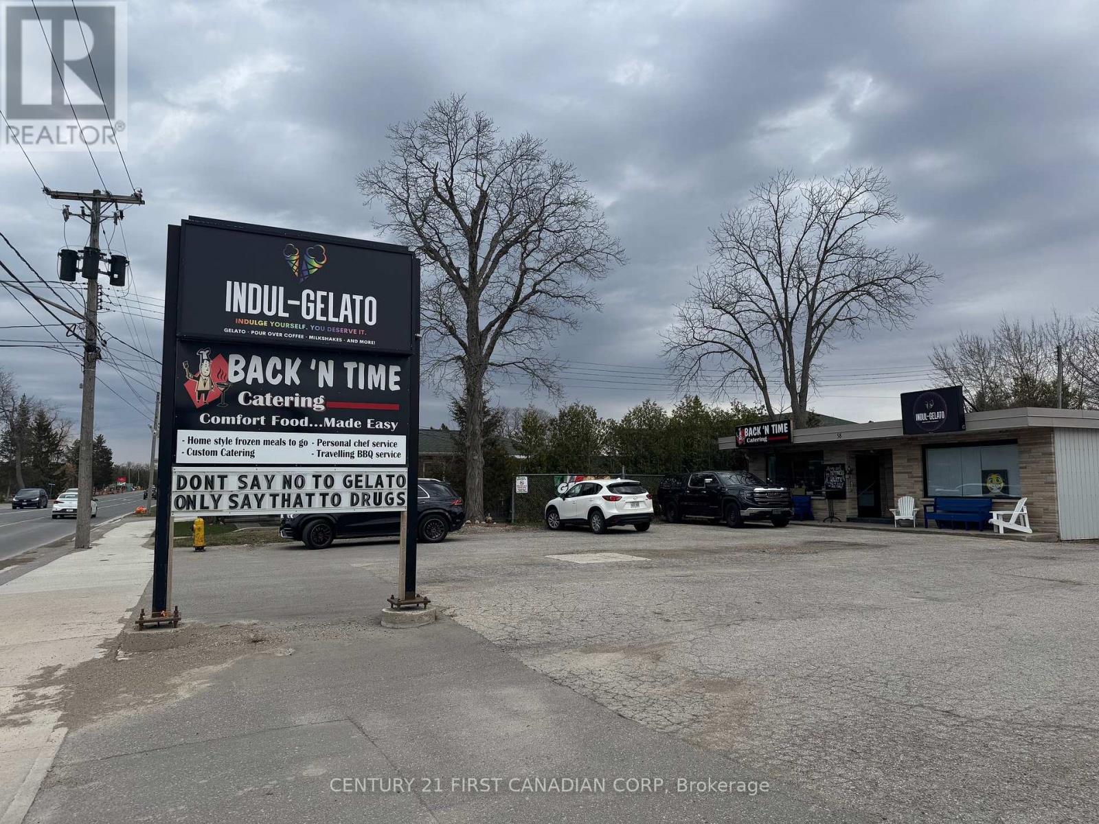 Excellent opportunity with this prime commercial property located in Grand Bend on the busy Hwy 21. The lot measures approx 60' x 240' deep and currently has a 1450 sq ft building on it - divided into two separate 725 sq ft units. There is a nice-sized Pylon sign in place with excellent Hwy exposure. Both sides are currently tenanted with the lease expiring in Dec 2025. However, the opportunity also lies within the potential (further) development of this excellent location. Friendly C-2 Commercial zoning allows many uses - ask listing agent for details. (id:64974)