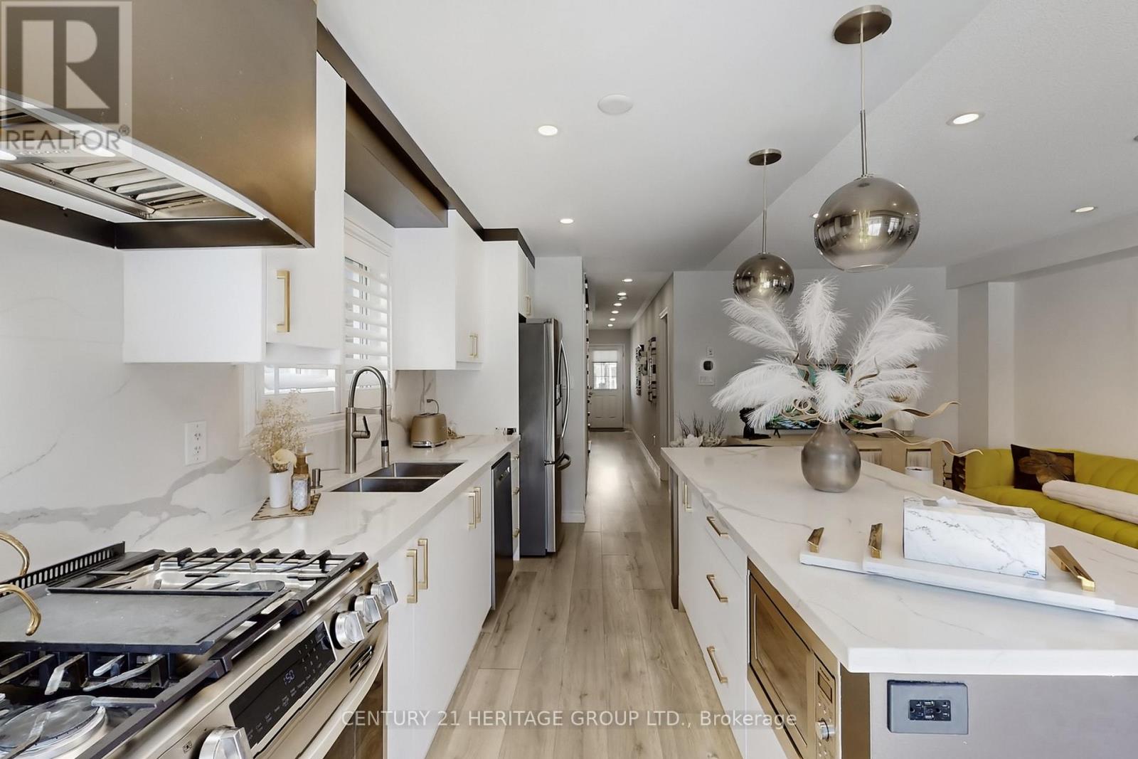 Stunning 3-Bedroom Semi-Detached Home in Highly Sought-After Summerlyn Village!This beautifully upgraded home offers a bright, open-concept main floor designed for modern living and effortless entertaining. The stylish living and dining areas feature laminate flooring throughout, pot lights, and an elegant oak staircase. The custom chef's kitchen is a true showstopper, boasting quartz countertops, an oversized centre island with seating, upgraded stainless steel appliances, a contemporary hood fan, elegant cabinetry and breakfast area overlooking the yard. The professionally updated powder room showcases designer finishes with a sleek vanity and contemporary accents.The spacious primary bedroom features two generous his-and-hers walk-in closets and a 4-piece ensuite bath.Additional bedrooms are well-sized and filled with natural light. Convenient main floor laundry with direct garage access and a fully fenced backyard complete with a BBQ gas line perfect for summer entertaining. Professionally finished one-bedroom basement Apt features an open-concept layout with its own kitchen, laminate flooring, pot lights, sleek 3-piece bathroom ideal for extended family or potential rental income. Walking distance to public schools, parks, scenic trails, and the BWG Leisure Centre. Just minutes to shopping, restaurants, and Hwy 400 for easy commuting. (id:64974)