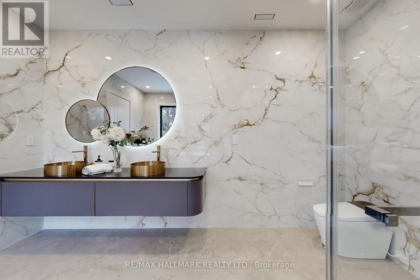 Must Sell! Located In Prestigious Bayview Village, Tucked Away On A Quiet And Private Cul-De-Sac, This Custom-Built Luxury Residence Offers Exceptional And Premium Features Thru-out. This Stunning Triple Car Garage Home Features Heated Driveway And Exterior Stairs, Interior Heated Floors On All Tiled Areas For Ultimate Year-Round Comfort. Designed For Both Refined Living And Elegant Entertaining. The Home Offers Two Beautifully Appointed Kitchens: A Fully Open-Concept Main Kitchen With Built-In Top-Of-The-Line Miele Appliances Including 6 Burner w/ Griddle Gas Stove Steamer and Oven Plus An Oversized Centre Island, Perfect For Hosting Family Gatherings Or Omakase-Style Dining, As Well As A Separate Enclosed Chef's Kitchen W/ B/I Bosch Cook Top Ideal For Heavy Cooking And Catering. The Breakfast Area Walks Out To A Spacious Deck, Creating Seamless Indoor-Outdoor Living. The Primary Bedroom Features His And Her Walk-In Closets With Fully Built-In Organizers, And A Luxurious Ensuite With Heated Floors And A Standalone Soaking Tub Overlooking The Backyard-Your Private Retreat For Relaxation. Generous Bedroom Sizes All Come With Its Own Private Ensuite w/ Modern Glass Showers And Custom Closet Organizers, Offering Comfort And Privacy For Family And Guests. Heated Walk-Out Basement 10 Foot Ceilings, R/I Bar A Theatre Room, Nanny Suite, And A Home Gym, With Thoughtfully Designed Living Spaces Throughout. Zoned for highly-ranked Bayview Middle & Earl Haig Secondary schools; close to Bayview Village mall, North York General Hospital, and only minutes to 401 and Sheppard subway station. Walking distance to parks, ravines, shops, transit, library, coffee, amenities, and much more. Exceptional Value Among Bayview Village Custom Homes. Check 3D Virtual Tour. (id:64974)