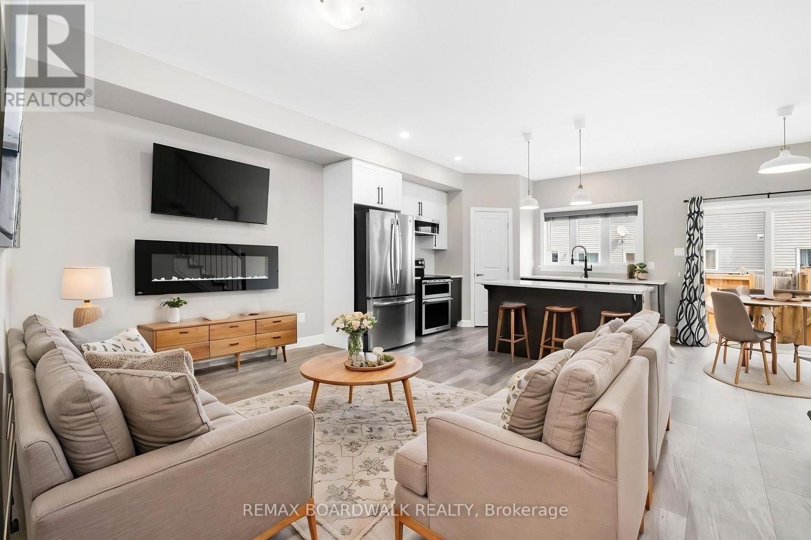 Welcome Home to Arnprior! Built in 2021 by McEwan Homes, this stunning townhouse features 3 bedrooms, 2.5 bathrooms, and an attached garage with inside entry. The home has luxury vinyl flooring throughout, a fully finished basement, interlock pavers and upgraded baseboards. The kitchen is designed to impress, with quartz countertops, oversized island and soft close drawers, stainless steel appliances, a tiled backsplash, and a walk-in pantry! The spacious primary bedroom includes his and hers closets and stylish access to the bathroom for the ensuite feel. The finished lower level provides a generous recreation space and a large 3 piece bathroom. The utility room has ample storage and room for the washer and dryer (with gas hookup). Step outside to your private backyard oasis, complete with a patio space, gas BBQ hookup, and full fencing. You can enjoy peaceful evenings there with friends and family. Located in a family friendly neighbourhood with tons of pride of ownership everywhere! This home is just minutes from schools, grocery stores, and restaurants. Ideal for those city commuters, it's just off the 417 and a quick drive into Kanata. Book with your agent today! (id:64974)