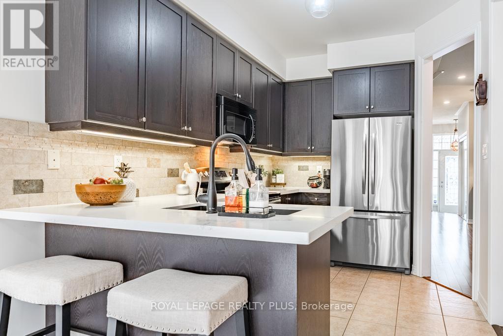 Welcome Home to Milton's Most Coveted Neighbourhood! FABULOUS CURB APPEAL AND FULLY LANDSCAPED! This Freehold END UNIT townhome is located in a family friendly pocket of Scott and is ready to move in! A Well Laid Out Home that is very bright and inviting! Features 9 ft ceilings on the main level, a Chef's Kitchen with Stainless Steel Appliances, Dark Cabinetry, and a walkout to your deck and fully fenced yard. The New Staircase (2025) leads you to the Second Level which features a Primary Suite with an Ensuite and a walk in closet, Full Bath, and Two other bedrooms that are a great size- perfect for growing family! The Lower Level is fully finished and features an open concept rec room, a wet bar, gas fireplace and a 4 pce bath. YOU HAVE TO SEE THIS HOME TO BELIEVE THE VALUE! (id:64974)