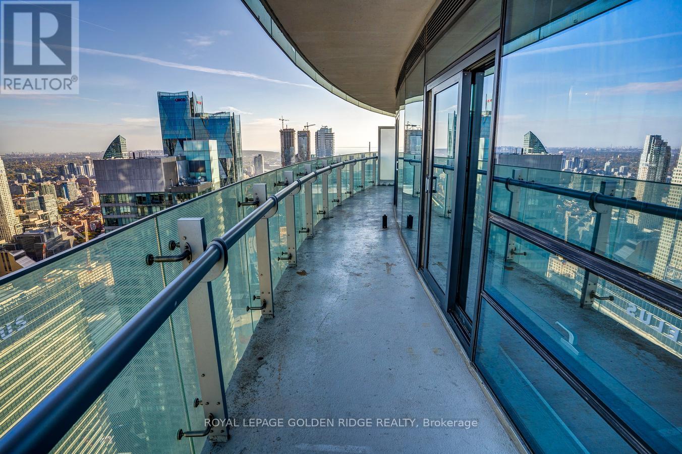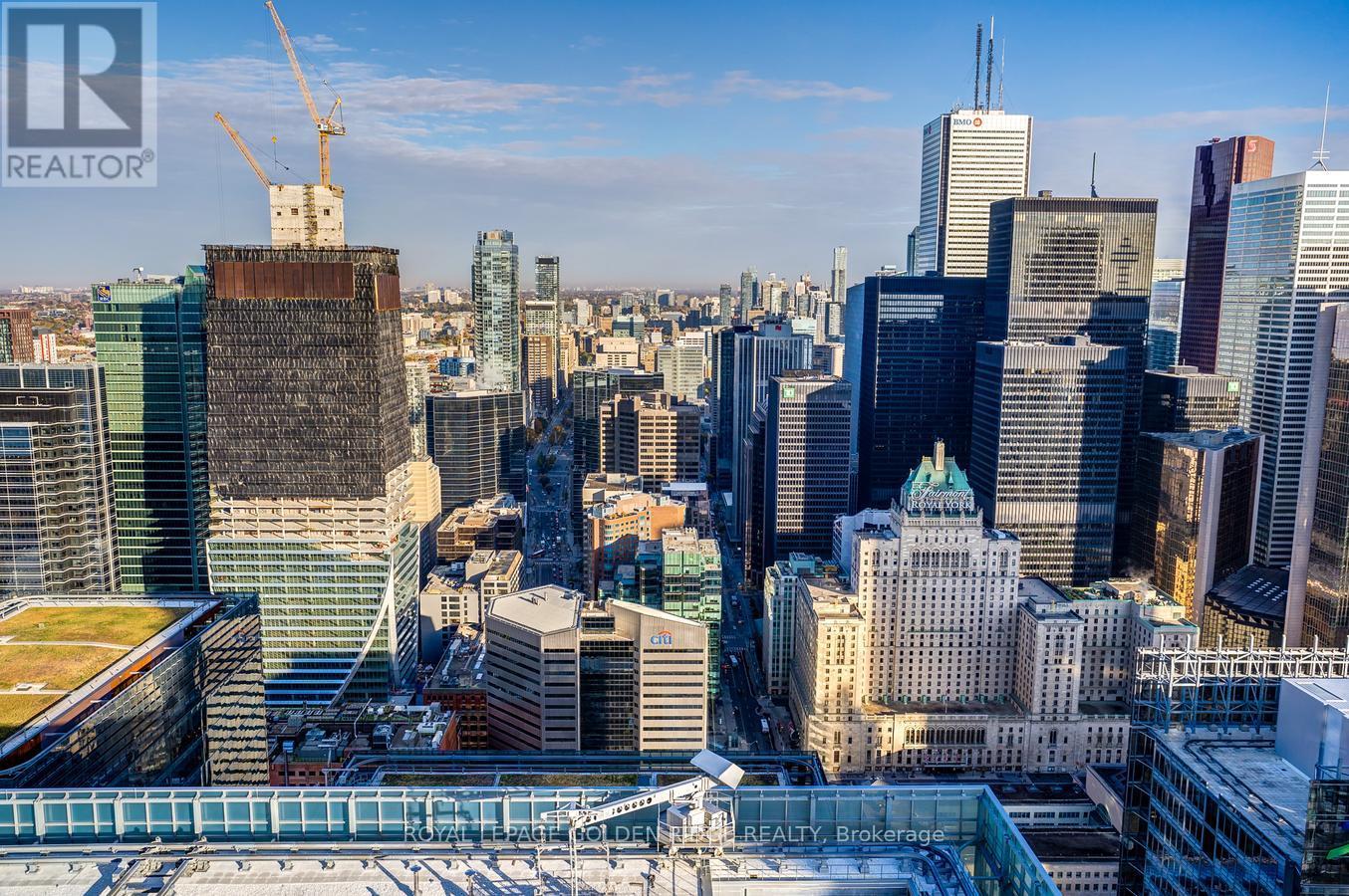 1042 Sq Feet, 9 Ft Ceilings, 3 Bed + Study, 58th Floor With Unobstructed, 270 Degree City And Lake View. Located on the 58th floor of ICE Condominiums in Toronto's South Core, enjoy unparalleled views of the lake and city skyline. Open-concept living room with a modern kitchen, featuring quartz countertops and built-in appliances. Spacious balcony, perfect for enjoying the view. Amenities: Steps from Union Station, Scotiabank Arena, and the PATH. World-class facilities: fitness centre, indoor pool, sauna, party room, and 24-hour concierge service. This is an ideal urban residence or investment opportunity. One Parking And Locker Is Included. Photos Are Taken When The Property Is Vacant. (id:64974)