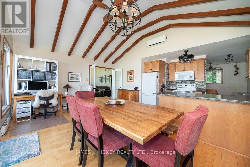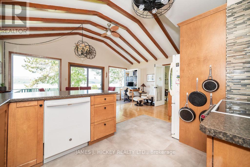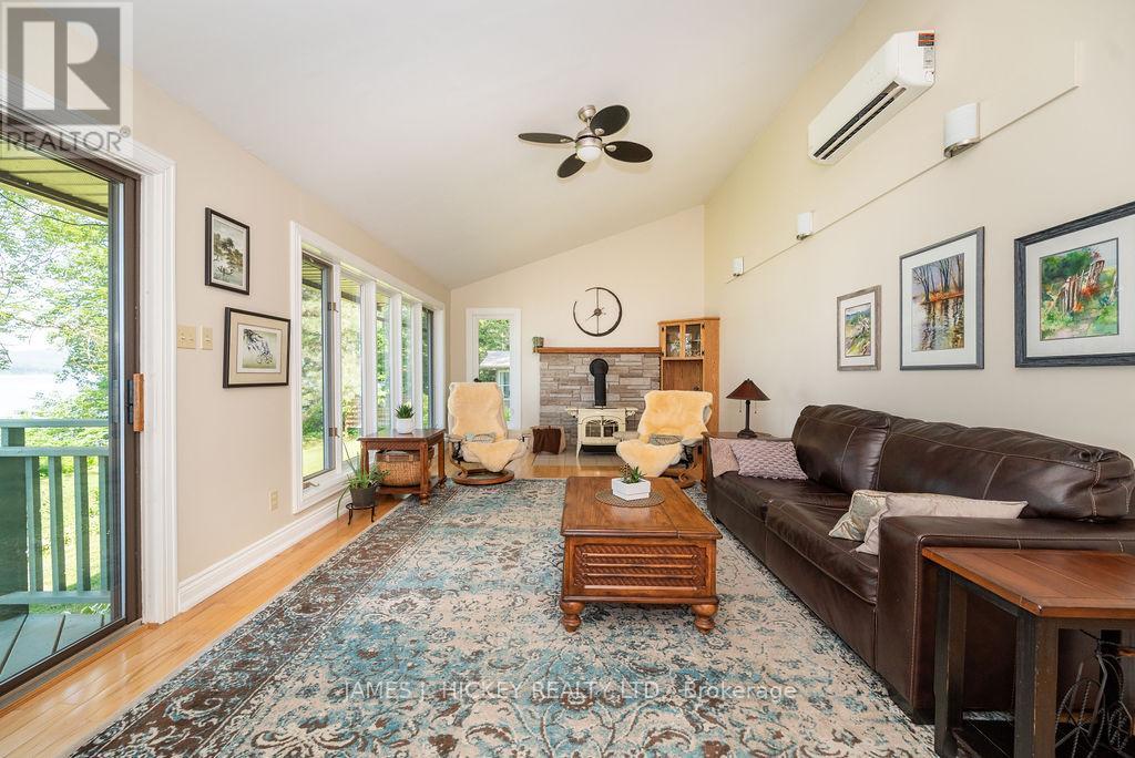 Welcome to this amazing waterfront property with 245ft frontage on the beautiful Ottawa River. This 2+1 bedroom, 2 bath home boasts vaulted ceilings with exposed beams, a custom kitchen, two recently renovated full bathrooms, and a spacious living room. Large windows and sliding glass doors on the main floor offer views that are simply breathtaking. Step outside to the deck or screen room and enjoy views of the Ottawa River and Laurentian Mountains that stretch for miles. Additional features include a finished lower level with rec room/games room, a family room, and a third bedroom. A 1-bedroom bunkie for extended family stays also overlooks the park-like grounds with of the most majestic shorelines you will ever find. Sandy beaches and your very own vantage point perched high on the river that lends itself to the name Rocky Point. Pride of ownership is evident at every turn so don't miss out on this great property! Minimum 24 hour irrevocable on all Offers. ** This is a linked property.** (id:64974)