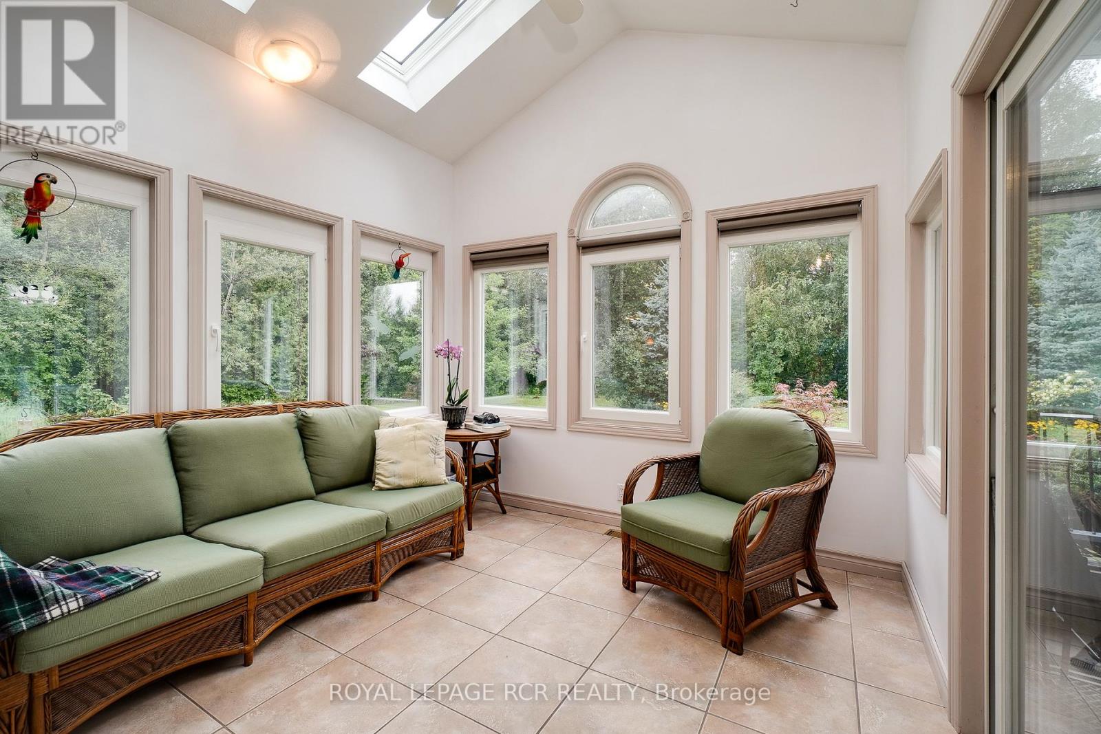 Beyond a long tree lined driveway, discover your hidden 2-acre retreat-where sunlight dances through trees, birdsong fills the air, and everyday life feels peacefully removed. Framed by mature woods, this sophisticated custom-built home offers a rare harmony of nature, comfort, and thoughtful design. A bright two-story foyer welcomes you with skylights overhead, filling the space with natural light. The custom kitchen (2010) is both stylish & functional, featuring granite countertops, abundant cabinetry, built-in appliances, induction cooktop, & a practical butler's pantry-perfect for everyday living & entertaining. A heated sunroom provides a cozy, year-round vantage point to enjoy the surrounding landscape, while the screened solarium invites peaceful summer evenings overlooking the ornamental pond with water lilies - an idyllic spot for birdwatching, spotting deer, or winter skating. Elegant principal rooms include a formal living room with an efficient Petite Godin cast iron wood stove and a formal dining room made for hosting. The spacious family room, anchored by a reclaimed brick accent wall and wood stove insert, creates a warm and inviting gathering space. Upstairs offers three bedrooms plus a flexible office/den (or potential 4th bedroom/nursery), along with a rustic loft featuring pine floors, wet bar, & wood stove - perfect as a studio, gym, or private guest retreat. The primary suite features a spa-inspired ensuite with soaker tub, glass shower, double sinks, bidet, heated floors/towel rack. Additional highlights include approx. 1,500 sq. ft. of high-ceiling lower level ready for finishing, 2 garden sheds, and ~0.5 acre enrolled in CLTIP for reduced property taxes. Geothermal heating/cooling, shingles and skylights (2019), premium European windows (~2014) ensure comfort & efficiency. In early spring, tap your own maple trees and turn the season's sap into golden syrup. Located on a paved road across from Barbour Field & less than an hour to the GTA. (id:64974)