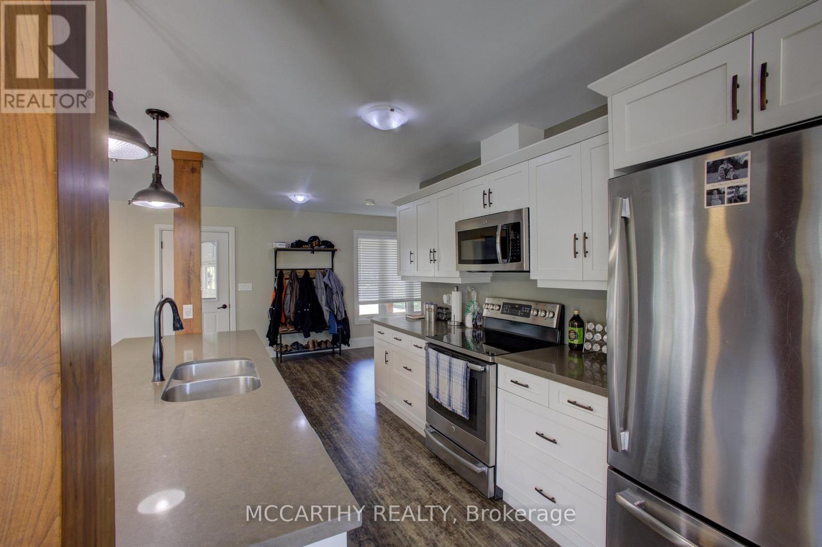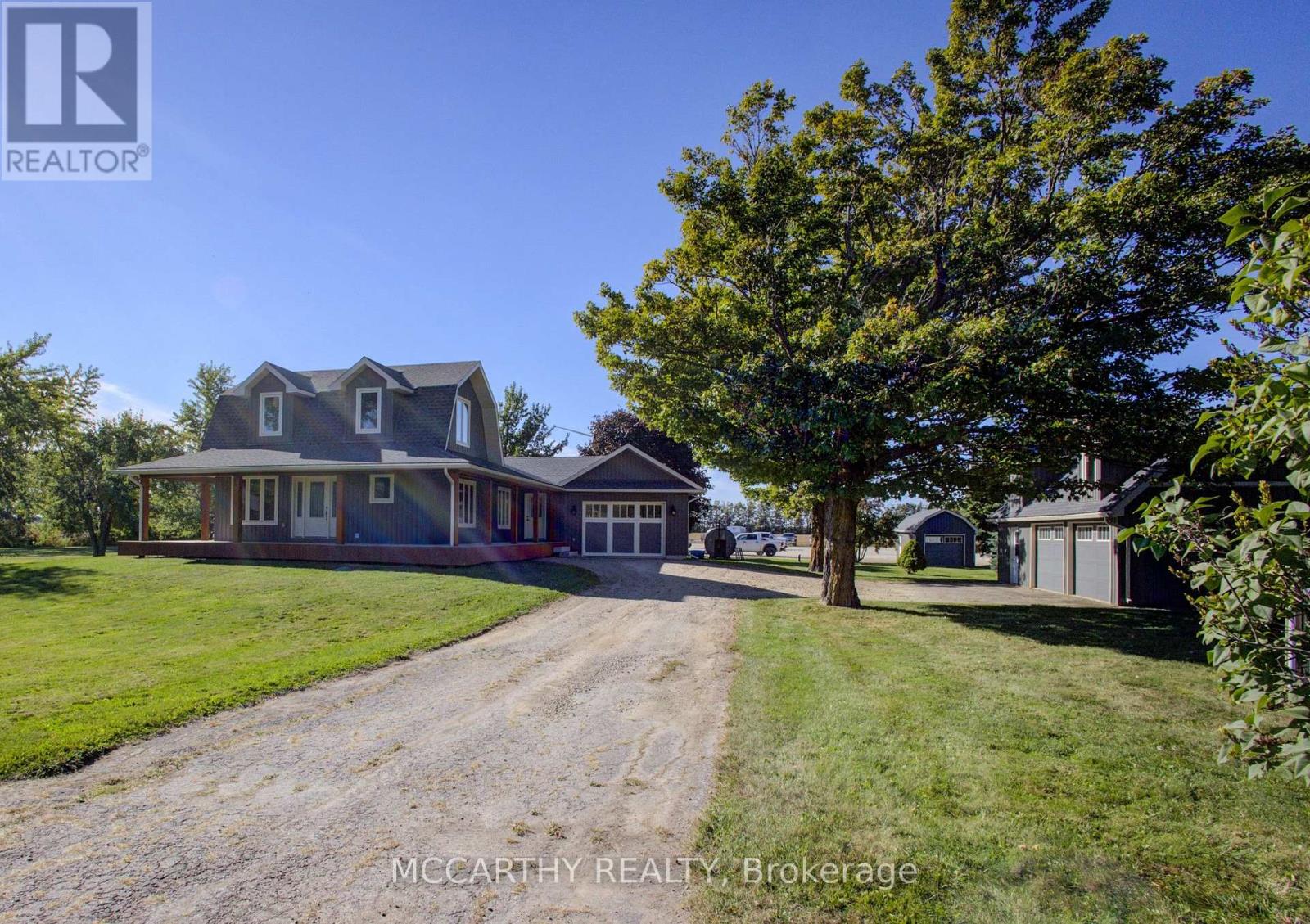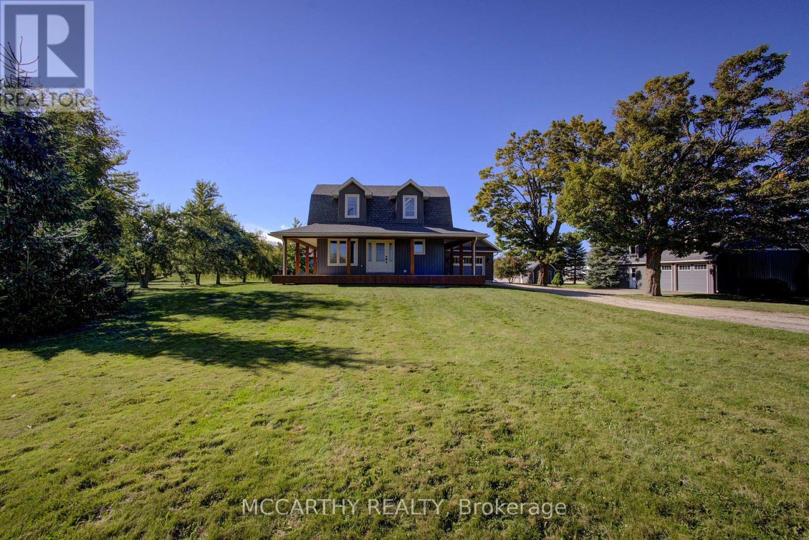 Majestic 3 Bed, 3 Bath, Country Property, 16 acres with a Large shop & office. Large parking and turnaround for large trucks, Shop has large auto roll up doors, Front finished office w Separate Hydro, 3 pc bath, heat, kitchenette, loft storage, storage, separate septic, shared well with house. 2 Driveways into property;to house and to shop. Lg lot for outside storage. Beautiful House, attached heated 1.5 car garage, second detached 2 Car Garage, finished as a gym with two garage doors, one man door with rubber floor great for workouts. 3rd Garage is detached one car garage & Garden Shed. Park like yard, Wrap around porch to watch the sunrise and sunset. Commercial industrial portion has Shop 40x60plus 20x25 ft, remote garage door, heated garage, insulated and finished Office with 3 pc bathroom, kitchenette, loft storage, storage, Contractors paradise, or Man Cave extraordinaire. Business, Investment, Homestead opportunity Two driveways, Large gravel parking area, Two Septic systems, 2 hydro services, One drilled well. Unique set up, to work and live at home. Lg Open concept Living, Dining Kitchen, Lg windows overlooks the back yard, Kitchen has large center island with breakfast bar, Creates a great family gathering space. Main Floor laundry, Primary Bed with access to outside and 2nd bedroom and 2 baths are 4pc One is large Primary Ensuite, plus convenient access 2nd Bedroom on Main Floor. 3rd Bedroom on second floor, is extra large can be used a extra living space has a 2 pc ensuite. Beautiful home, Well finished and Modern, has a wrap around porch 3 sides, with great curb appeal. Modern and all updated with new windows, doors, furnace, air cond, flooring, kitchen, well casing, pots lights and new lighting, Roof updated. Lower level is dry and ready for storage. Extra wide wooden staircase to second floor. Close to Shelburne on paved County Rd 17 easy access for commuting. (id:64974)