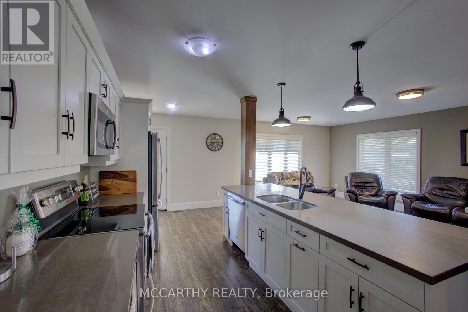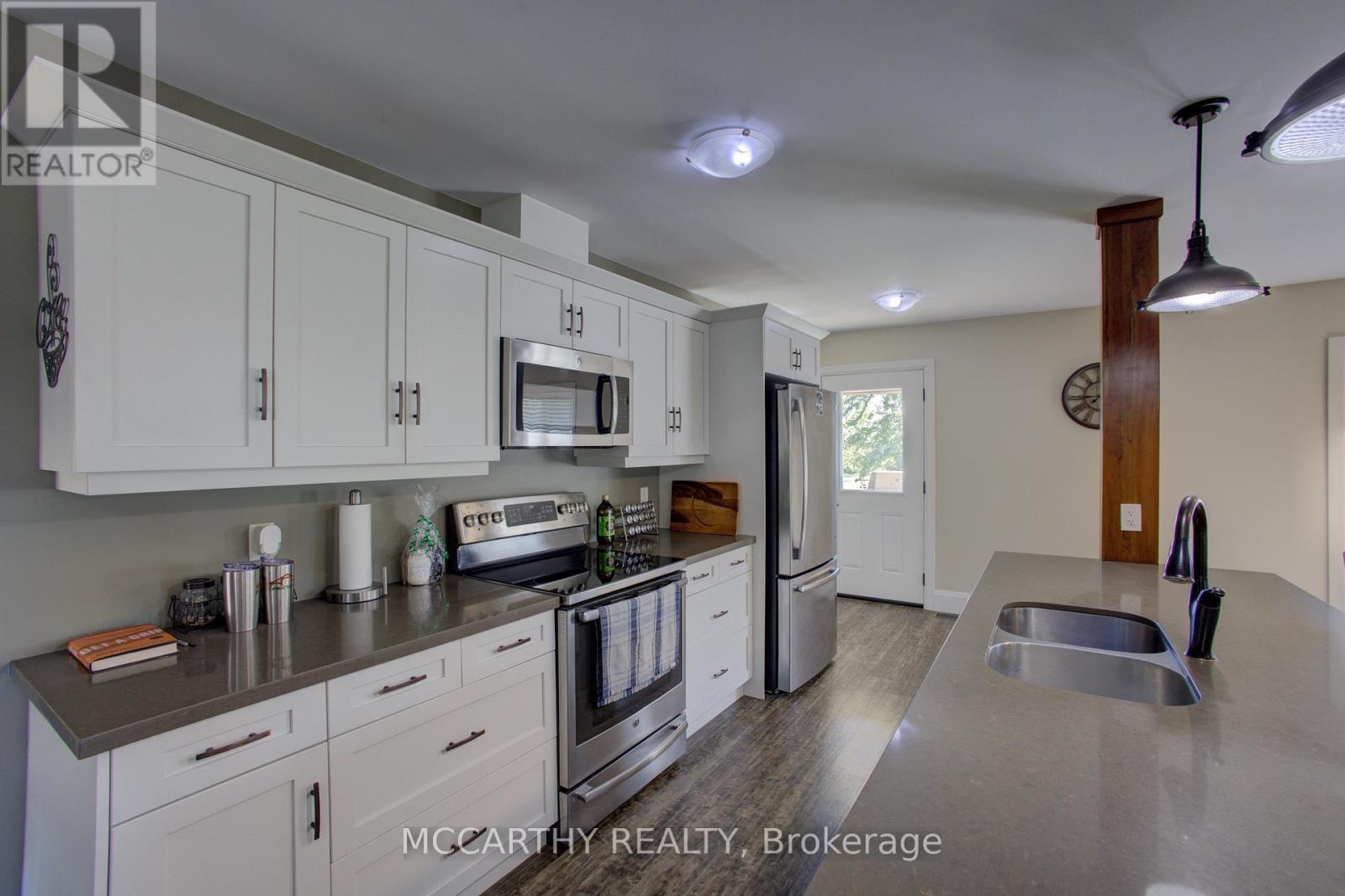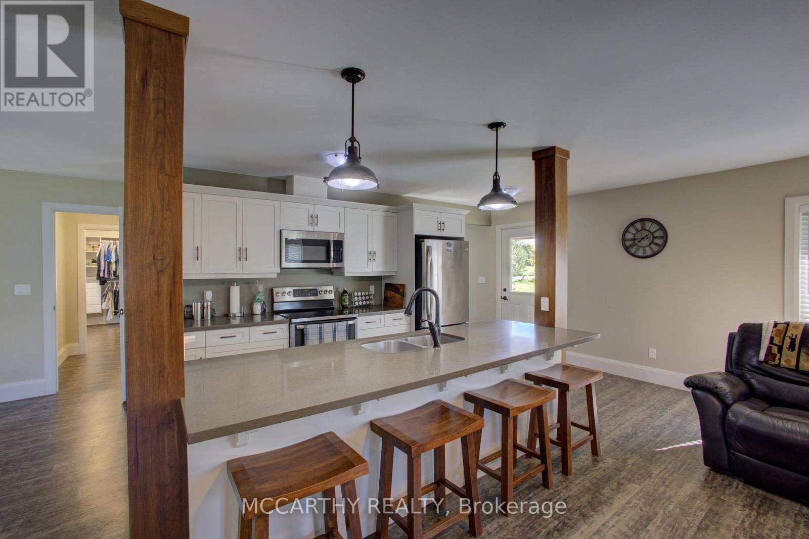 Majestic 3 Bed, 3 Bath, Country Property, 16 acres with a Large shop & office. Large parking and turnaround for large trucks, Shop has large auto roll up doors, Front finished office w Separate Hydro, 3 pc bath, heat, kitchenette, loft storage, storage, separate septic, shared well with house. 2 Driveways into property;to house and to shop. Lg lot for outside storage. Beautiful House, attached heated 1.5 car garage, second detached 2 Car Garage, finished as a gym with two garage doors, one man door with rubber floor great for workouts. 3rd Garage is detached one car garage & Garden Shed. Park like yard, Wrap around porch to watch the sunrise and sunset. Commercial industrial portion has Shop 40x60plus 20x25 ft, remote garage door, heated garage, insulated and finished Office with 3 pc bathroom, kitchenette, loft storage, storage, Contractors paradise, or Man Cave extraordinaire. Business, Investment, Homestead opportunity Two driveways, Large gravel parking area, Two Septic systems, 2 hydro services, One drilled well. Unique set up, to work and live at home. Lg Open concept Living, Dining Kitchen, Lg windows overlooks the back yard, Kitchen has large center island with breakfast bar, Creates a great family gathering space. Main Floor laundry, Primary Bed with access to outside and 2nd bedroom and 2 baths are 4pc One is large Primary Ensuite, plus convenient access 2nd Bedroom on Main Floor. 3rd Bedroom on second floor, is extra large can be used a extra living space has a 2 pc ensuite. Beautiful home, Well finished and Modern, has a wrap around porch 3 sides, with great curb appeal. Modern and all updated with new windows, doors, furnace, air cond, flooring, kitchen, well casing, pots lights and new lighting, Roof updated. Lower level is dry and ready for storage. Extra wide wooden staircase to second floor. Close to Shelburne on paved County Rd 17 easy access for commuting. (id:64974)