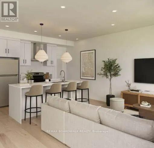 Introducing 'The Harper' - an exquisite 3-storey back-to-back townhome debuting for the first time in the highly desirable Chapel Hill community -The Commons - by Glenview Homes! Whether you're a First-Time Buyer seeking a low-maintenance entry into homeownership or an Investor looking for a premium, high-demand rental property, The Harper is a sought-after choice. With 1191sqft this home has been brilliantly designed to maximize space, style, and everyday comfort. The entry level welcomes you with a covered porch, bright foyer, and convenient garage access. The open-concept main floor centers around a stunning kitchen featuring a quartz island and a full suite of stainless steel appliances. Seamlessly flow into the bright great room and dining area which opens to a private balcony perfect for morning coffee. Convenient powder room completes this level. The upper level hosts the spacious primary bedroom with a generous walk-in closet, a comfortable second bedroom, and a modern 4-piece main bathroom also featuring quartz counters. Plus, enjoy the convenience of upper-level laundry! Coming full of upgrades like smooth ceilings throughout, elegant composite wood flooring on the entry and main levels, and contemporary pot lights that illuminate the space. Customize your layout and finishes by acting now to take advantage of a $2,500 Design Studio Bonus! The Commons is an amenity-rich community offering the perfect blend of convenience and quality of life. Enjoy local shops, fantastic restaurants, parks, and recreation facilities right outside your door. All this and some of the city's best schools. Best of all commuting is a breeze with direct bus route access to Downtown Ottawa and quick access to the city's core. Rendering of the park, interiors and elevations is an artist's concept and is for illustrative purposes only. Actual features, landscaping, and layouts may vary. E&OE (id:64974)