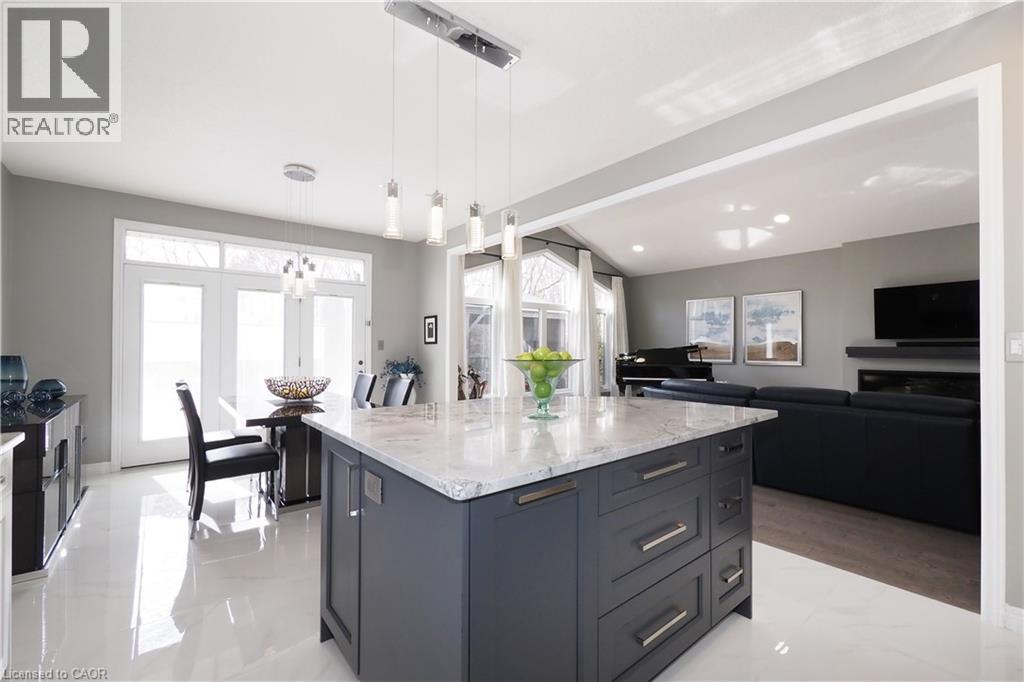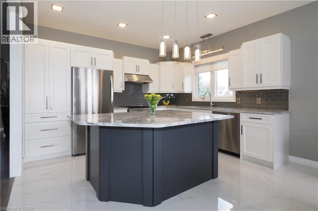 OPEN HOUSE THIS SATURDAY(APRIL 11TH)1-3 PM! Tucked into one of Woodstock’s desirable north-end neighbourhoods, this is more than just a property—it’s a home that has been beautifully cared for and extensively updated from top to bottom. Built by Heritage Homes, this stunning bungalow offers quality construction, thoughtful upgrades, and a layout that truly works for everyday living. The main floor is bright and inviting, featuring a soaring cathedral ceiling and large windows in the great room that flood the space with natural light. The updated kitchen offers granite countertops, newer cabinetry (2023) and flooring (2020), and flows seamlessly into the living and dining areas. Hardwood flooring on the main floor (2021), complemented by a renovated ensuite (2018)with heated floor and a no ledge shower, updated main bath with granite vanity and flooring (2020), and main floor laundry with quartz countertop (2020). Additional upgrades include updated stair railings (2021) and a great room fireplace and mantle (2024). With two bedrooms on the main level and two additional bedrooms in the fully finished basement, along with three full bathrooms, there is plenty of space for family or guests. The lower level features a beautiful gas fireplace in the spacious rec room and new carpet (2021), an added bedroom and workshop (2021), updated bathroom with quartz vanity (2024), custom built-in bookshelf (2025) Outside, enjoy a composite deck with gazebo (2023), stone patio (2024), stone walkway (2025), 6-zone irrigation system (2023), and year-round exterior lighting (2023), all backing onto green space. Meticulously maintained and move-in ready. (id:64974)
