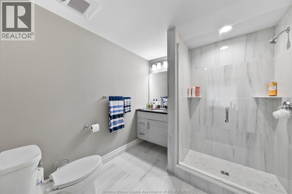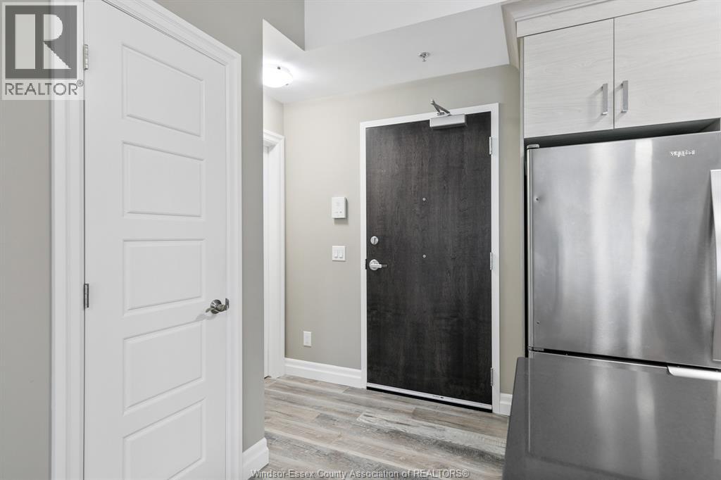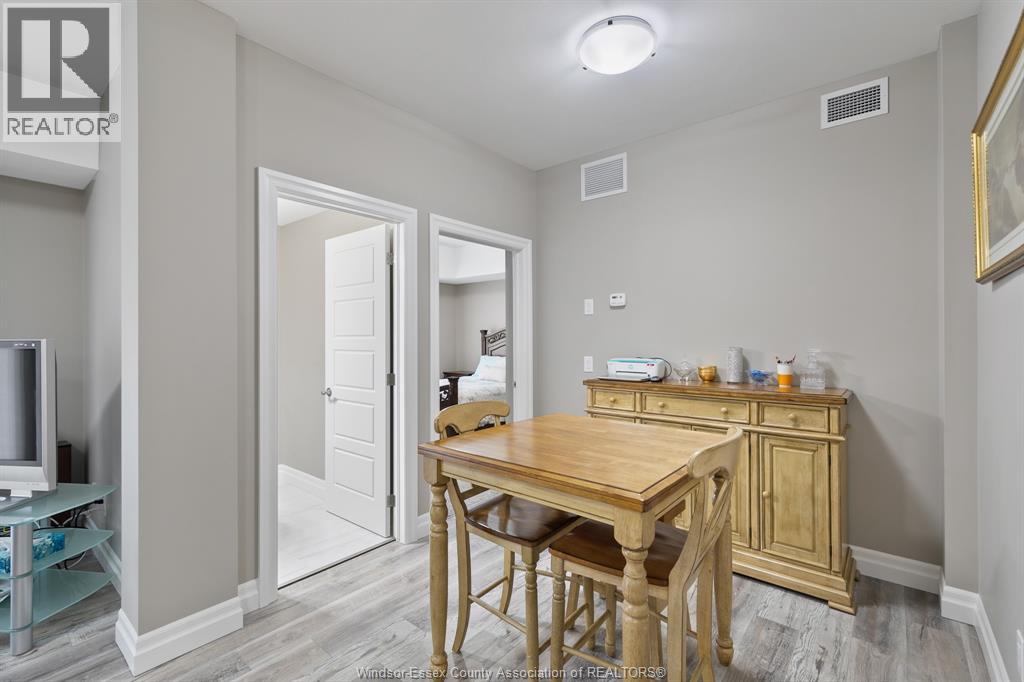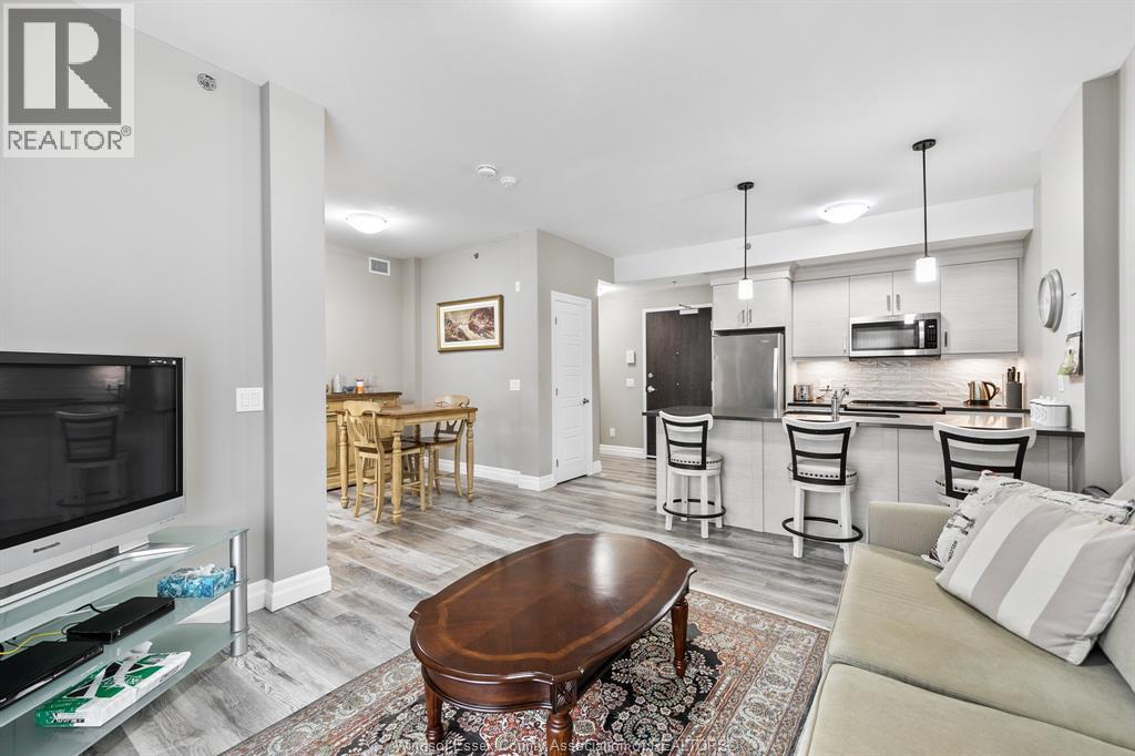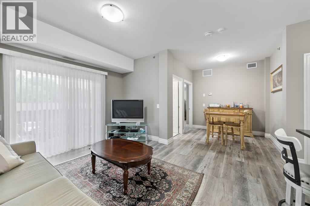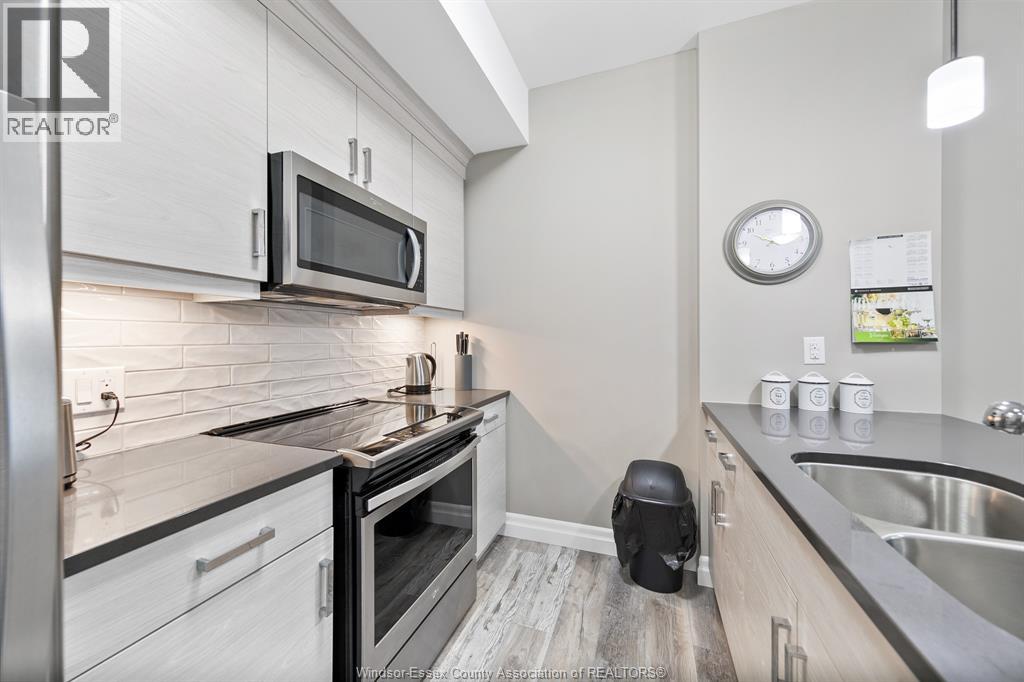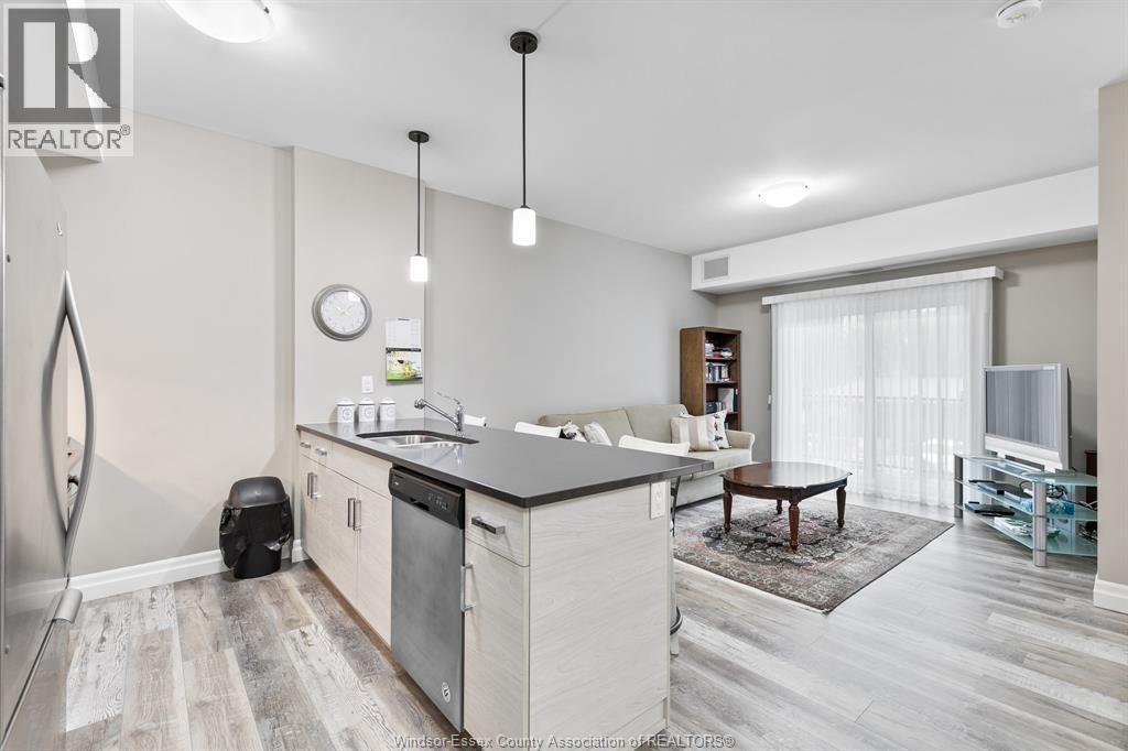 Welcome to condo living at its best, Oakdale Trails in LaSalle. Built in 2020 this luxurious 1 bedroom, 1.5 bath unit features open plan concept, large quartz peninsula overlooking living, separate dining area, modern features throughout. Walk through closet to sparkling ensuite bath with tile and glass walk in shower. In suite laundry and storage. Large private balcony. Comes with 5 appliances plus large storage locker. Steps away from shopping, medical offices, gyms, banks, beautiful biking/walking trails, golf course. Designated parking spot. (id:64974)