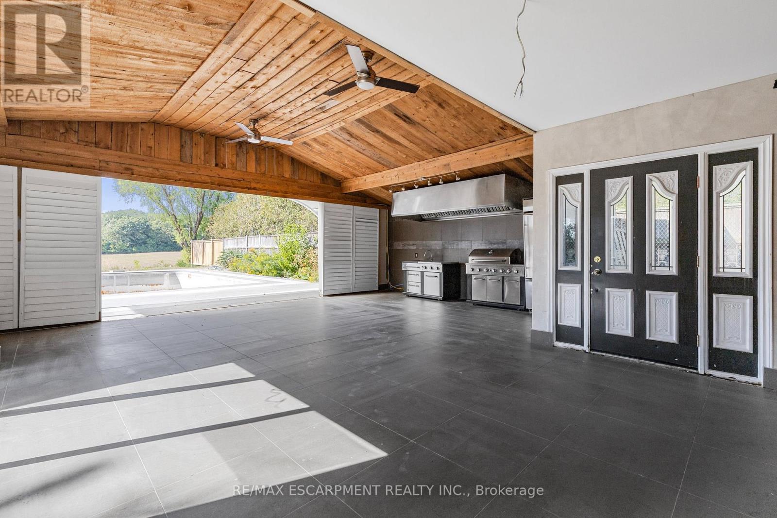 Welcome to your private country escape on the coveted Stoney Creek Escarpment. This charming bungalow at 585 Fifth Road East offers the perfect blend of peaceful living, scenic surroundings, and future potential. Set on a generous 100X200 rural lot and backing onto open farmland, the property boasts unobstructed sunset views that have to be seen to be believed. Whether you're sipping coffee on the patio or enjoying an evening by the firepit, this is your chance to embrace the tranquility of country living every single day. The fully finished basement features an expansive recreation room, additional bedroom area, 3 piece bathroom and finished laundry room. This home has an added bonus 29X25 indoor/outdoor living space with vaulted ceilings, equipped with a 3 pc bathroom and view of the approx 18X36 in-ground pool (TLC required and sold in as is condition). Located just minutes from Upper Stoney Creek, with quick access to schools, shopping, wineries, and hiking trails. Enjoy the best of both worlds - peaceful rural living with city amenities close at hand. Whether you're looking to move in and enjoy, renovate and personalize, or invest in a rare escarpment property, 585 Fifth Road East is a must-see. (id:64974)