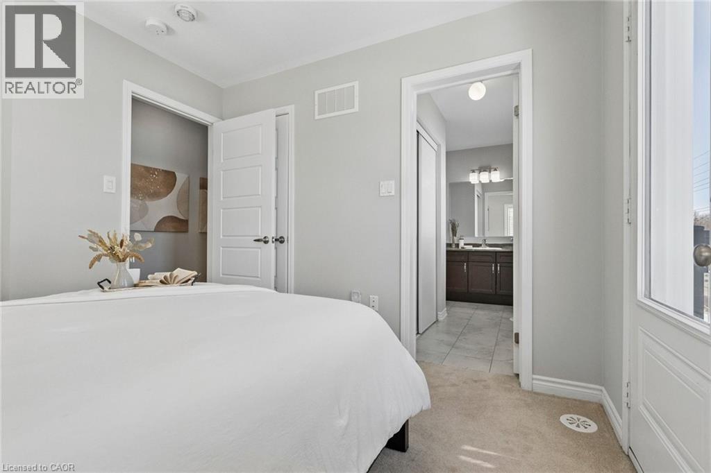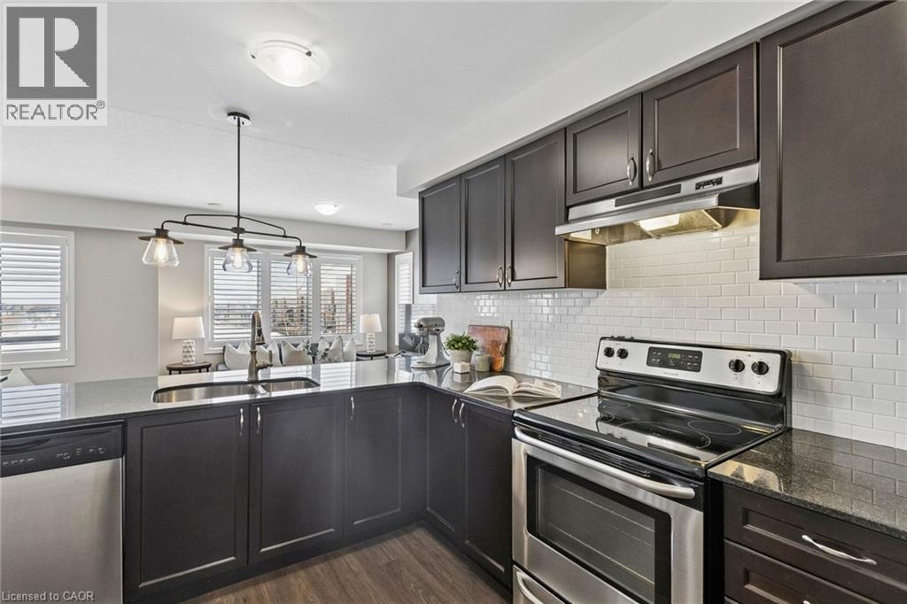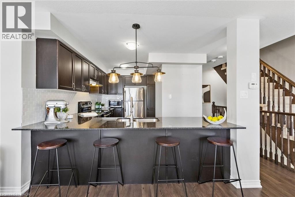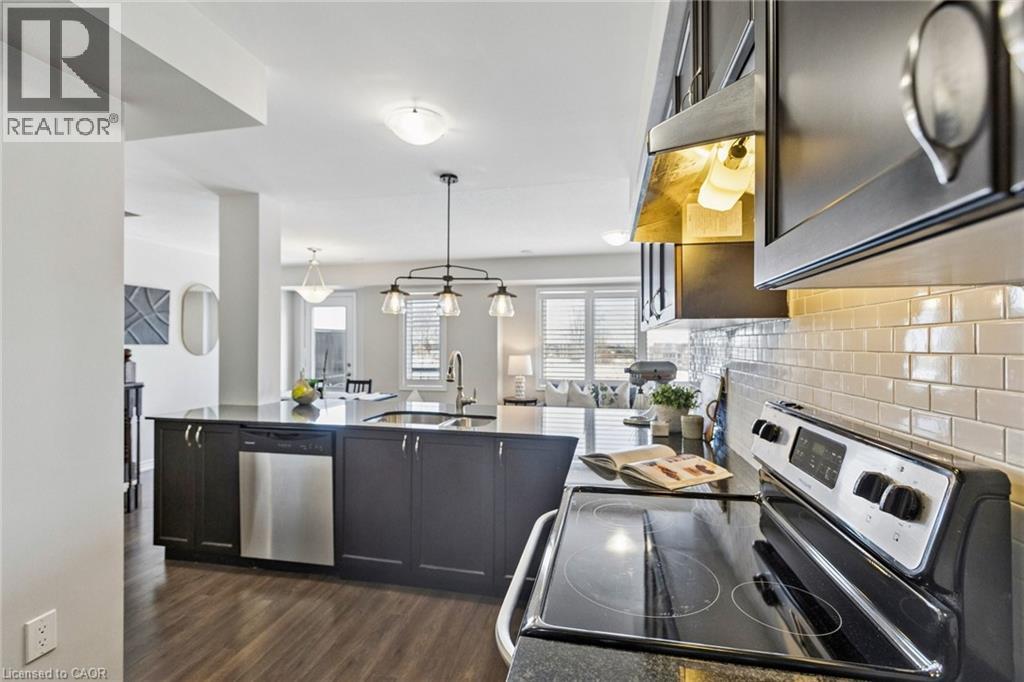 ATTENTION FIRST-TIME BUYERS, DOWNSIZERS AND CITY DWELLERS and feast your eyes on this beautiful, move-in ready 2 bedroom CORNER UNIT townhome! Located in Kitchener’s WILDFLOWERS neighbourhood, a highly sought-after family-friendly neighbourhood that is close to all your shopping favourites, great schools, parks including the RBJ Schlegel Park, and also offering quick access to HWY 401, this home should be on your MUST-SEE list! LOW CONDO FEES make this home even more attractive! Once inside you'll be captivated by the main floor open-concept layout, bright and airy and filled with lots of natural light with lots of windows and bonus California shutters included to provide privacy and comfort. Step inside the spacious kitchen, with large island, perfect for making your daily meals featuring granite countertops, tiled backsplash, stainless steel appliances, double-stainless steel sink, and a huge breakfast bar. It will definitely be the gathering place when friends and family come to visit. Walk over to the spacious dinette that leads out to the terrace where you can enjoy summer mornings with coffee or evenings with a cocktail. Entertaining and daily living is easy with a convenient powder room on the main floor. The second floor features a beautiful primary bedroom with a walk-out Juliette balcony and spacious ensuite bathroom and closet. The second bedroom also offers its own ensuite bathroom, perfect for overnight guests or can be used as an office, exercise or craft room. Stacked washer and dryer for laundry on the second floor for added convenience lots of additional closet space for storage. And a single-car garage space for you to park your car or for more storage complete this home. This home is move-in ready. Book your private showing today! NOTE: This is NOT a stacked townhome. There is no one living above or below. (id:64974)