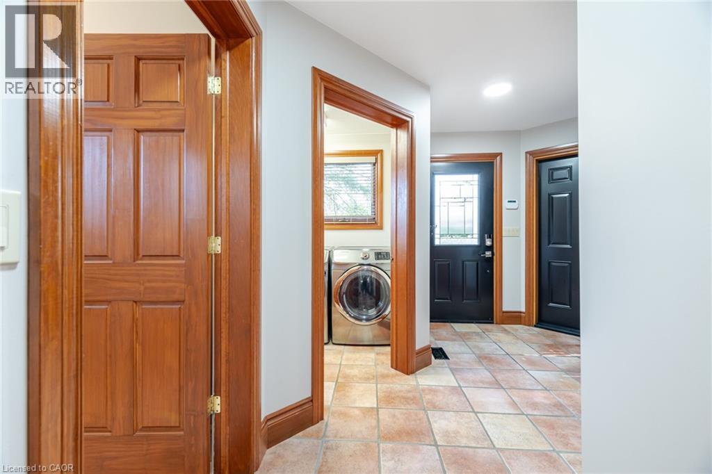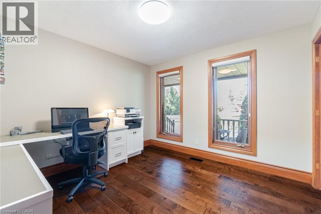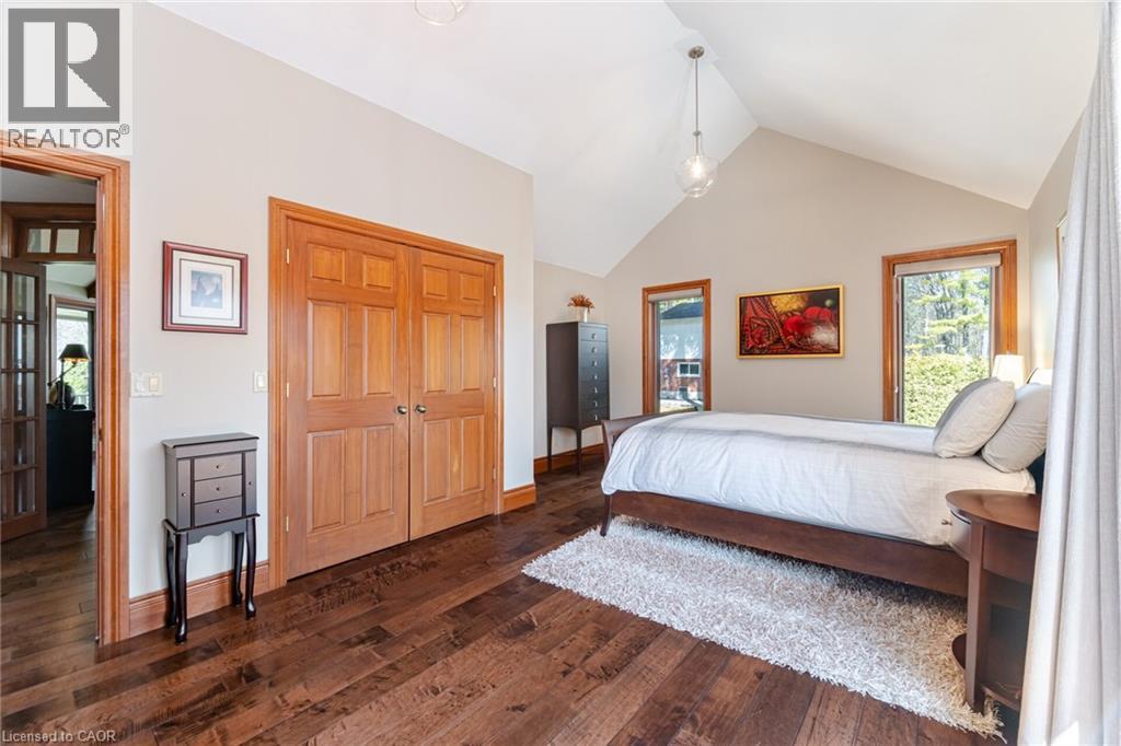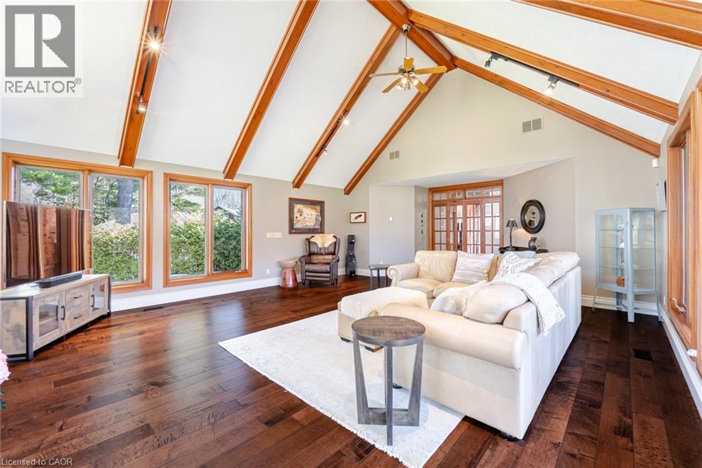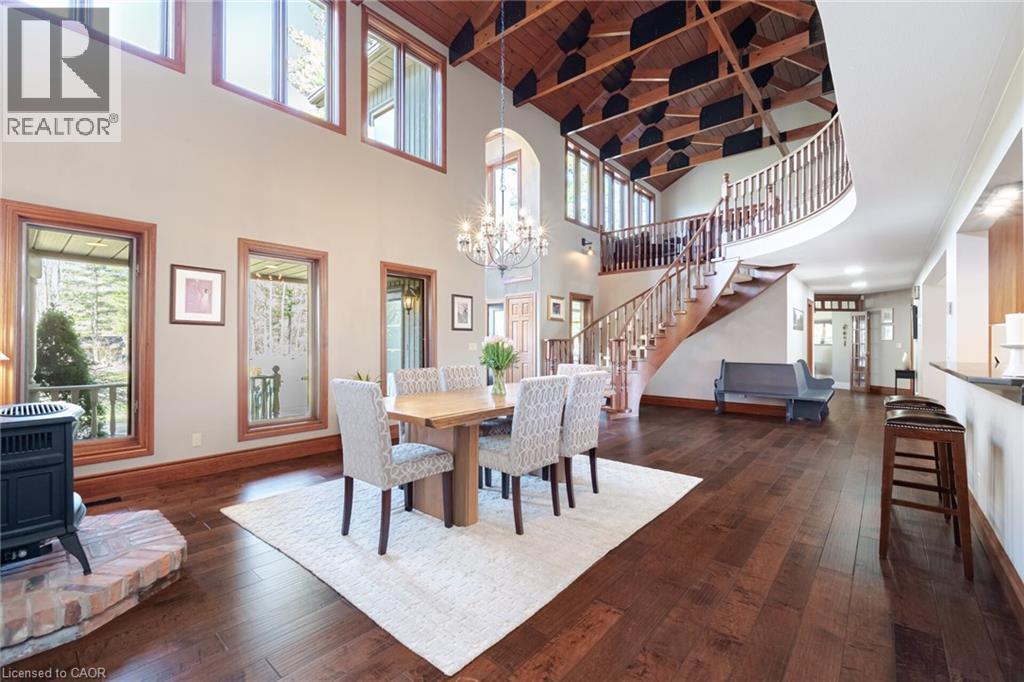 Stunning Country Estate !!! This One-of-a-Kind Masterpiece with Main Floor Principle Bedroom Suite captivates from the very first glance with unmatched curb appeal and it's distinctive design. A true architectural gem, the home showcases custom exposed timber and iron construction, offering a dramatic welcome with soaring 26-ft ceilings in the foyer & great room. Anchoring the space is a striking gas stove and dramatic staircase just two of of the many bespoke touches throughout. The chefs kitchen is a showstopper in its own right, thoughtfully positioned between the great room & the expansive rear deck. Designed for seamless indoor-outdoor living, its perfect for entertaining on any scale, from intimate gatherings to grand events incorporating the sparkling heated saltwater pool, hot tub, deck, & beyond. Prepare to be awestruck yet again in the window-walled family room, where vaulted ceilings rise above a stunning floor-to-ceiling brick fireplace. Here, panoramic views of the beautifully manicured grounds, create a tranquil yet breathtaking backdrop for family gatherings. The main floor offers 2 bedrooms, including an expansive primary suite that feels like a private retreat. It features a luxurious 5-piece spa-style bath w/glass shower enclosure, a generous walk-in closet & direct access to the deck through a private walkout. Additional features include renovated 3 piece bath & laundry rm. The sweeping, open-riser circular staircase leads to the equally impressive upper level. Here you'll find two spacious bedrooms, a sleek and modern 3-piece bathroom, and a versatile loft-style den or studio area. The open-to-below wrap around balcony offers a front-row seat to the craftsmanship of the handcrafted artistry that defines this remarkable home. For the hobbyist or DIY, an incredible bonus awaits: heated 1,200 sq ft- accessory building, equipped with a 3-piece bathroom. This versatile space is ideal for a workshop, studio- home gym, the possibilities are endless! (id:64974)
