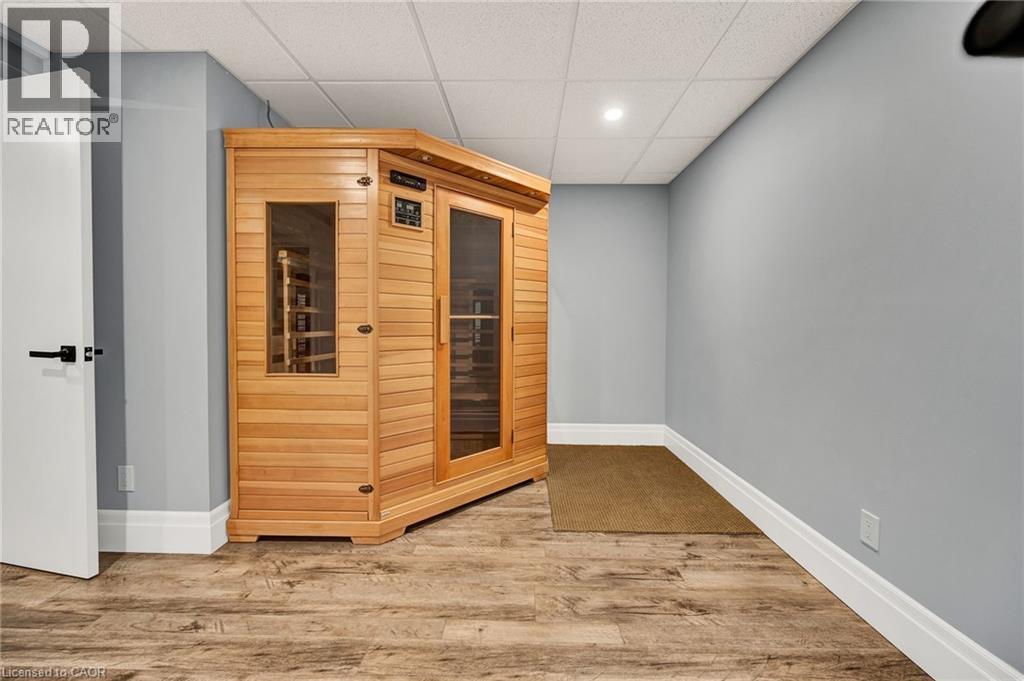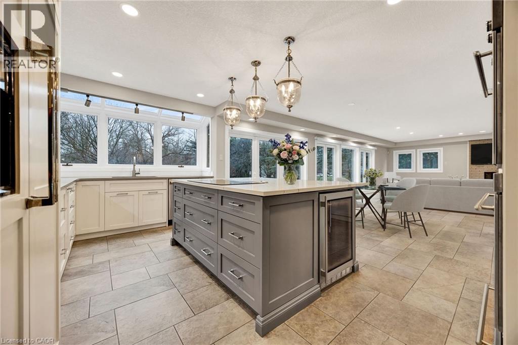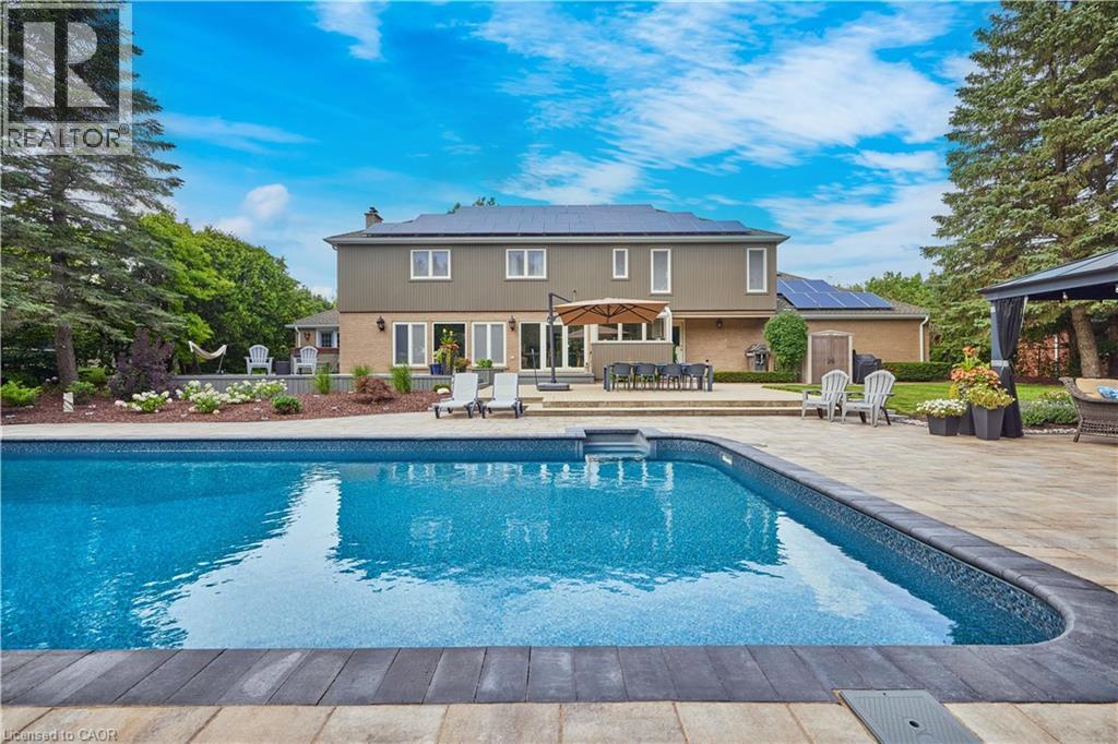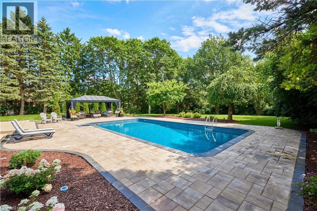 Set on one of Waterloo’s most exclusive streets and backing directly onto the forest of Anndale Park, this executive Colonial Acres property offers a lifestyle rarely found within city limits. Positioned on a rare lot just shy of three-quarters of an acre, the setting delivers exceptional privacy, mature landscaping, and a daily connection to nature. Built by renowned local builder R. Frede Construction, known for quality craftsmanship and timeless design, this home carries a level of construction rarely found today. The backyard is designed for how people truly live and entertain, featuring an inground pool, expansive stone patio, and a covered gazebo that creates a true outdoor living space for summer evenings and relaxed gatherings. Inside, offering roughly 5,300 sq ft of finished living space, the home is defined by its scale, natural light, and thoughtful design. A chef-inspired kitchen anchors the main floor with a substantial quartz island, premium appliances, custom cabinetry, and a walk-in pantry—ideal for both everyday living and entertaining. The adjoining family living areas are expansive and lined with windows, creating bright, open spaces that bring the outdoors in, complemented by two wood-burning fireplaces that add warmth and character. Upstairs, four generously sized bedrooms provide exceptional comfort, including a primary suite with a refined ensuite and heated floors, along with a secondary ensuite ideal for guests or older children. The lower level extends the lifestyle with space for recreation, fitness, and a private sauna. An oversized double garage and wide driveway complete the home. A rare opportunity combining land, privacy, and location, just minutes to RIM Park, Grey Silo, universities, and key amenities. (id:64974)