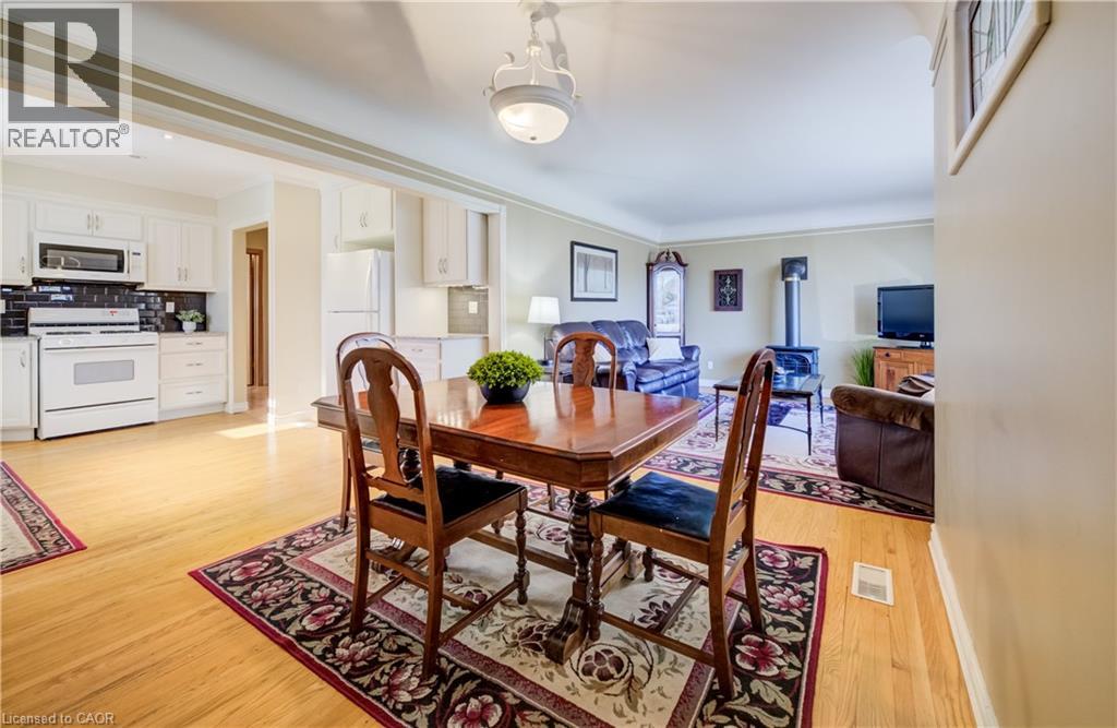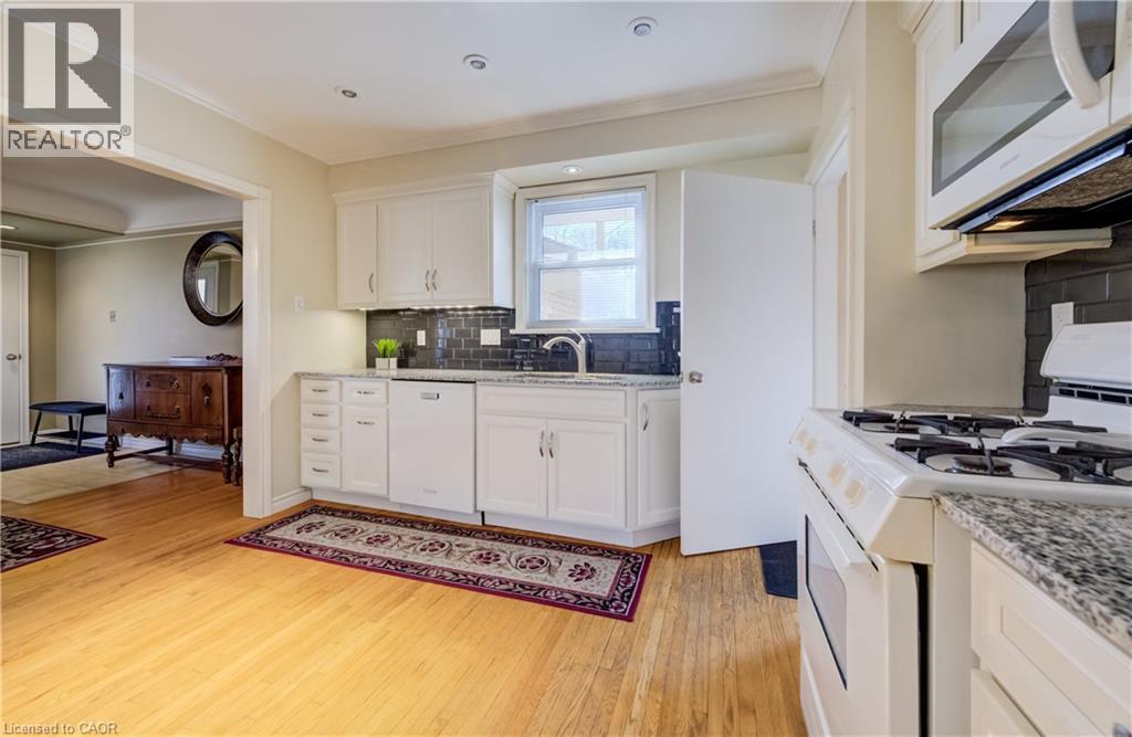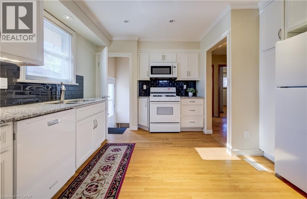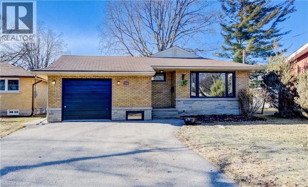 Lovingly maintained and extensively updated, this charming Rosemount bungalow is coming to market for the first time in 40 years! 588 Krug Street sits in an ideal central Kitchener location - surrounded by schools and parks, moments from the expressway, easily accessible by multiple transit routes, and less than 5 minutes driving time from the heart of DTK. Set back on a generously sized 50-foot lot and boasting a fully fenced rear yard and parking for up to five vehicles (one in the attached garage, and four in the private double-wide driveway), this home is also neatly positioned for conversion to an up-down duplex. Aesthetic and mechanical updates are plentiful: from a renovated kitchen with granite countertops and soft-close cabinetry, to updated bathrooms and a newer roof (2020), and from a new high-efficiency gas furnace with heat pump to the upgraded electrical system and wiring, this property presents its new owners with a wonderful opportunity to simply move in and enjoy! The main level plays host to a brightly lit receiving room at the front of the home, just off from an updated kitchen. The gas fireplace here ensures a cozy venue for entertaining, while three bedrooms and a family bath lie tucked away to the rear. Downstairs, you'll find a large, versatile space well set up to continue serving in its current configuration (guest room, kitchenette, and rec room with an additional gas fireplace), or to be converted into a separate downstairs apartment - your vision, your choice! Back upstairs and outside, the fully fenced yard boasts a sizable deck with a hot tub, a freshly poured concrete patio, and an aluminium storage shed. Even more updates and perks include all new windows and doors, gas appliances, a wireless, programable thermostat, and more. This neatly kept and extremely adaptable home won't stick around for long - schedule a tour today! (id:64974)